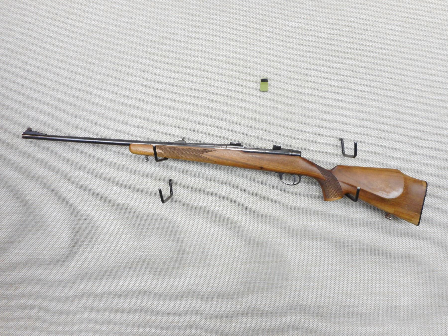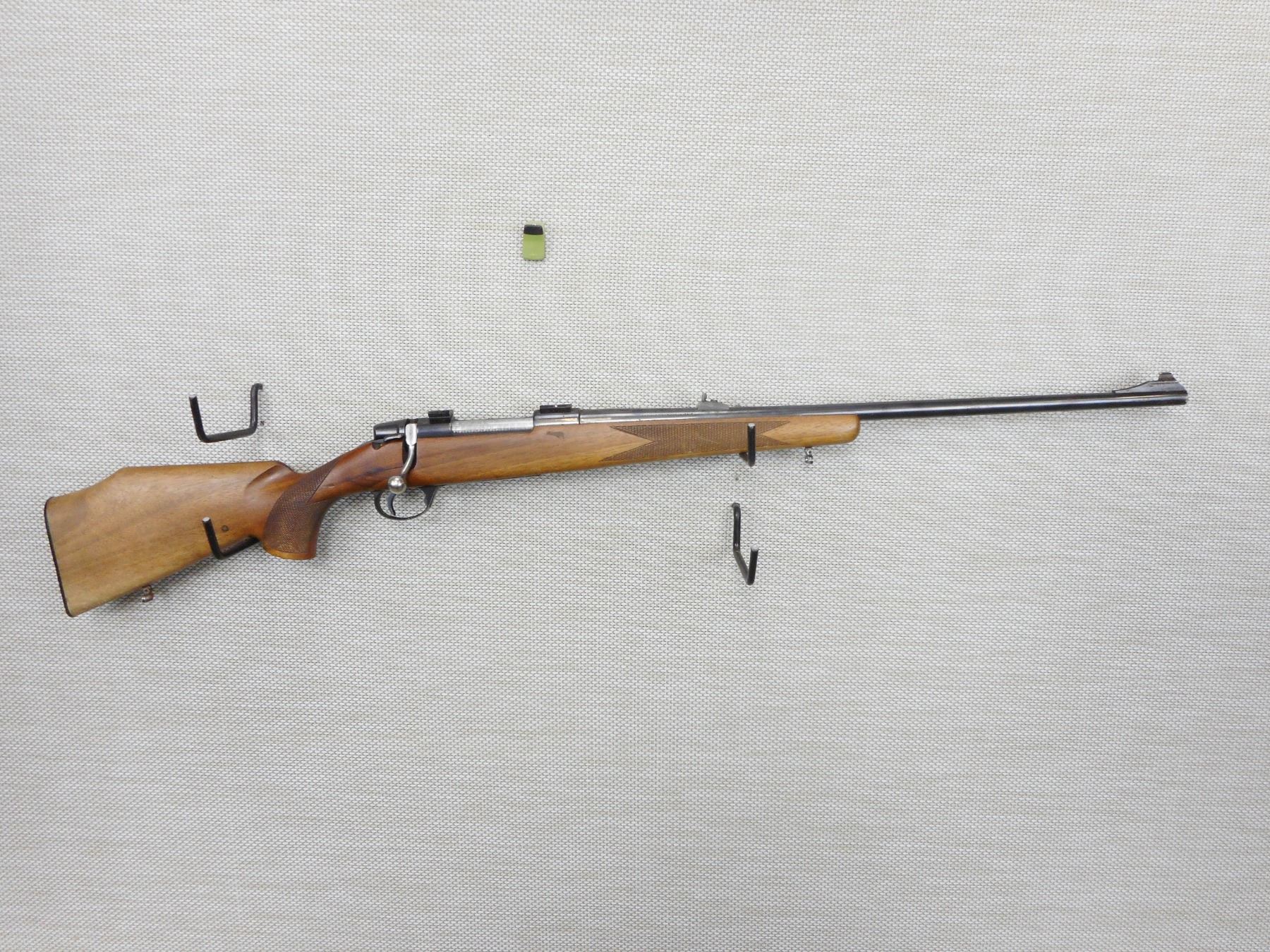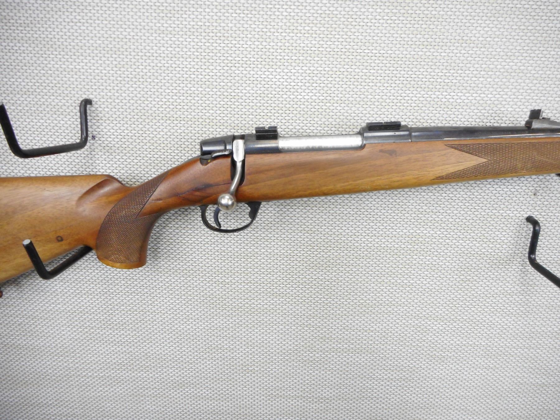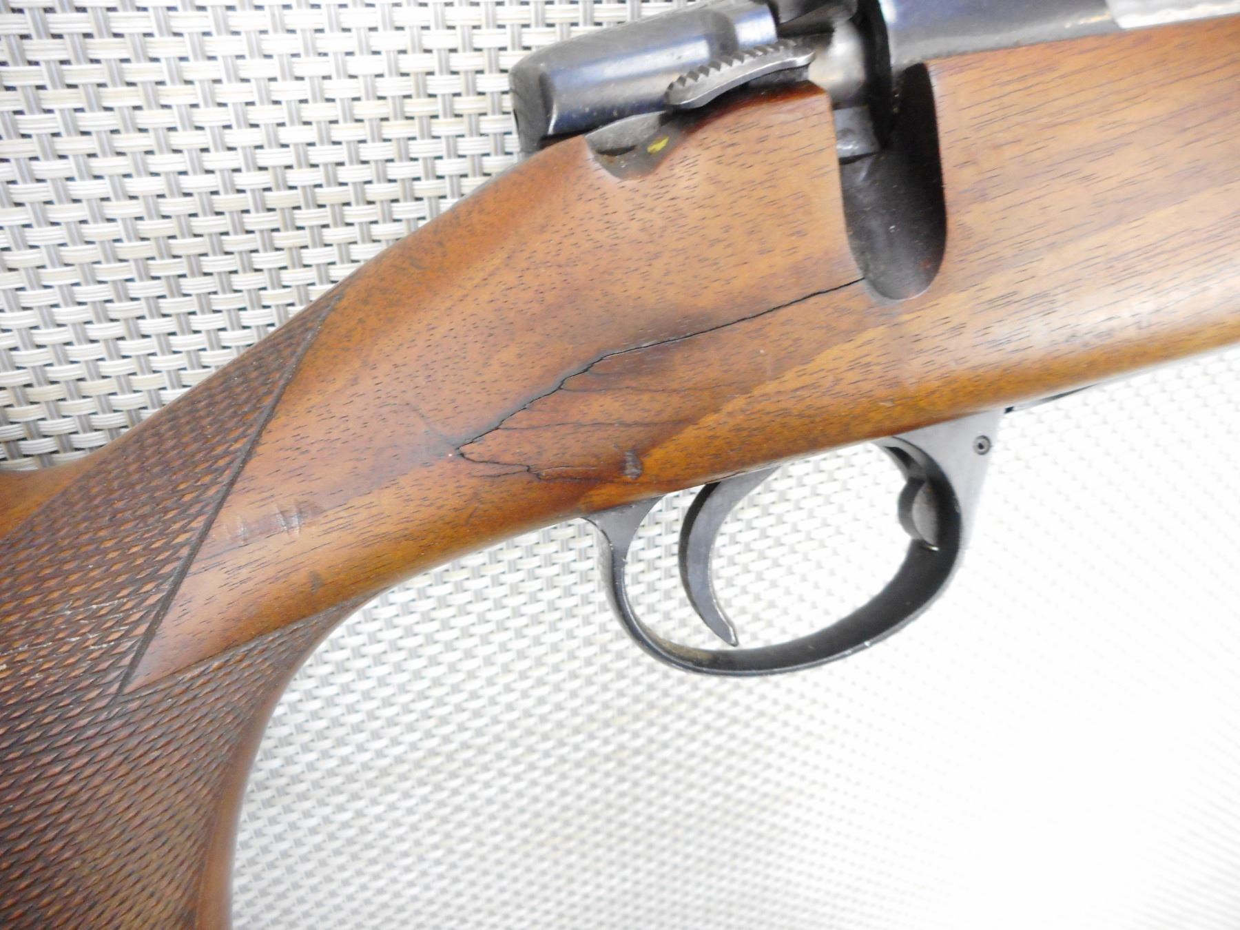 ANTONIO ZOLI , MODEL: 1900, CALIBER: 6.5 X 55 , NO EXTRACTOR,BADLY CRACKED STOCK AT WRTIST, GOOD BORE, RAMP FRONT AND FIXED REAR SIGHTS, DRILLED AND TAPPED FOR SCOPE, CHECKERED FOREND AND SEMI PISTOL GRIP BUTT STOCK, WITH RAISED CHEEK PIECE, PLASTIC BUTT PLATE, HINGE FLOOR PLATE, SHOWS SOME HANDLING MARKS , ACTION: BOLT ACTION RIFLE , BARREL LENGTH: 24" , CONDITION: 4/10 , STOCK # 9420 , SERIAL # 2546 , CLASS: CANADIAN NON RESTRICTED CLASS