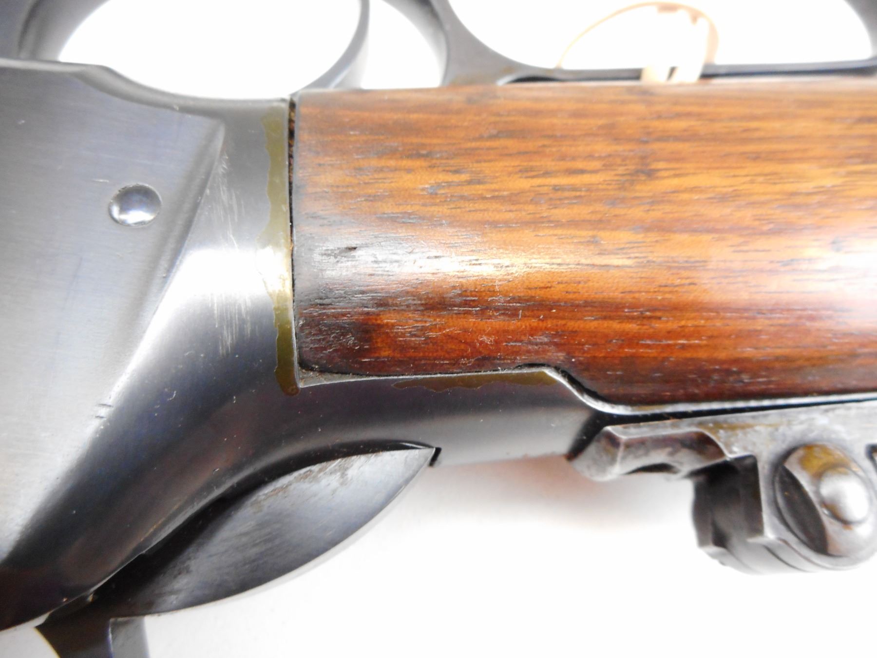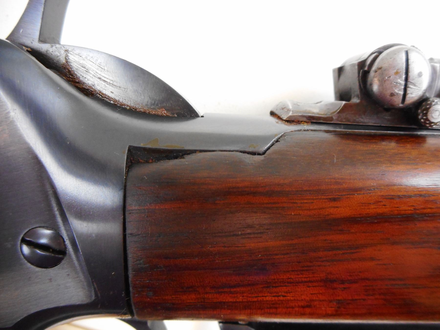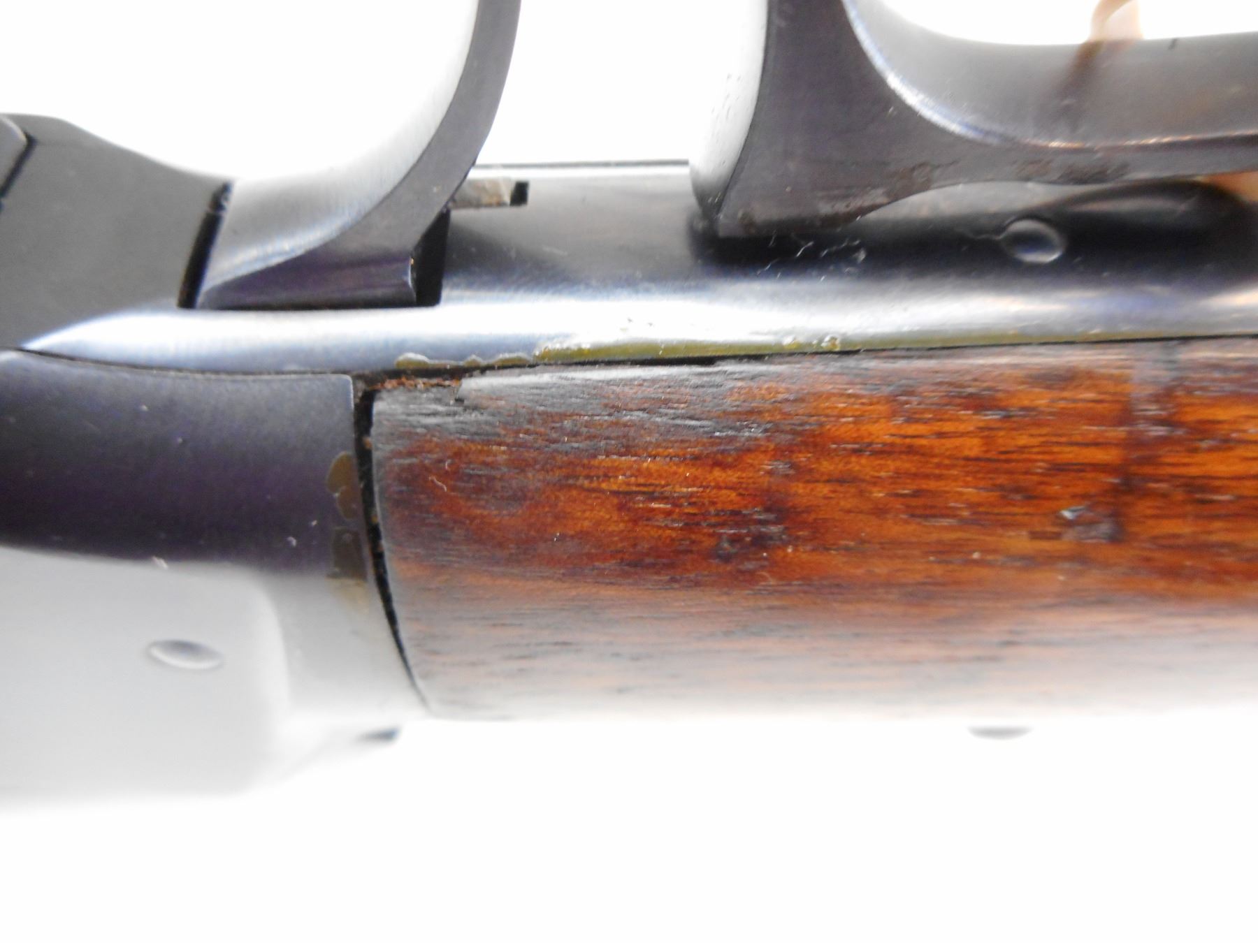 WINCHESTER, MODEL: 1894, CALIBER: 38-55 WIN , MANUFACTURED 1899, FAIR BORE WITH SCATTERED PITTING , BLADE FRONT AND ADJUSTABLE REAR SIGHT, TANG SIGHT, APPEARS TO BE REFINISHED AND REBLUED, TWO PIECE HARDWOOD STOCK AND STEEL BUTT PLATE, SMALL CRACK IN FOREND , ACTION: LEVER ACTION RIFLE , BARREL LENGTH: 26" , CONDITION: 6/10 , STOCK # 9463 , SERIAL # 177116 , CLASS: CANADIAN NON RESTRICTED CLASS