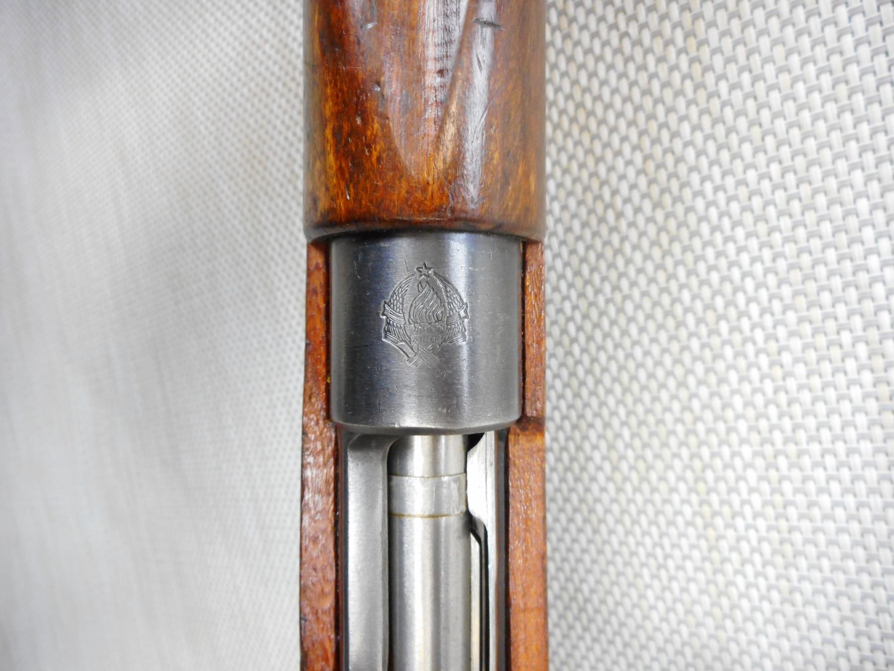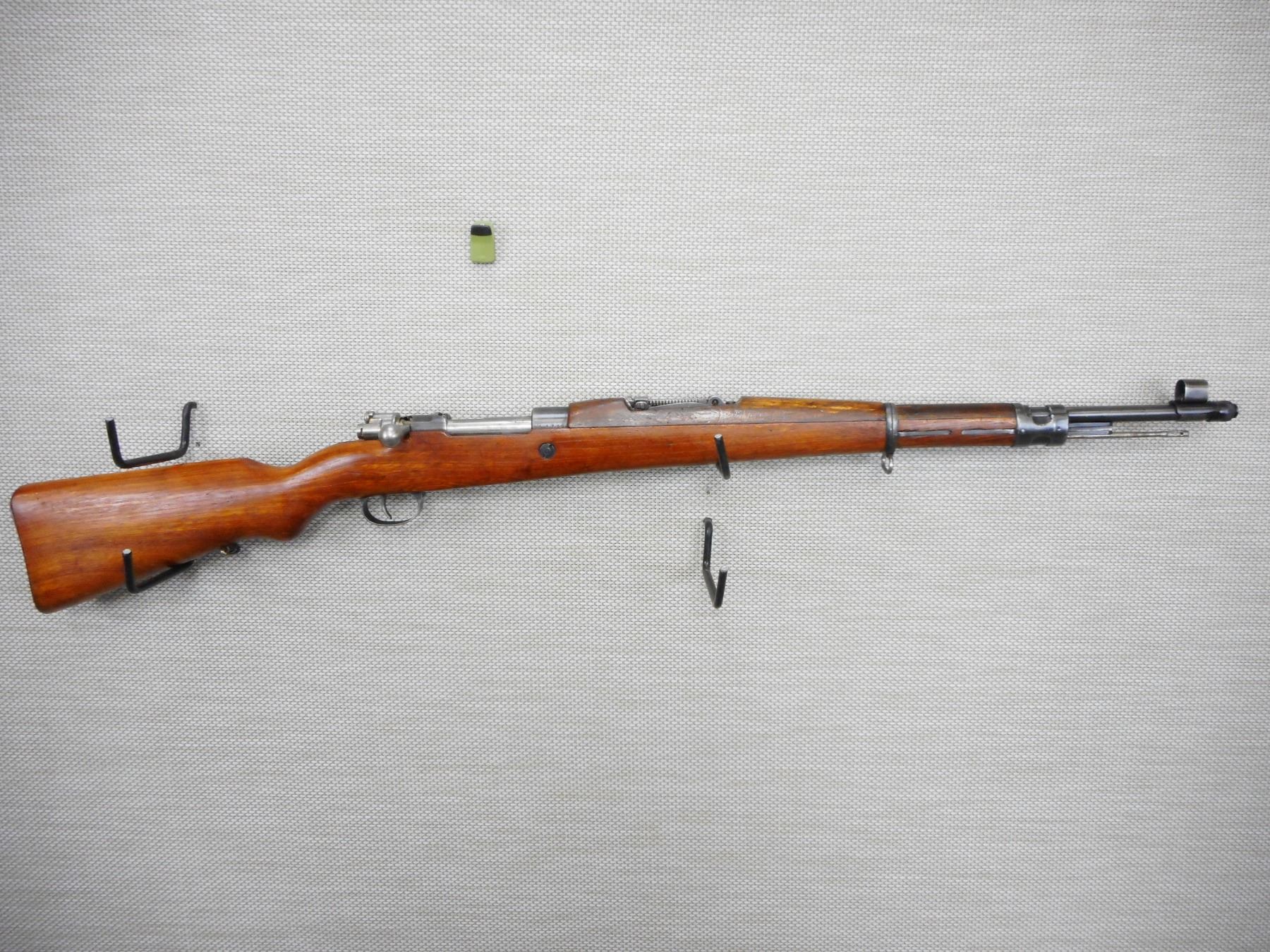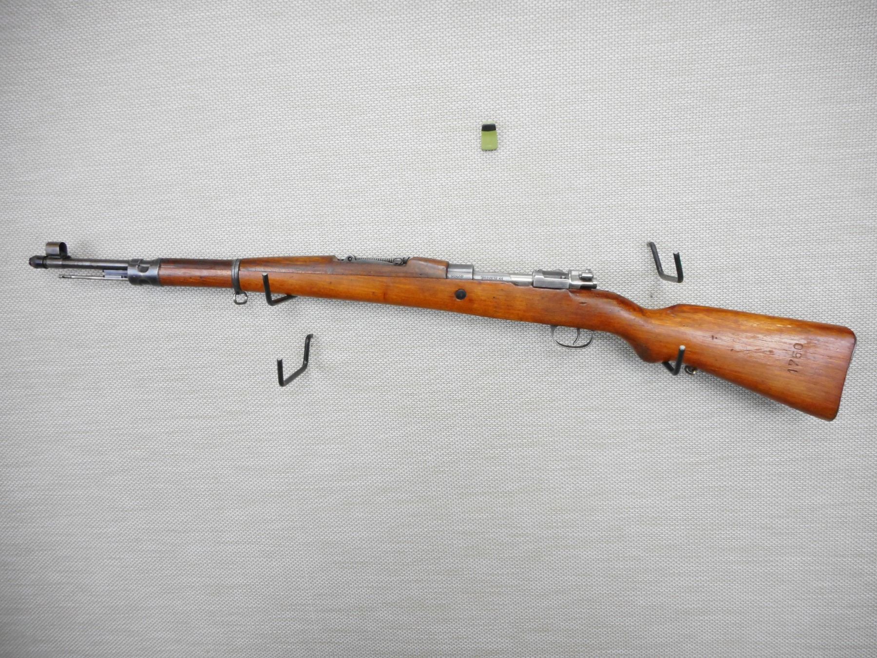 WWII ERA, MAUSER, MODEL: 1924/47 YUGOSLAVIAN SHORT RIFLE , CALIBER: 8MM MAUSER , DATED 1944, BOLT AND RECEIVER MATCH BY SERIAL #, HOODED FRONT SIGHT WITH MUZZLE CAP, ADJUSTABLE REAR SIGHT, RETAINS FULL MILITARY CONFIGURATION, SHOWS SOME HANDLING MARKS, SLING LOOPS , EXCELLENT BORE , ACTION: BOLT ACTION REPEATER , BARREL LENGTH: 24" , CONDITION: 7/10 , STOCK # 9482 , SERIAL # 31750 , CLASS: CANADIAN NON RESTRICTED CLASS