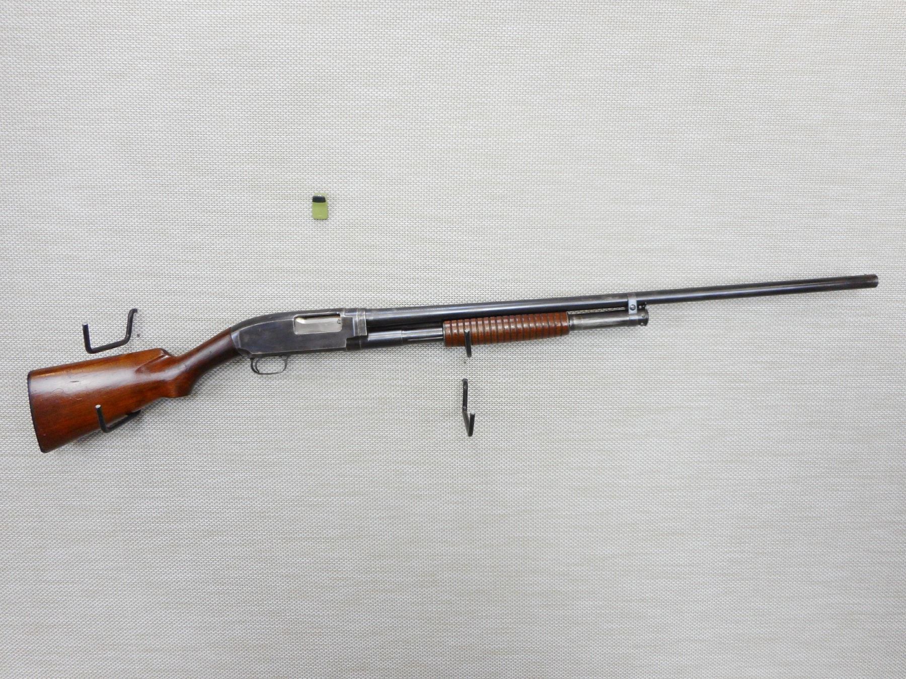 WINCHESTER, MODEL: 12, CALIBER: 12GA X 2 3/4" , MANUFACTURED IN 1929, FIXED FULL CHOKE BARREL, VERY GOOD BORE, TWO PIECE HARDWOOD STOCK WITH PLASTIC BUTT PLATE, SHOWS SOME HANDLING MARKS, BEAD FRONT SIGHT, RETAINS MUCH OF THE ORIGINAL BLUEING , ACTION: PUMP ACTION SHOTGUN , BARREL LENGTH: 30" , CONDITION: 7/10 , STOCK # 9494 , SERIAL # 621444 , CLASS: CANADIAN NON RESTRICTED CLASS