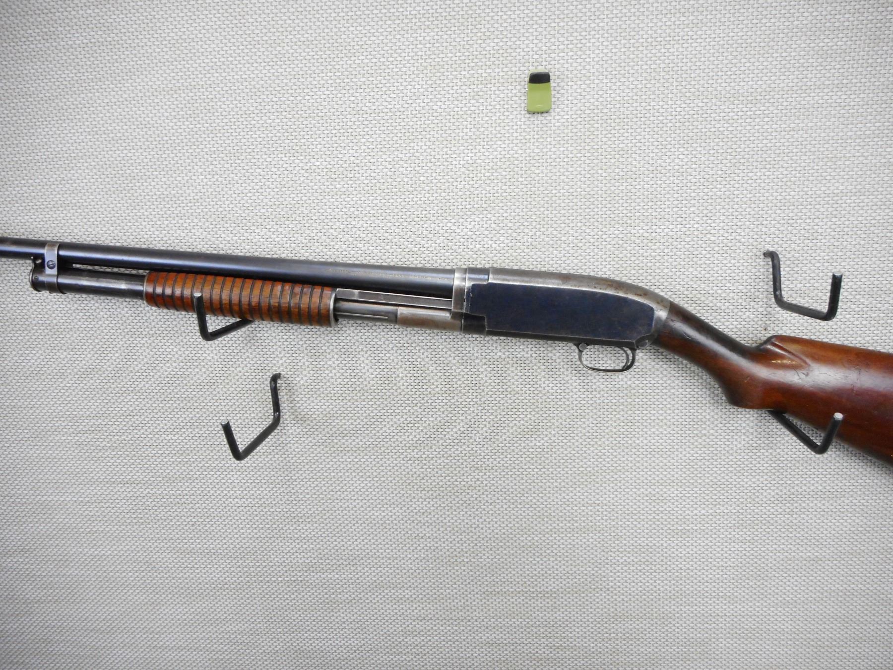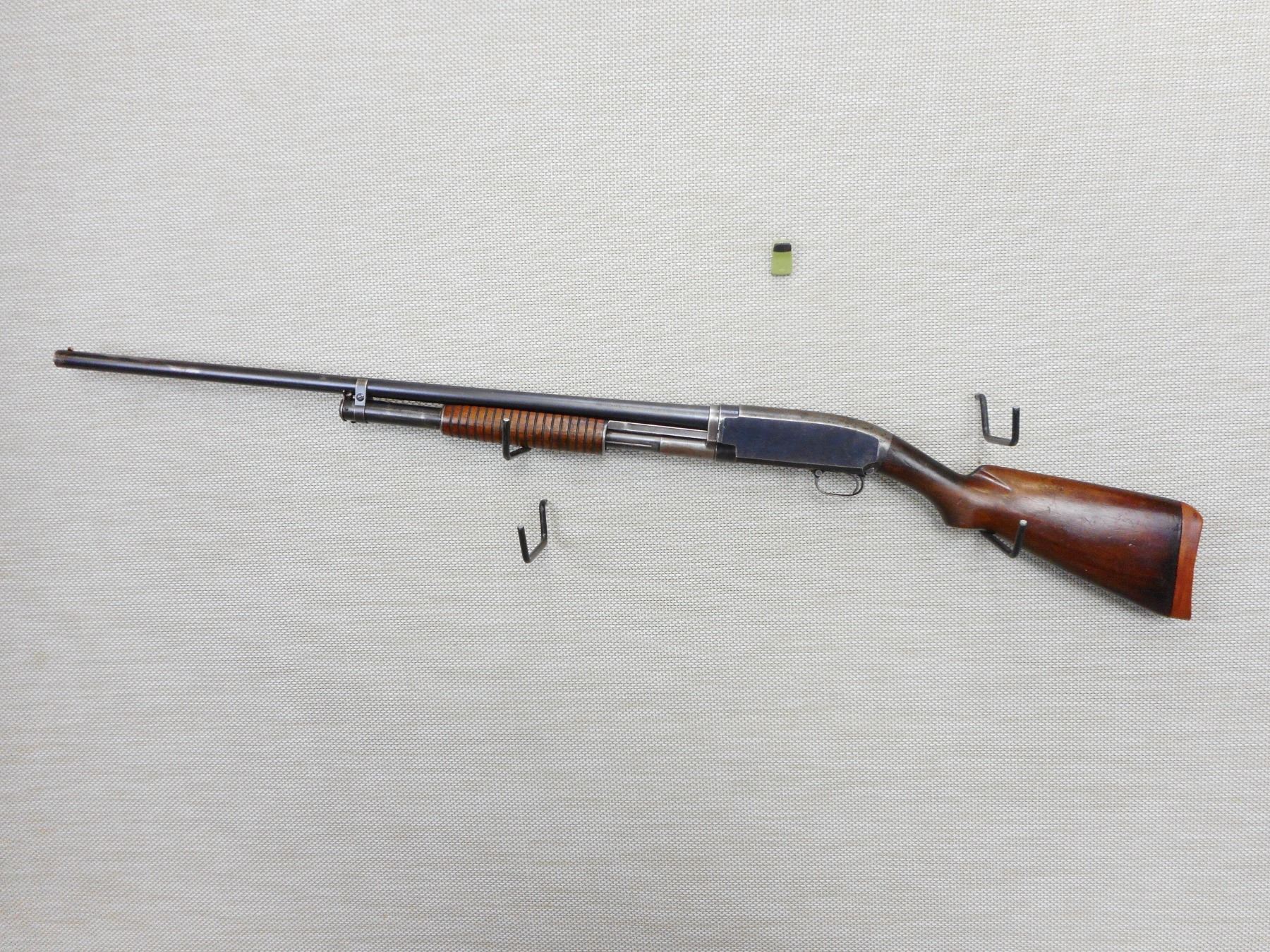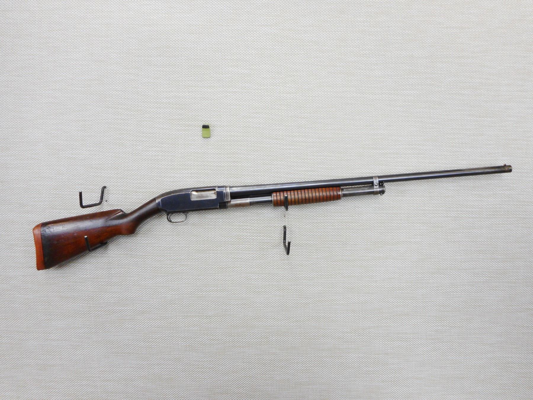 WINCHESTER, MODEL: 12, CALIBER: 12GA X 2 3/4" , MANUFACTURED IN 1922, FIXED FULL CHOKE, BORE IS GOOD, TWO PIECE HARDWOOD STOCK, SHOWS SOME HANDLING MARKS, SMALL CRACK AT THE WRIST, REPLACED RUBBER BUTT PAD, SHOWS SOME HANDLING MARKS , ACTION: PUMP ACTION SHOTGUN , BARREL LENGTH: 30" , CONDITION: 5/10 , STOCK # 9495 , SERIAL # 318830 , CLASS: CANADIAN NON RESTRICTED CLASS