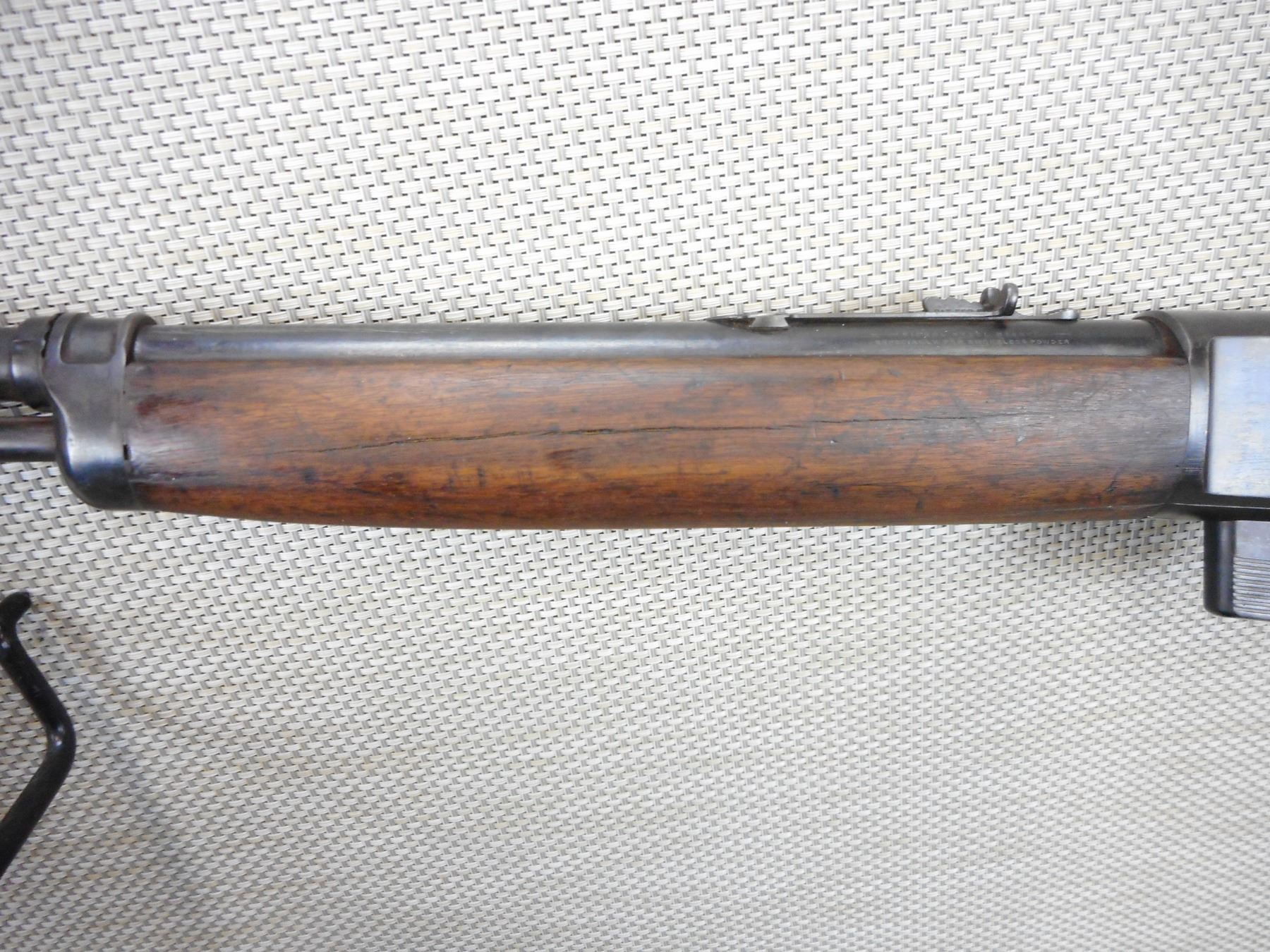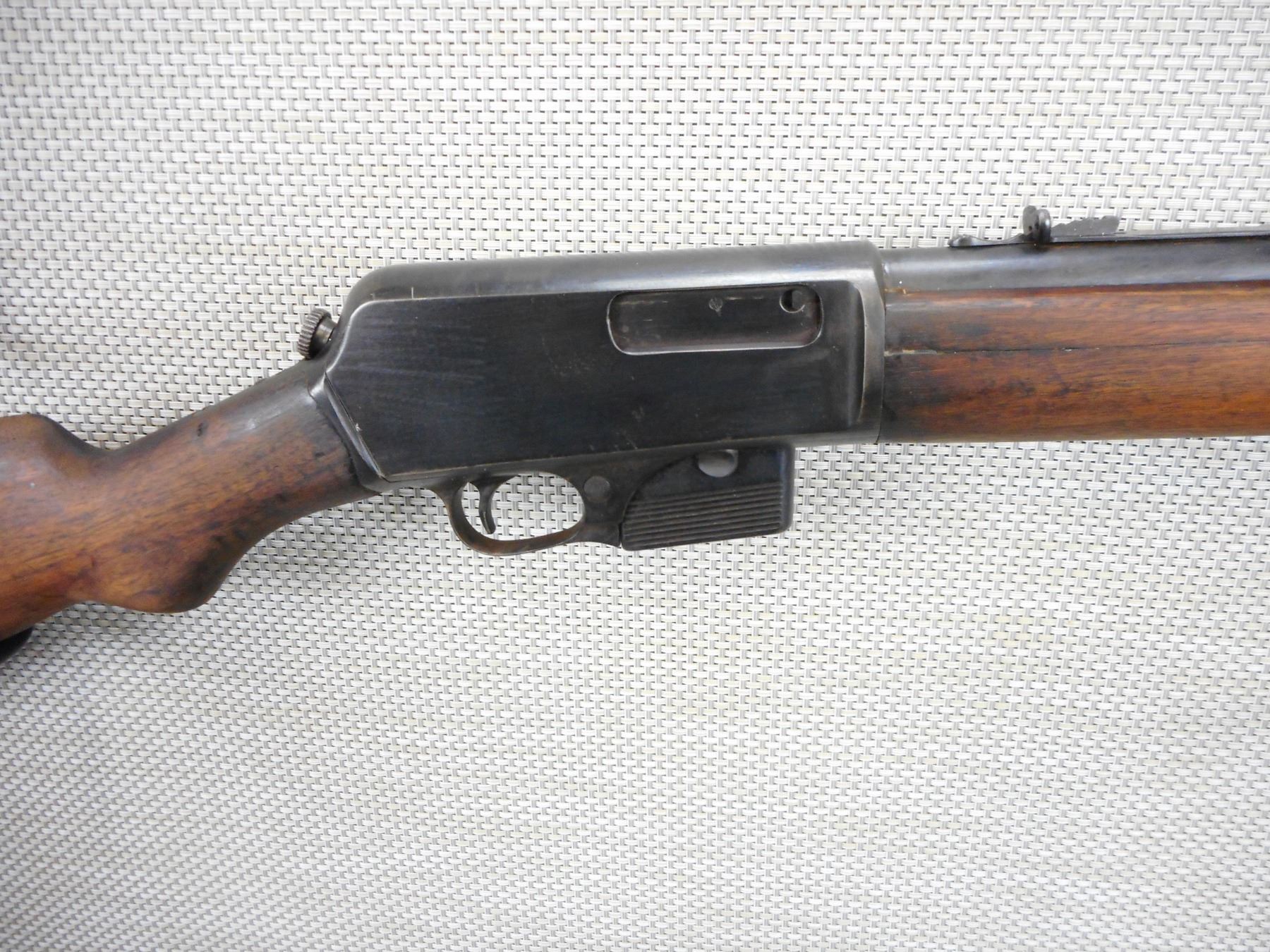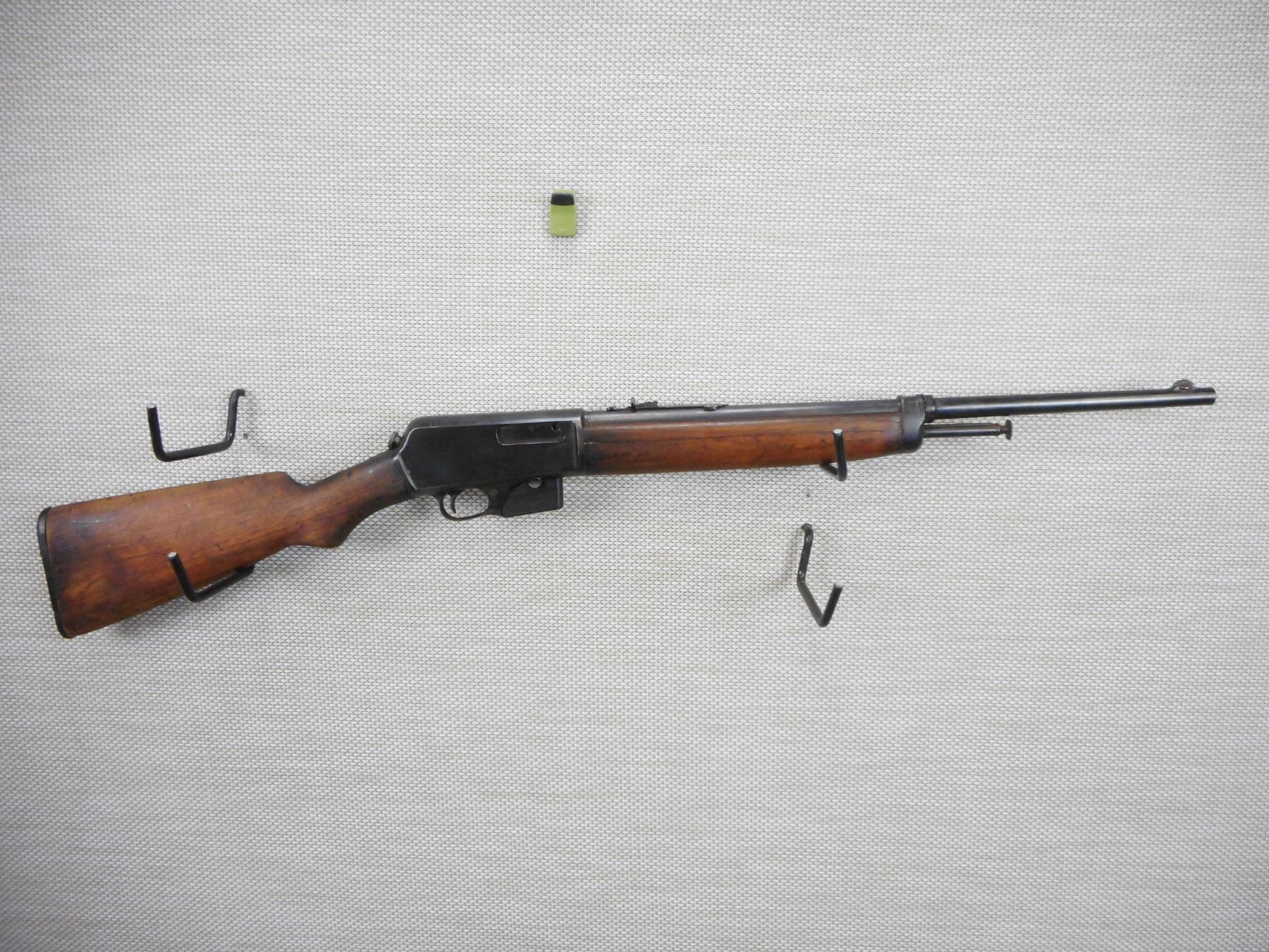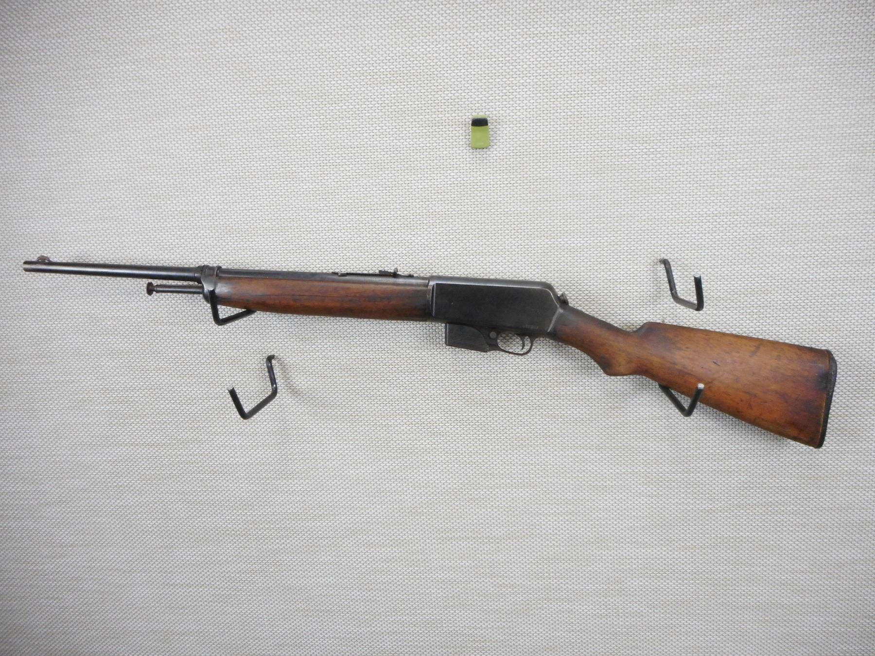 WINCHESTER , MODEL: 351SL , CALIBER: 351 WIN , COMES WITH MAGAZINE, BORE IS CRACKED FOREND AND APPEARS TO BE REPLACED BUTT STOCK, DARK BORE, BLADE FRONT AND ADJUSTABLE REAR SIGHTS, REPLACED CHIPPED RUBBER BUTT PLATE, SHOWS EXTENSIVE HANDLING MARKS , ACTION: SEMI AUTOMATIC RIFLE , BARREL LENGTH: 20" , CONDITION: 3/10 , STOCK # 9551 , SERIAL # 12387 , CLASS: CANADIAN NON RESTRICTED CLASS