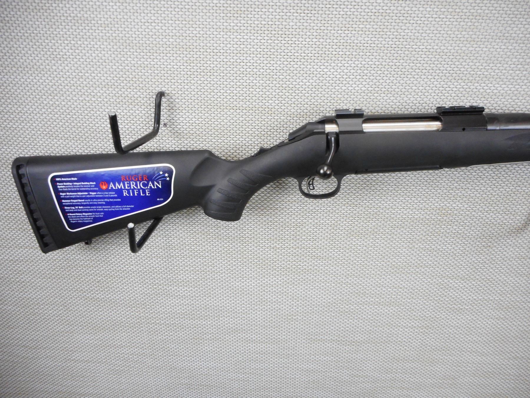 RUGER, MODEL: AMERICAN , CALIBER: 270 WIN , COMES WITH BOX, MAGAZINE, LOCK AND MANUAL, EXCELLENT BORE APPEARS UNFIRED, DRILLED AND TAPPED WITH A SCOPE RAIL, NO OTHER SIGHTS, ONE PIECE BLACK SYNTHETIC STOCK WITH RUBBER RECOIL PAD, SLING SWIVEL LOOPS, HAS ORIGINAL MANUFACTURES LABELS ON FIREARM , ACTION: BOLT ACTION RIFLE , BARREL LENGTH: 22" , CONDITION: NEW IN BOX , STOCK # 9553 , SERIAL # 69611937 , CLASS: CANADIAN NON RESTRICTED CLASS