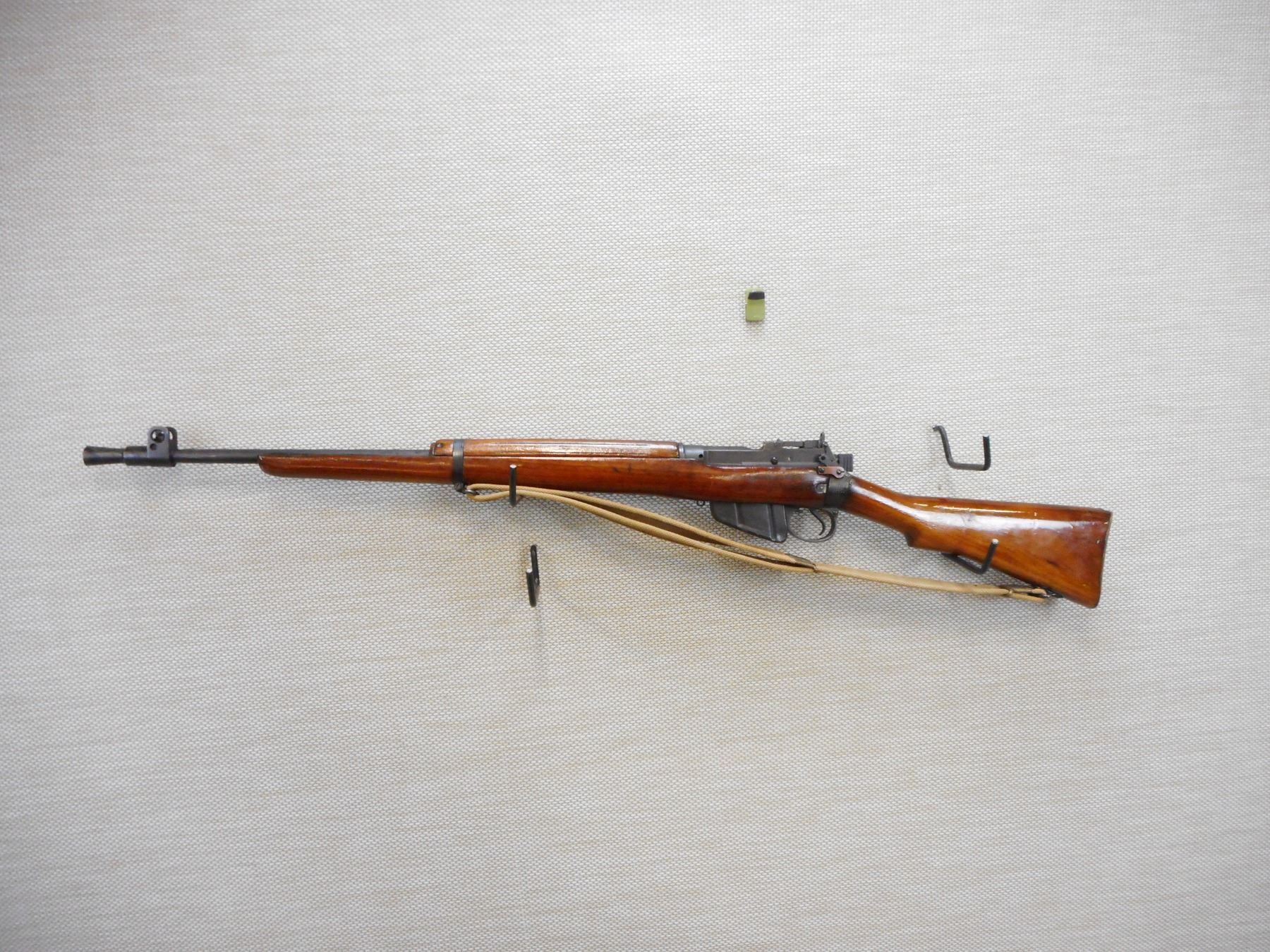 WWII ERA, LEE ENFIELD, MODEL: NO 4 MKI MADE TO LOOK LIKE A NO 5, CALIBER: 303 BR , COMES WITH A MAGAZINE, CUSTOMIZED RIFLE, FEATURES A NO 5 FLASH HIDER, DATED 1944, RETAINS ORIGINAL MILITARY SIGHTS, BOLT AN RECEIVER MATCH BY SERIAL #, SLING SWIVEL LOOPS WITH ORIGINAL MILITARY CANVAS SLING, BRASS BUTT PLATE, SHOWS SOME HANDLING MARKS , ACTION: BOLT ACTION RIFLE , BARREL LENGTH: 25" , CONDITION: 6/10 , STOCK # 9571 , SERIAL # 55701 , CLASS: CANADIAN NON RESTRICTED CLASS