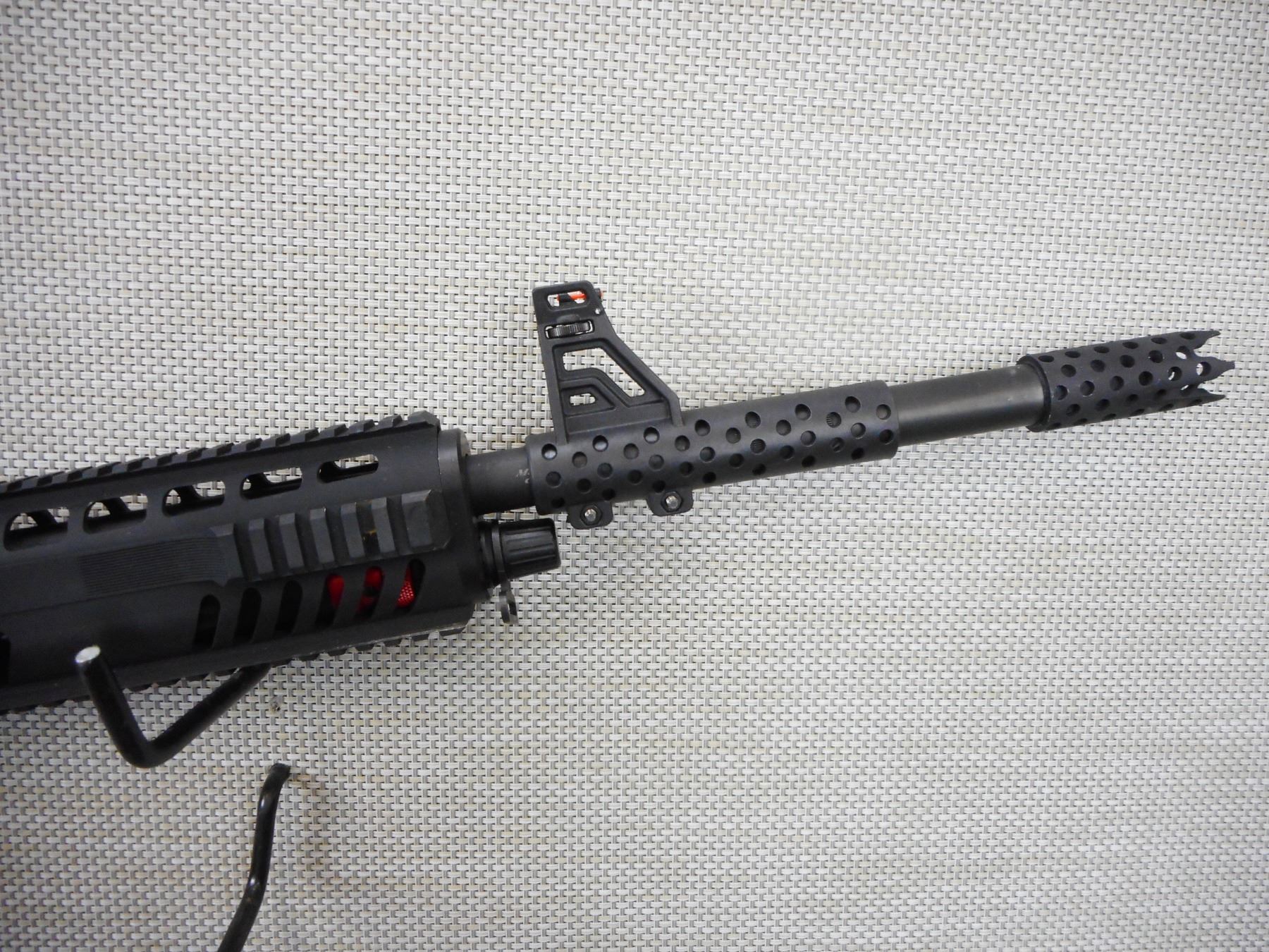 MAKAROV, MODEL: BS12, CALIBER: 12GA , COMES WITH A CASE AND 4 MAGAZINES, AND 5 CHOKES, HAS A BREACHER CHOKE INSTALLED, RAISED FIBER OPTIC FRONT SIGHT AND CARRY HANDLIN MOUNTED REAR SIGHT, SYNTHETIC QUAD RAIL FOREND, FULL PISTOL GRIP, COLLAPSABLE BUTT STOCK, SHOWS VERY LITTLE HANDLING MARKS, EXCELLENT BORE , ACTION: SEMI AUTOMATIC SHOTGUN , BARREL LENGTH: 21" , CONDITION: 8/10 , STOCK # 9575 , SERIAL # 162243 , CLASS: CANADIAN NON RESTRICTED CLASS