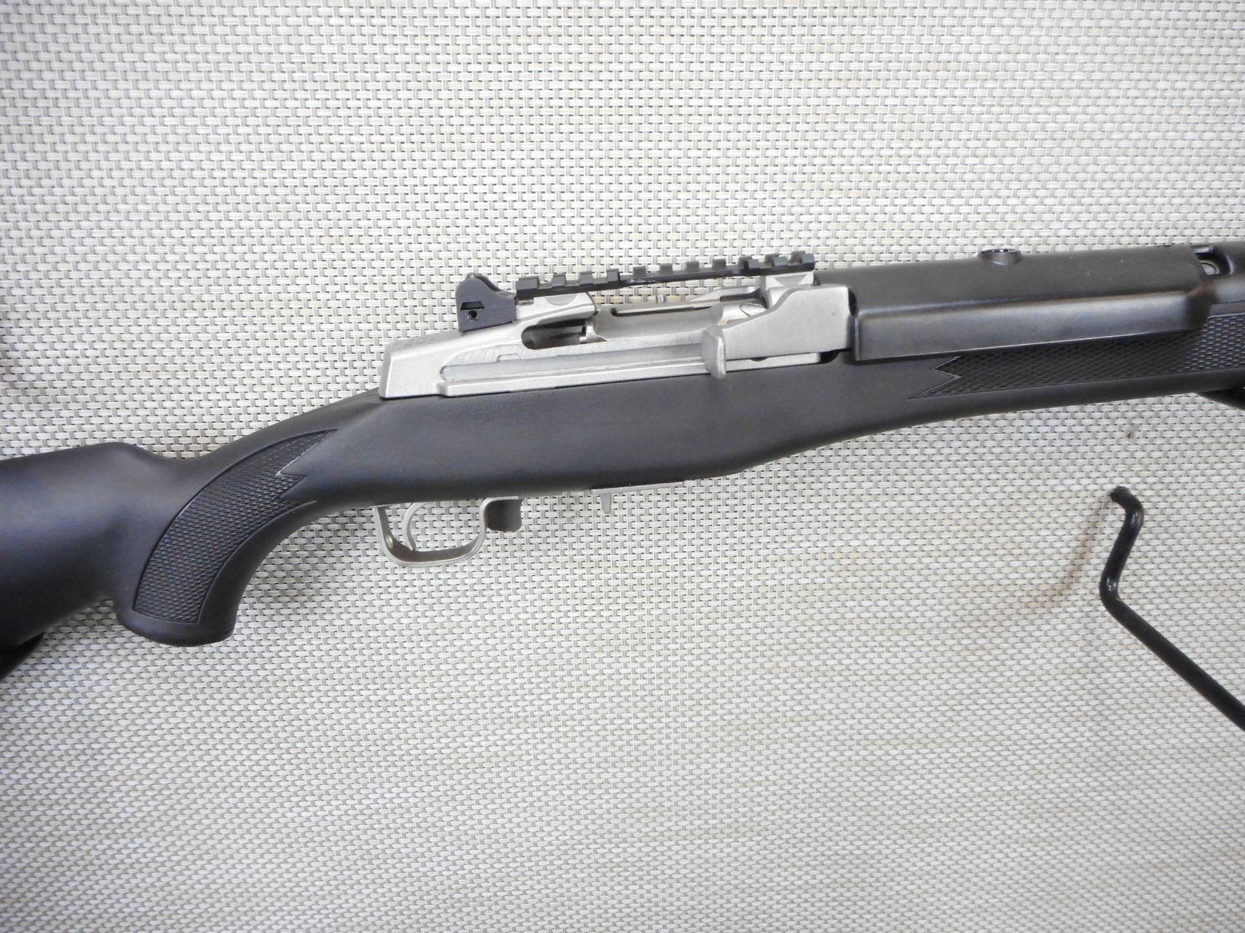 RUGER, MODEL: RANCH MINI 30, CALIBER: 7.62 X 39 , COMES WITH A BOX, 2 MAGAZINES, A MANUAL AND LOCK, EXCELLENT BORE, SYNTHETIC STOCK WITH CHECKERED FOREND AND CAPPED PISTOL GRIP BUTT STOCK, RUBBER RECOIL PAD, SLING SWIVEL LOOPS, BARLEY CORN FRONT AND PEEP REAR SIGHTS, SHOWS VERY LITTLE HANDLING MARKS , ACTION: SEMI AUTOMATIC RIFLE , BARREL LENGTH: 18 5/8" , CONDITION: 9/10 , STOCK # 9579 , SERIAL # 58338413 , CLASS: CANADIAN NON RESTRICTED CLASS