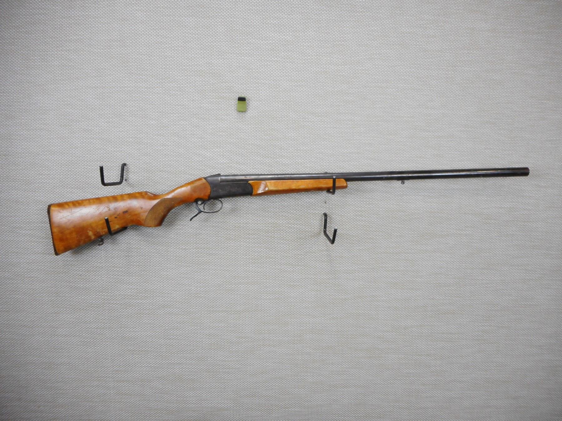 BAIKAL , MODEL: 18M, CALIBER: 12GA X 2 3/4" , BORE IS GOOD, FIXED FULL CHOKE, NO SIGHTS, MISSING THE FRONT SLING SWIVEL LOOPS, SOME LIGHT SURFACE RUST AND PITTING, BEAVERTAIL FOREND AND SEMI PISTOL GRIP BUTT STOCK WITH A CRACK AT WRIST, PLASTIC BUTT PLATE, SHOWS SOME HANDLING MARKS , ACTION: BREAK ACTION SINGLE SHOT SHOTGUN , BARREL LENGTH: 28 1/2" , CONDITION: 4/10 , STOCK # 9592 , SERIAL # N/A , CLASS: CANADIAN NON RESTRICTED CLASS