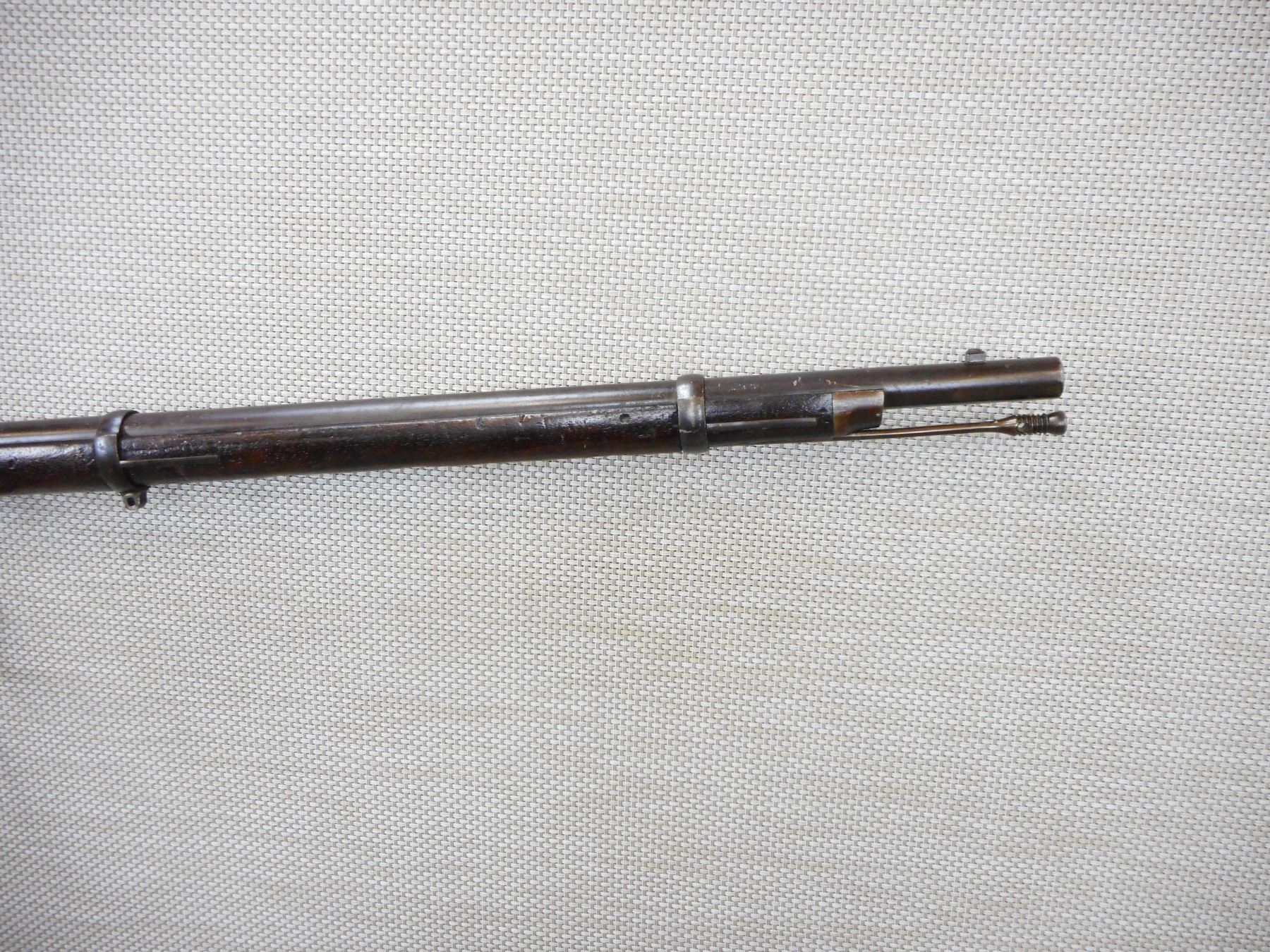 PEABODY , MODEL: SIDE HAMMER , CALIBER:50 RIM FIRE, MANUFACTURED BY PROVIDENCE TOOL COMPANY, BORE IS VERY GOOD, BLADE FRONT AND ADJUSTABLE REAR SIGHTS, RETAINS FULL MILITARY CONFIGURATION, HAS ORIGINAL CLEANING ROD, ACTION IS TIGHT, STOCK IS MARKED CM, THERE ARE NUMEROUS MILITARY MARKS, SHOWS SOME LIGHT PITTING ON THE METAL SURFACES , ACTION: SINGLE SHOT , BARREL LENGTH: 36" , CONDITION: 7/10 ANTIQUE , STOCK # , SERIAL # N/A , CLASS: CANADIAN ANTIQUE