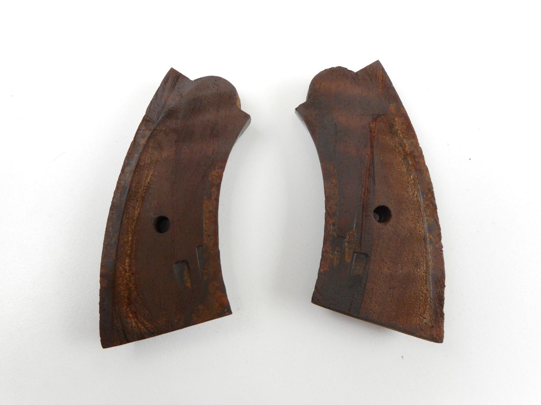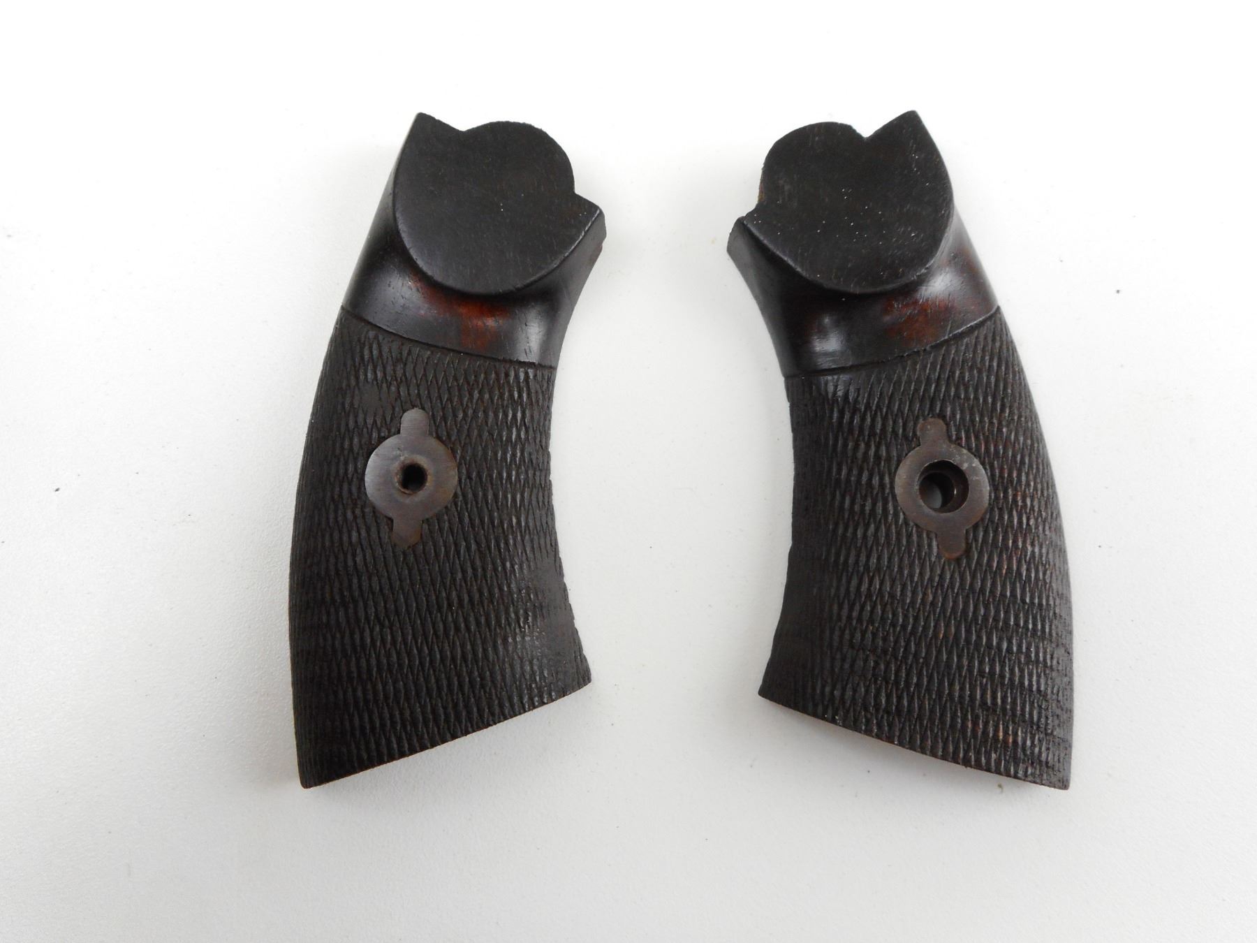 LEMAT, MODEL: “HYBRID” NAVY TYPE REVOLVER, CALIBER: 42 CAL PERC/63 CAL PERC , LEMAT PARIS BARREL ADDRESS (NO BANNER), “COL. LEMAT FPTE S.G.D.G. PARIS”, 9 SHOT PERCUSSION REVOLVER 42 CAL., 1 SHOT SMOOTH BORE .63 CAL. GRAPE SHOT BARREL, LOADING ROD DOES NOT DISPLAY THE LENGTH WISE CUT TO CRIMP USED TO HOLD THE RAM ROD, BUT THERE IS ADEQUATE TENSION HOLDING THE ROD, SERIAL # 730 APPEARS ON BARREL, FRAME & CYLINDER AND APPEARS TO BE APPLIED AT A LATER DATE THAN MANUFACTURER. “LM” ALSO APPEARS ON THE BARREL WITHOUT THE “*” AND ALSO APPEARS TO BE A LATER APPLICATION, THERE IS NO LANYARD RING OR LOADING ROD EXTENSION IN THE BUTT, THE ANTI-FOULING GROOVES ON THE .63 CAL. BARREL WHERE THE CYLINDER SITS APPEAR DIFFERENT THAN IN REFERENCE PICTURES, REVOLVER USES THE EARLY PIN LOCK CYLINDER INDEXING SYSTEM, GRIPS ARE CHECKERED AND APPEAR ORIGINAL TO SPECIFICATIONS, CONSENSUS IS THAT THIS IS A POST-CIVIL WAR LEMAT MANUFACTURED WITH ORIGINAL SURPLUS PARTS AND DOES NOT REPRESENT THE FIRST, SECOND OR NAVY MODEL. IN SPITE OF THIS PARTS APPEAR TO BE ORIGINAL LEMAT AND THIS COULD BE A “ONE OF A KIND”, IT INDEX, HOLDS COCK AND FIRES, HAMMER HAS THE CHARACTERISTIC HINGED BARREL SELECTOR, HAMMER MOUNTED NOTCH AND A FRONT BLADE SIGHT, BORES SHOW MINOR CORROSION, OVER ALL DULLED BLUED FINISH, PLEASE CALL WITH ANY QUESTIONS 613-332-5581 ASK FOR PAUL , ACTION: MULTI BARREL REVOLVER , BARREL LENGTH: 4 1/2" , CONDITION: 8/10 ANTIQUE , STOCK # , SERIAL # 730 , CLASS: CANADIAN ANTIQUE