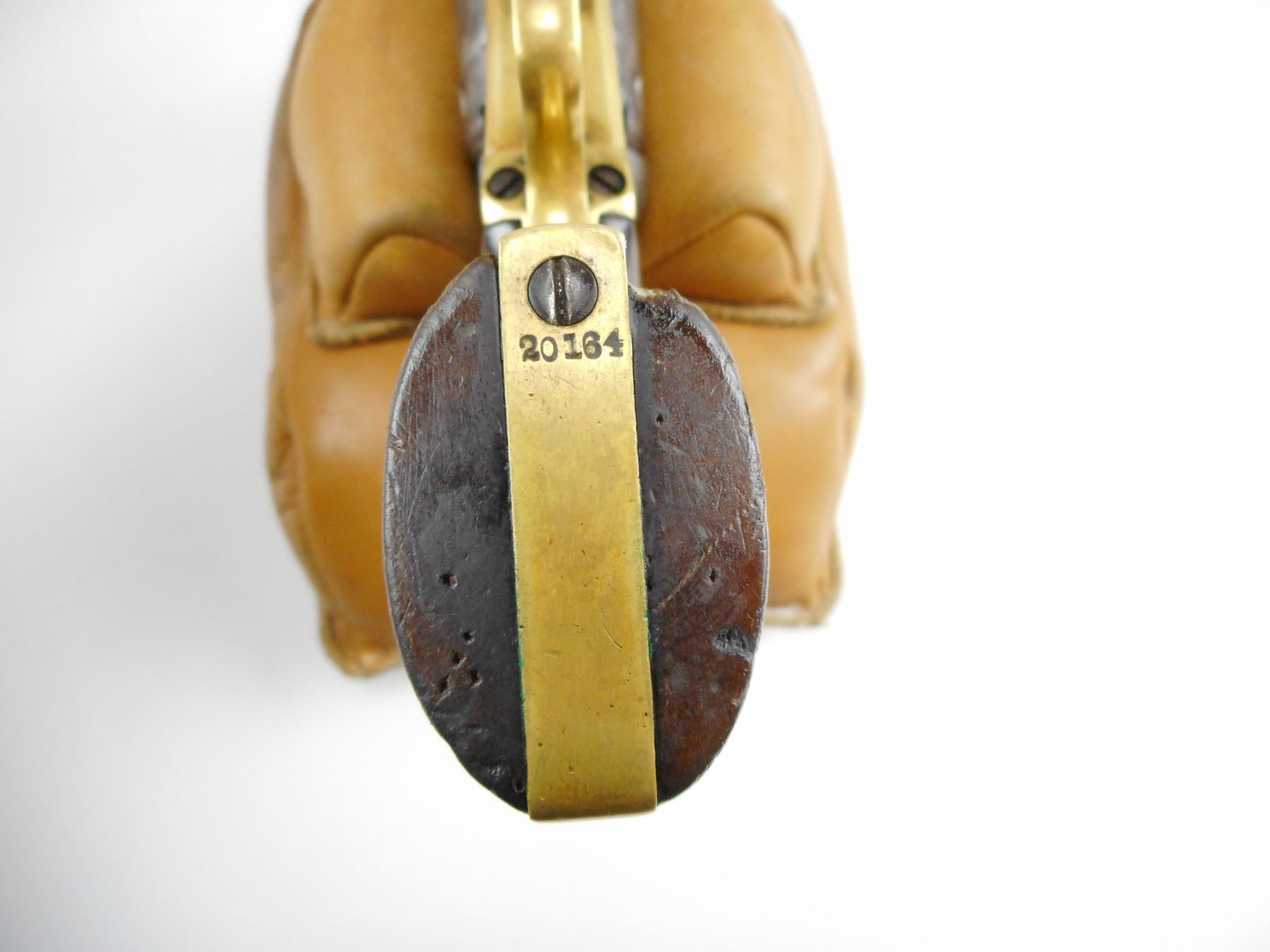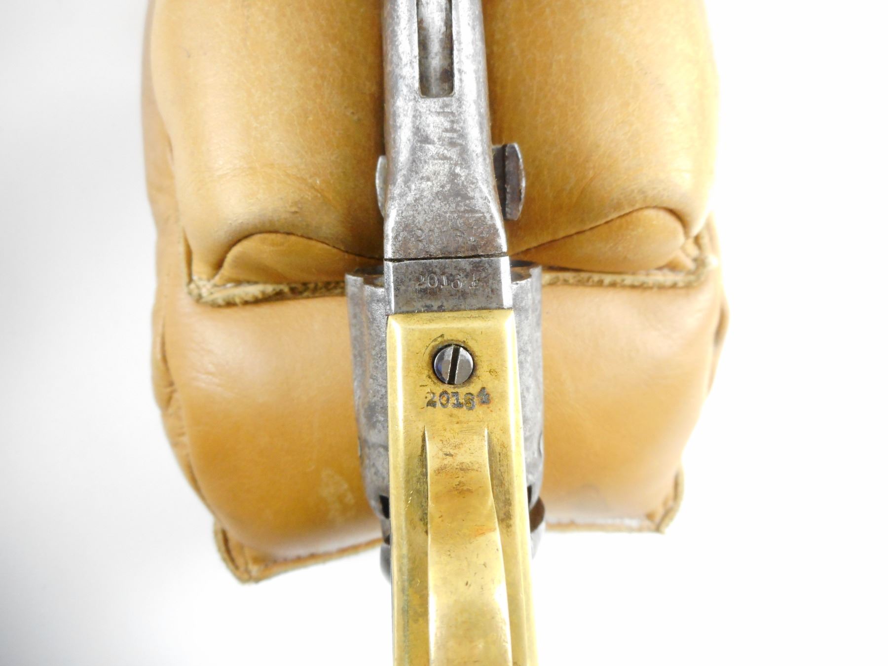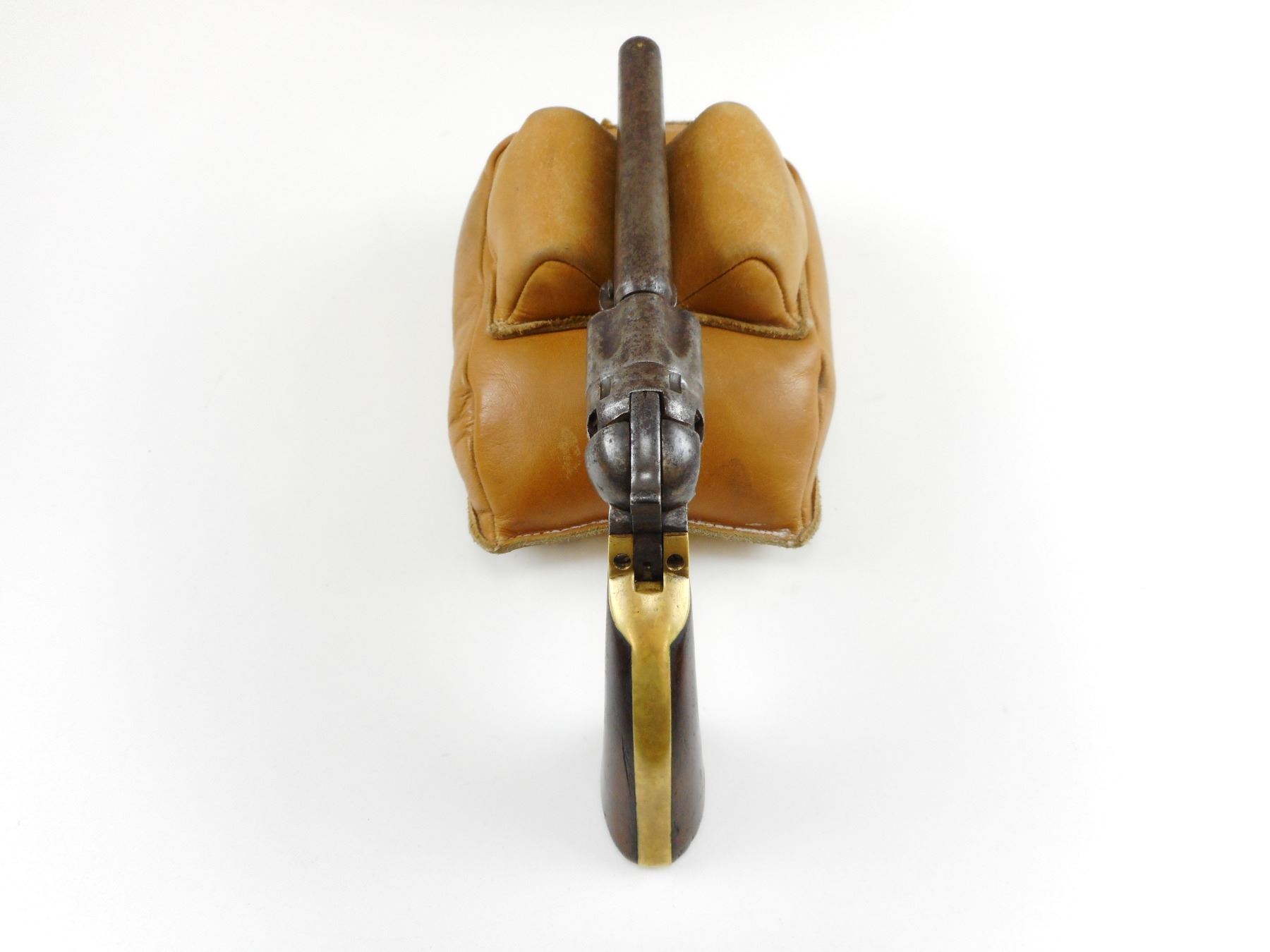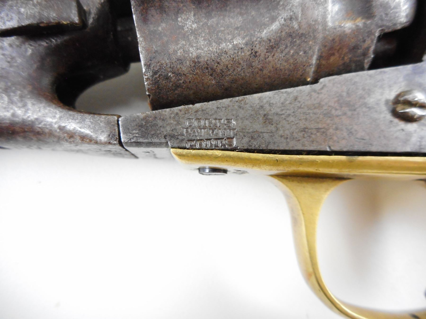 COLT, MODEL: 1862 POLICE MOD , CALIBER: 36CAL PERC , 5 SHOT CAPACITY, MANUFACTURED 1863, FLATENED BEAD FRONT SIGHT, HAMMER NOTCH REAR SIGHT, HOLDS IN THE COCKED POSITION BUT THE CYLINDER IS NOT INDEXING, SHOWS EXTENSIVE HANDLING MARKS, CHIPPED WALNUT GRIP PANELS, BORE IS DARK , ACTION: REVOLVER , BARREL LENGTH: 114MM , CONDITION: 4/10 ANTIQUE , STOCK # , SERIAL # 20164 , CLASS: CANADIAN ANTIQUE