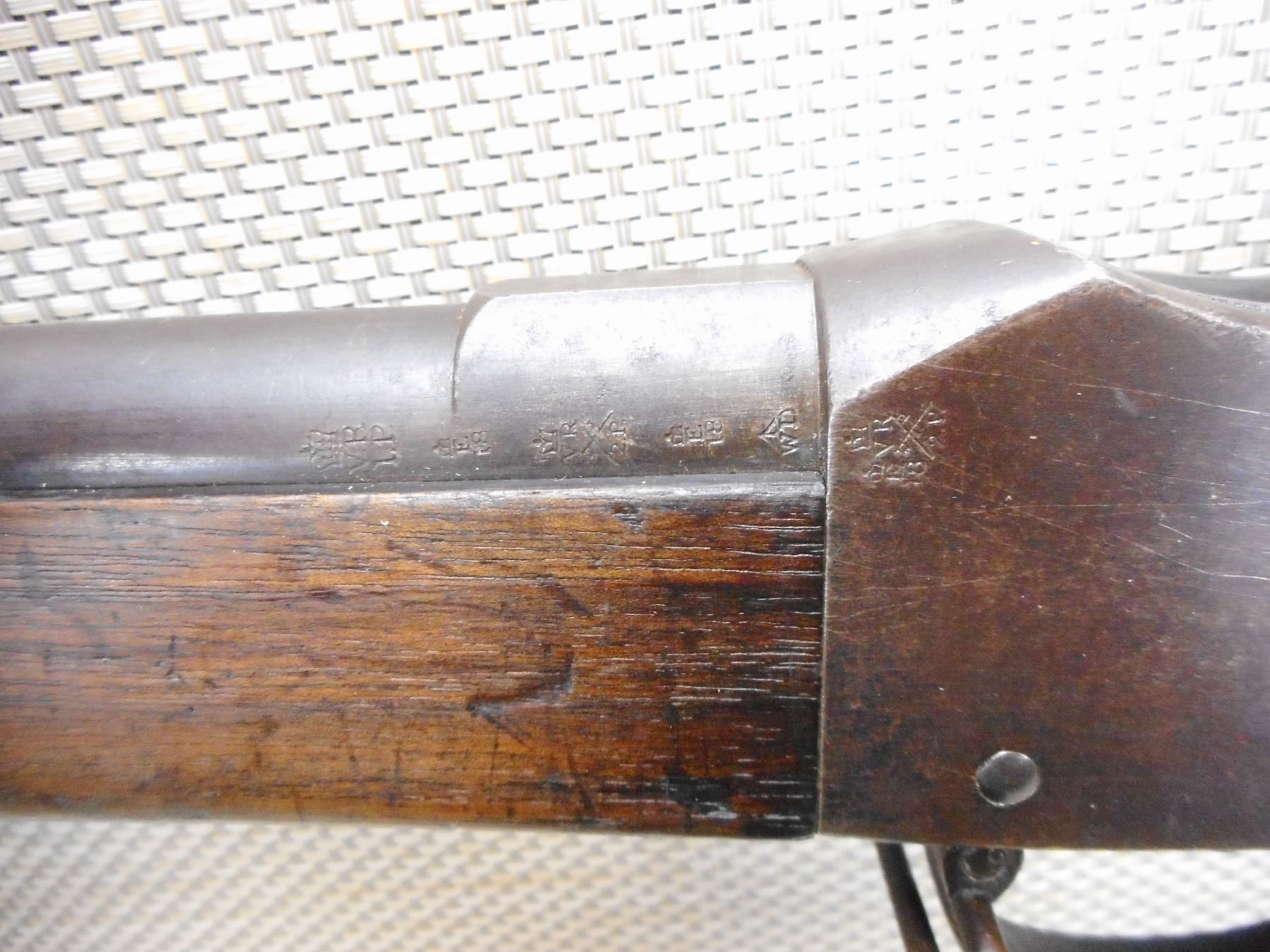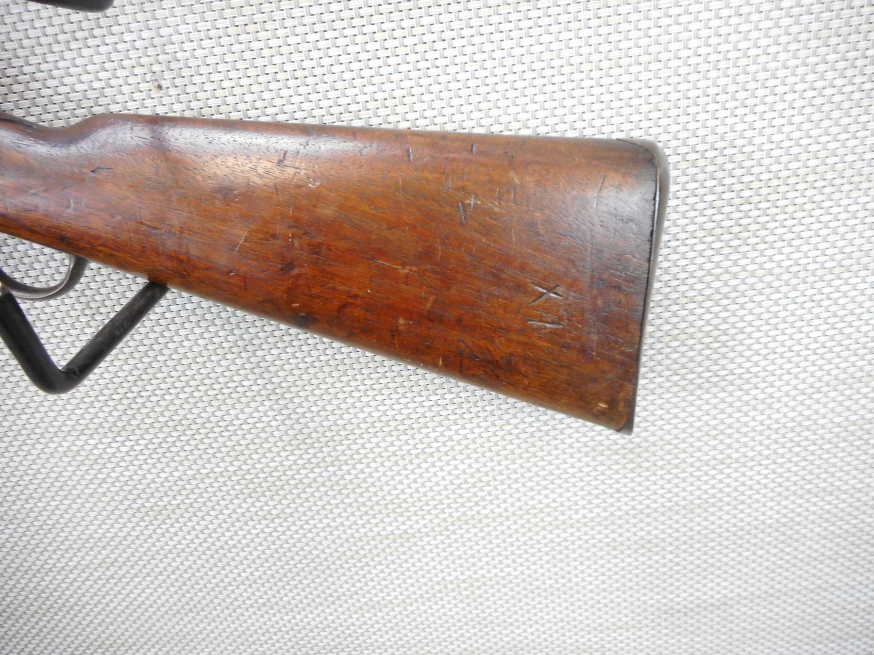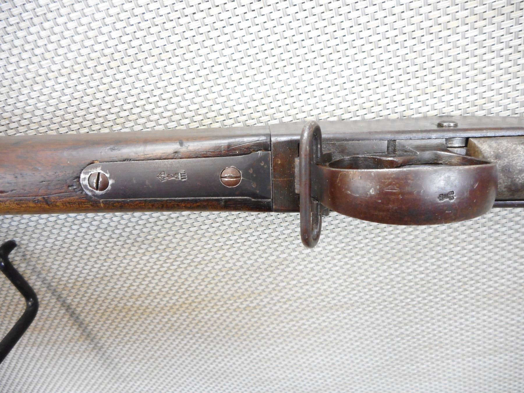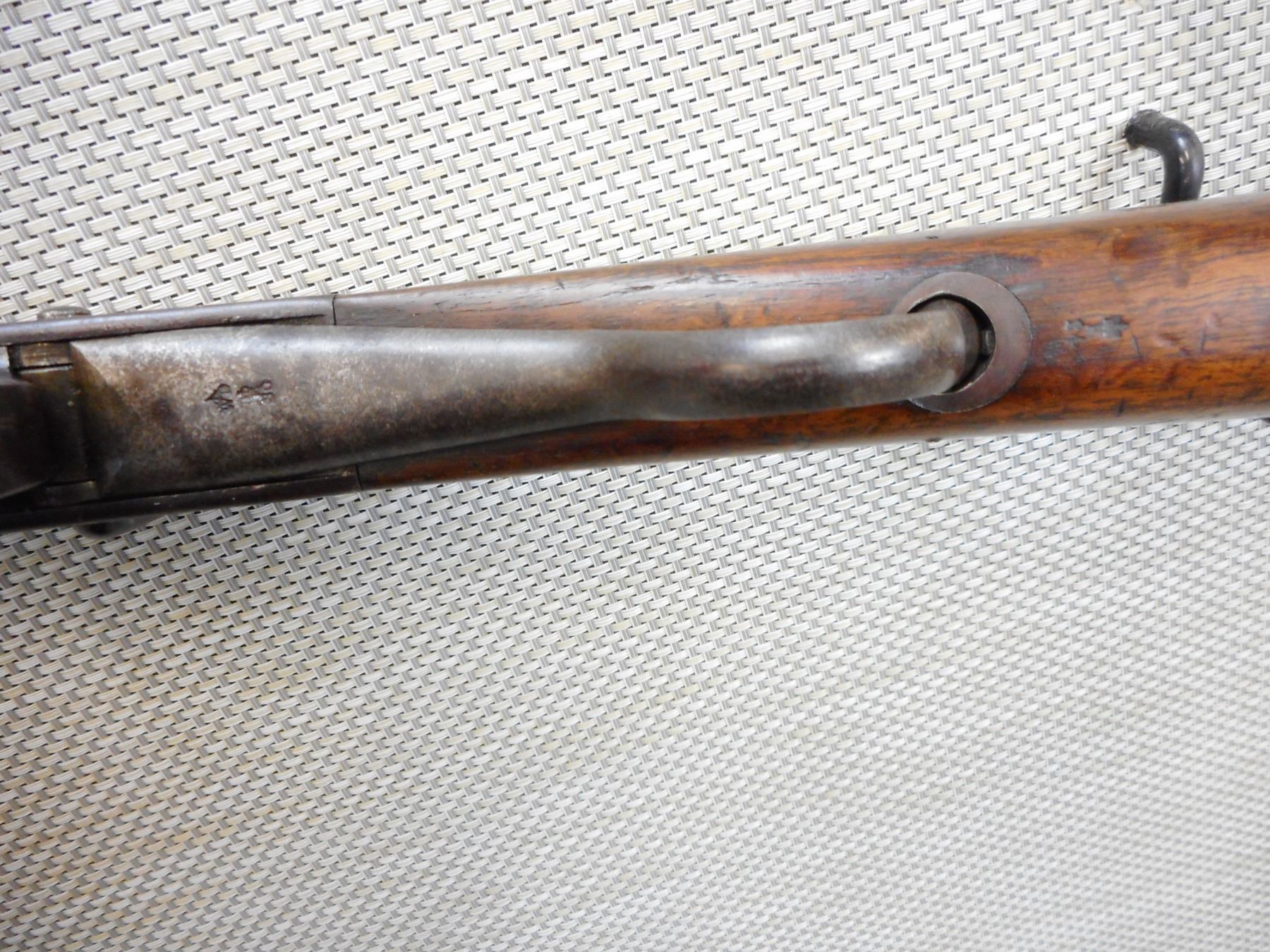 MARTINI-HENRY, MODEL: MKIII , CALIBER: 577/450 , MANUFACTURED BY ENFIELD LOCK DATED 1879, 1ST CLASS, WD MARK ON THE TRIGGER GUARD, LEVER AND THE BUTT PLATE, BORE IS GOOD WITH LOTS OF RIFLING, REAR LADDER SIGHT, FRONT BLADE SIGHT, BAYONET LUG, CLEANING ROD, SLING LOOPS, VARIOUS IMPRESSESS ON THE STOCK , ACTION: LEVER ACTION FALLING BLOCK , BARREL LENGTH: 33 1/4" , CONDITION: 7/10 ANTIQUE , STOCK # , SERIAL # N/A , CLASS: CANADIAN ANTIQUE