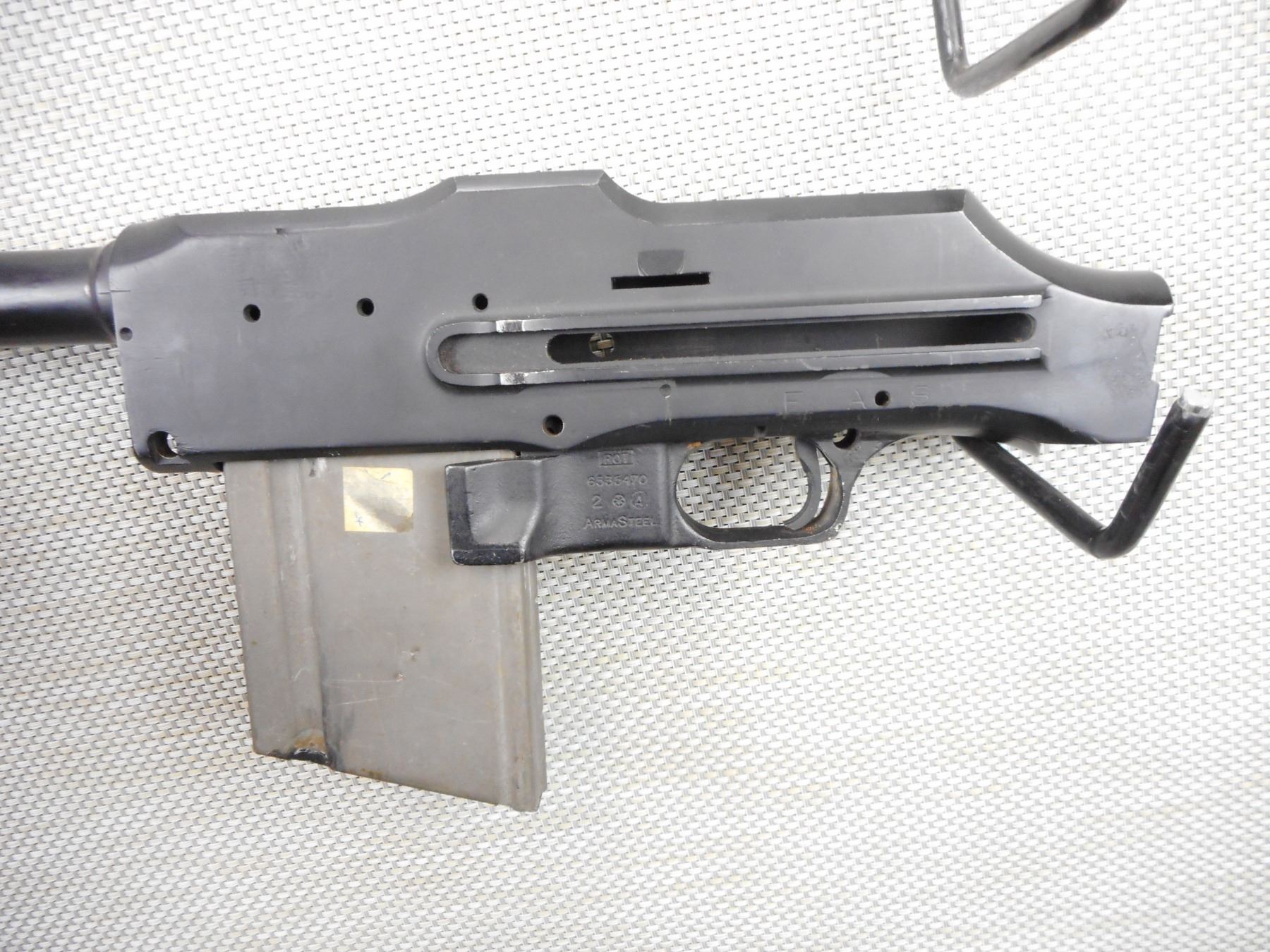 DEACTIVATED FAS, MODEL: AUTOMATIC RIFLE , CALIBER: 7.62 NATO ? , COMES WITH MAGAZINE IT DOES NOT LOCK IN UNSURE IF BECAUSE INCORRECT MAG OR DUE TO DEACTIVATION WELD, RAISED RAMP FRONT SIGHT, NO REAR SIGHT, ACTION APPEARS TO HAVE BEEN PAINTED, MISSING INTERNAL PARTS, FOREND AND BUTT STOCK , ACTION: DEACTIVATED , BARREL LENGTH: 24" , CONDITION: DEACTIVATED PARTS GUN , STOCK # , SERIAL # 6535470 , CLASS: DEACTIVATED