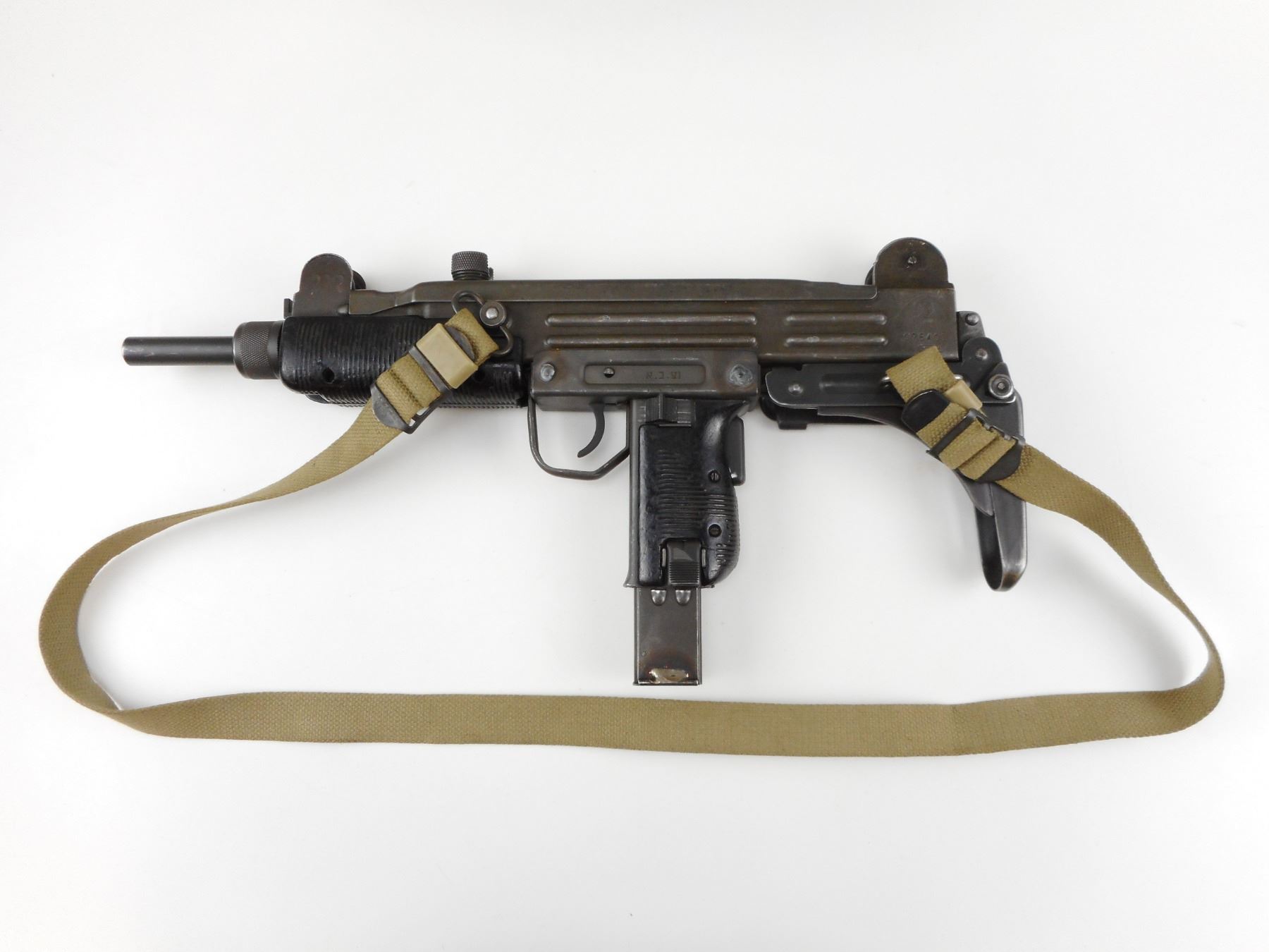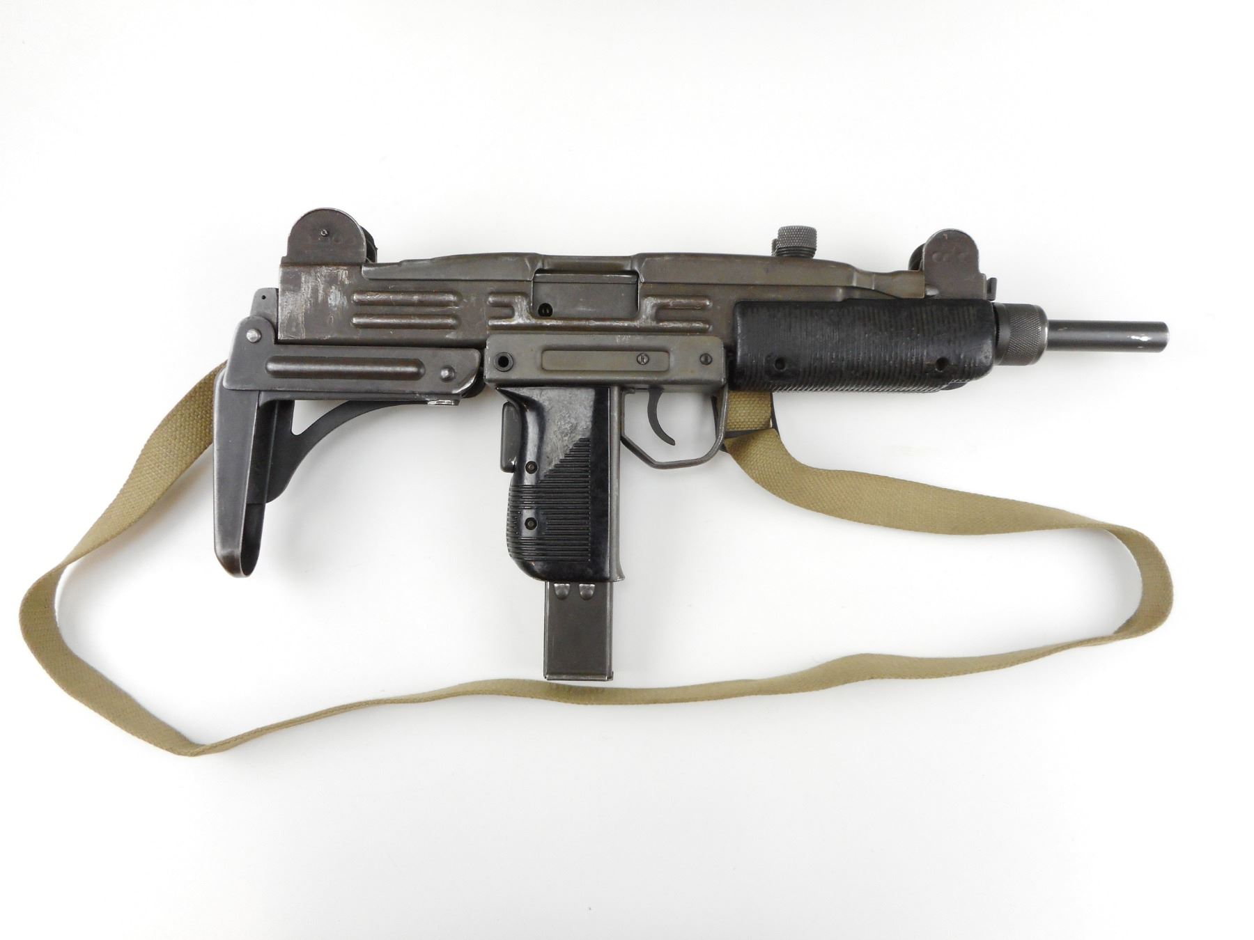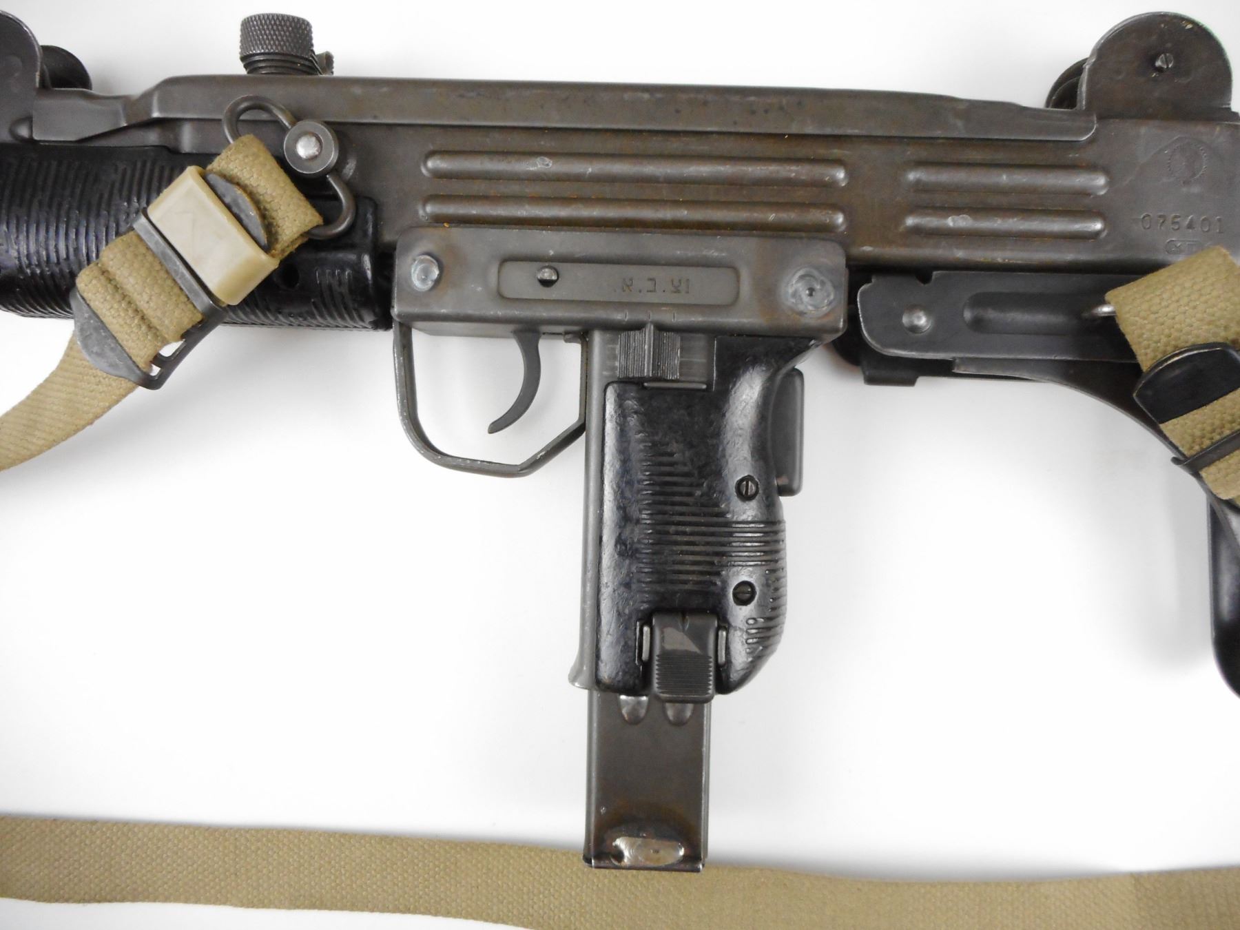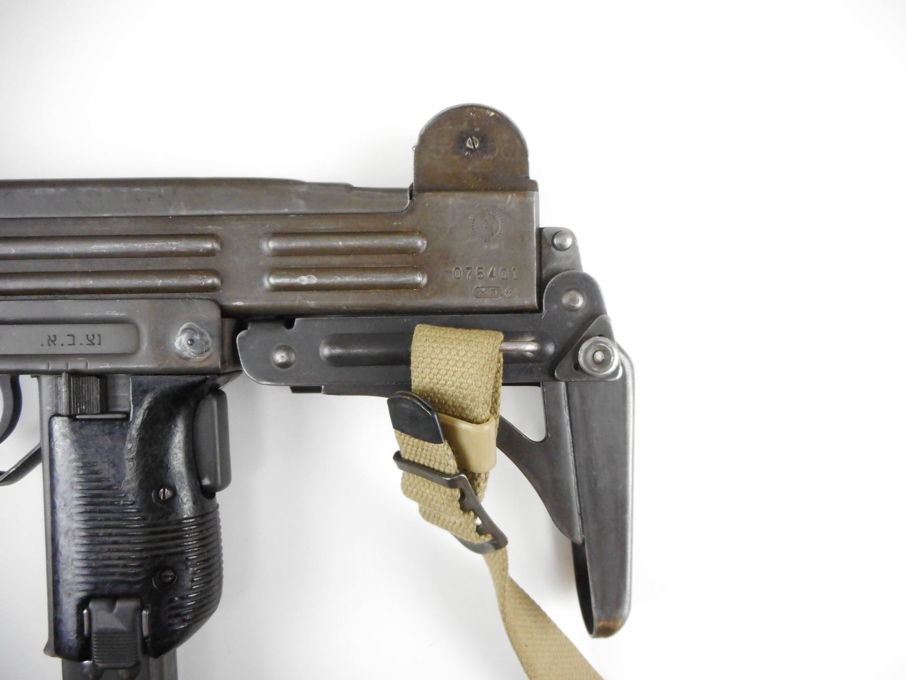 UZI, MODEL: SMG, CALIBER: 9MM LUGER , COMES WITH MAGAZINE, THIS IS A CLASS 12-3 PROHIBITED, YOU REQUIRE 12-3 PRIVILEGE ON YOUR LICENSE TO PURCHASE UNLESS YOU WOULD LIKE TO HAVE IT DEACTIVATED, DEACTIVATION WILL COST $150.00, CFR TECHNICAL INSPECTION HAS ALREADY TAKEN PLACE AND REQUIRED MODIFICATIONS HAVE BEEN MADE, VERY GOOD BORE, BLADE FRONT SIGHT, FLIP PEEP REAR SIGHT, COLLAPSABLE BUTT STOCK, SYNTHETIC FOREND AND GRIP PANELS, PARKERIZED FINISH, SLING SWIVEL LOOPS WITH ORIGINAL CANVAS SLING, SHOWS SOME HANDLING MARKS , ACTION: SUBMACHINE GUN / CONVERTED AUTO , BARREL LENGTH: 260MM , CONDITION: 7/10 , STOCK # 2361 , SERIAL # 075401 , CLASS: CANADIAN PROHIBITED CLASS