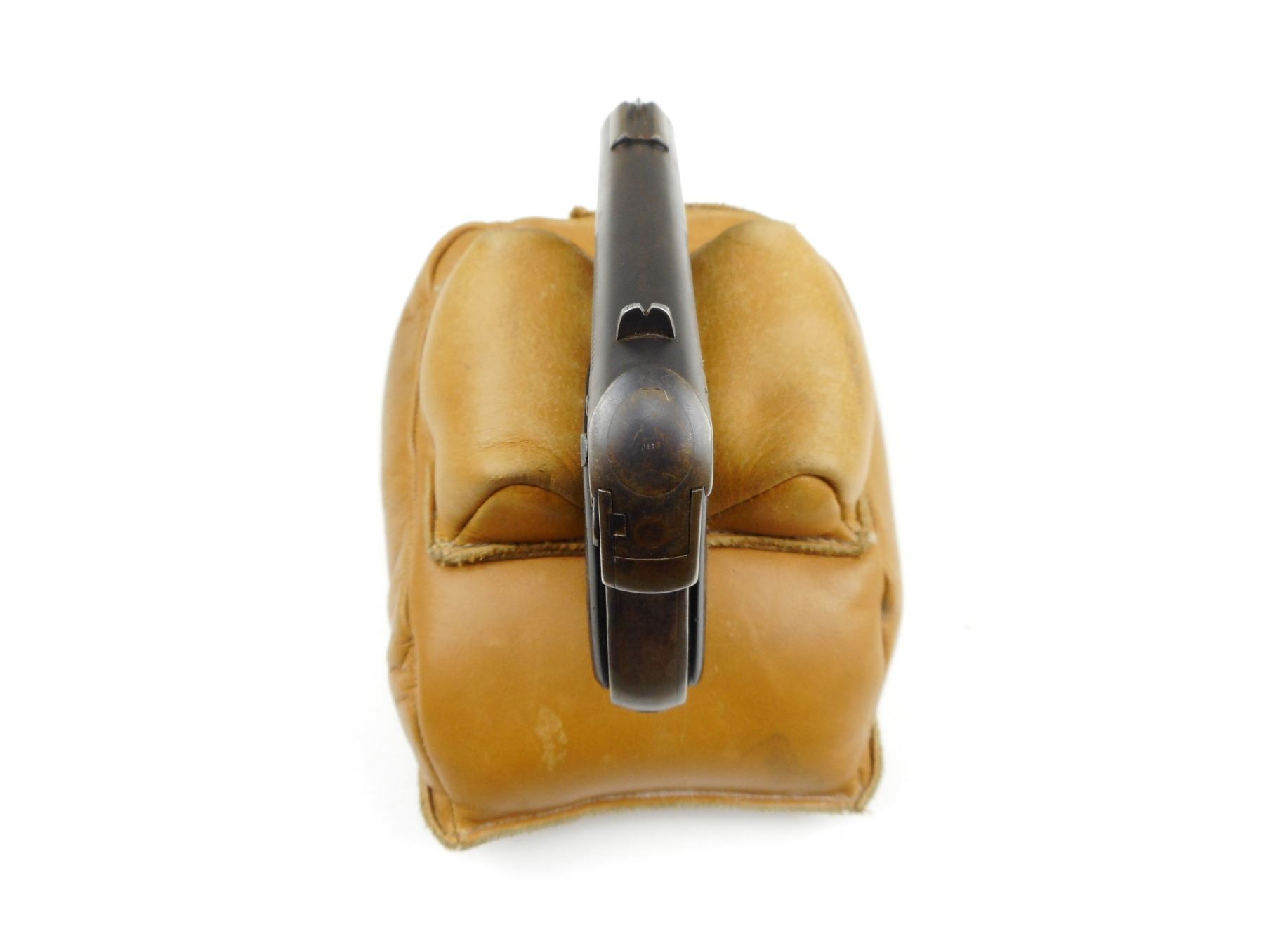 BAYARD, MODEL: 1908 POCKET , CALIBER: 7.65MM , COMES WITH MAGAZINE, BLADE FRONT AND RAISED RAMP REAR SIGHTS, GOOD BORE, BLACK CHECKERED GRIP PANELS, SOME SCRATCHES ON THE RIGHT SIDE OF THE RECEIVER, SHOWS SOME HANDLING MARKS , ACTION: SEMI-AUTOMATIC HANDGUN , BARREL LENGTH: 57MM , CONDITION: 5/10 , STOCK # 2399 , SERIAL # 259136 , CLASS: CANADIAN PROHIBITED CLASS