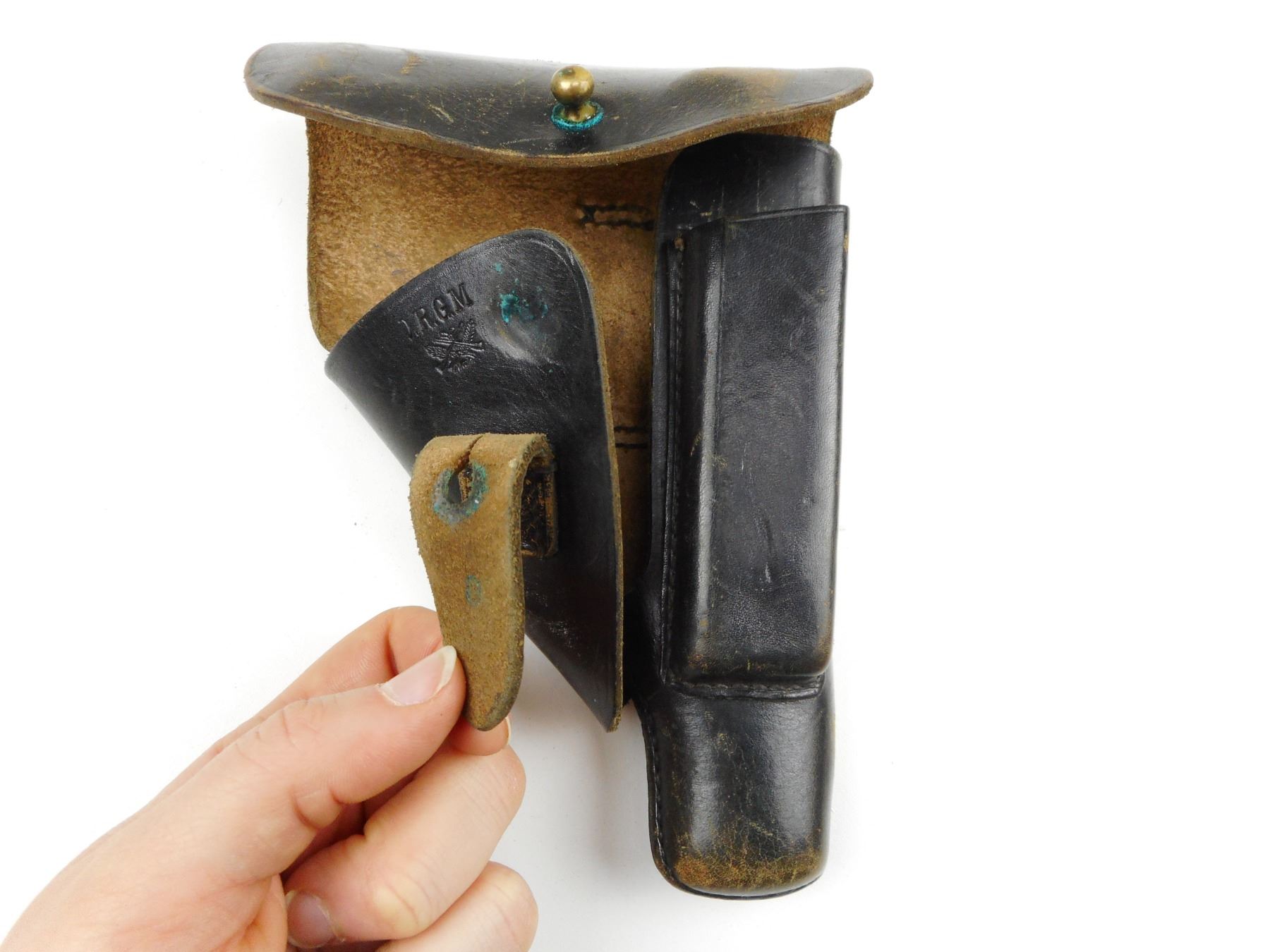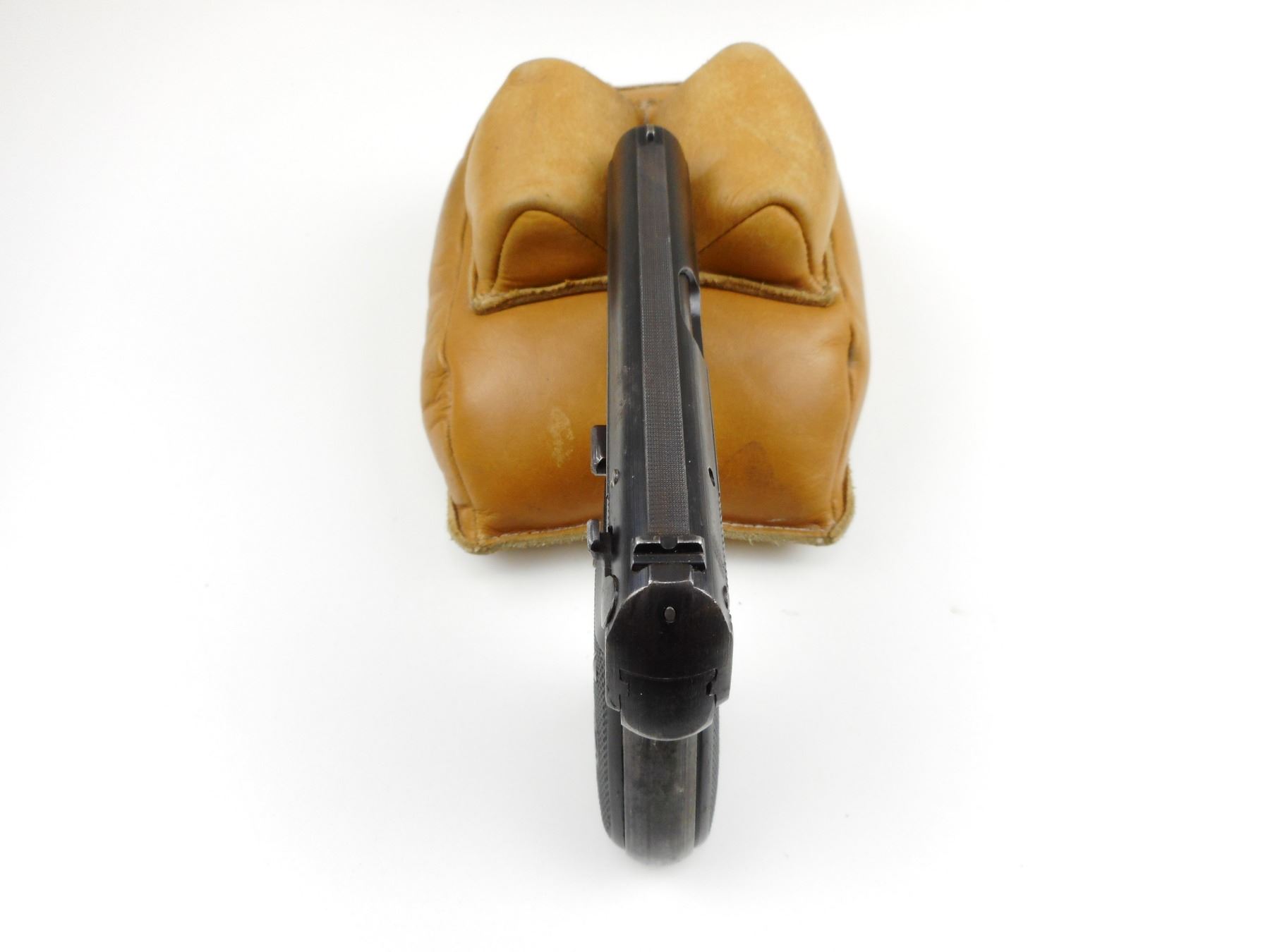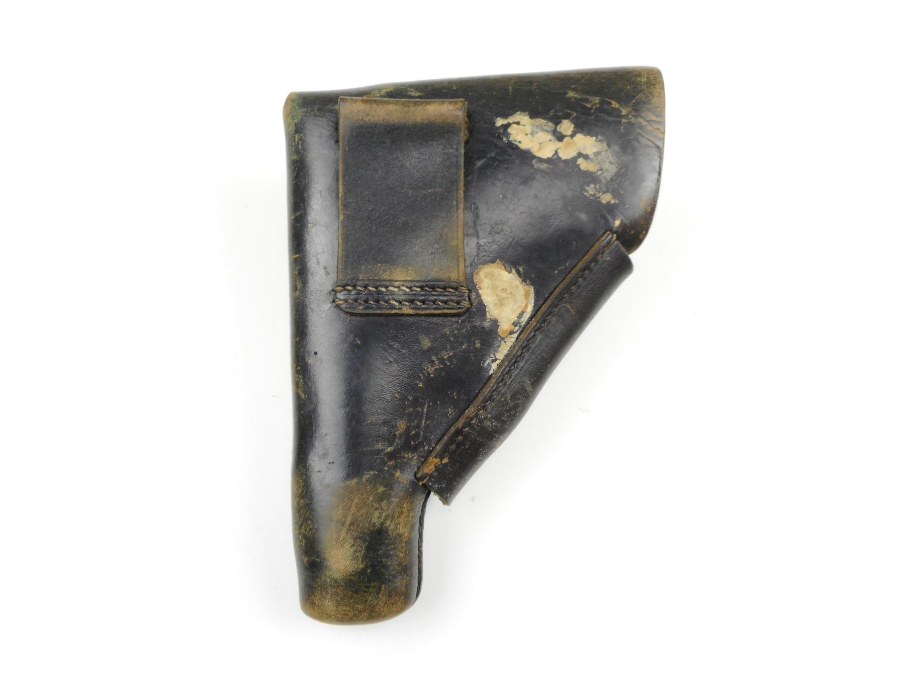 SAUER, MODEL: 38H, CALIBER: 7.65MM , COMES WITH LEATHER HOLSTER AND A TOTAL OF 2 MAGAZINES, VERY GOOD BORE, CRACKED BLACK PLASTIC GRIP PANELS, SOME SURFACE PITTING, GERMAN MILITARY ACCEPTANCE MARKS, SHOWS SOME HANDLING MARKS, HOLSTER IS MARKED DRGM , ACTION: SEMI-AUTOMATIC HANDGUN , BARREL LENGTH: 83MM , CONDITION: 5/10 , STOCK # 2406 , SERIAL # 376608 , CLASS: CANADIAN PROHIBITED CLASS