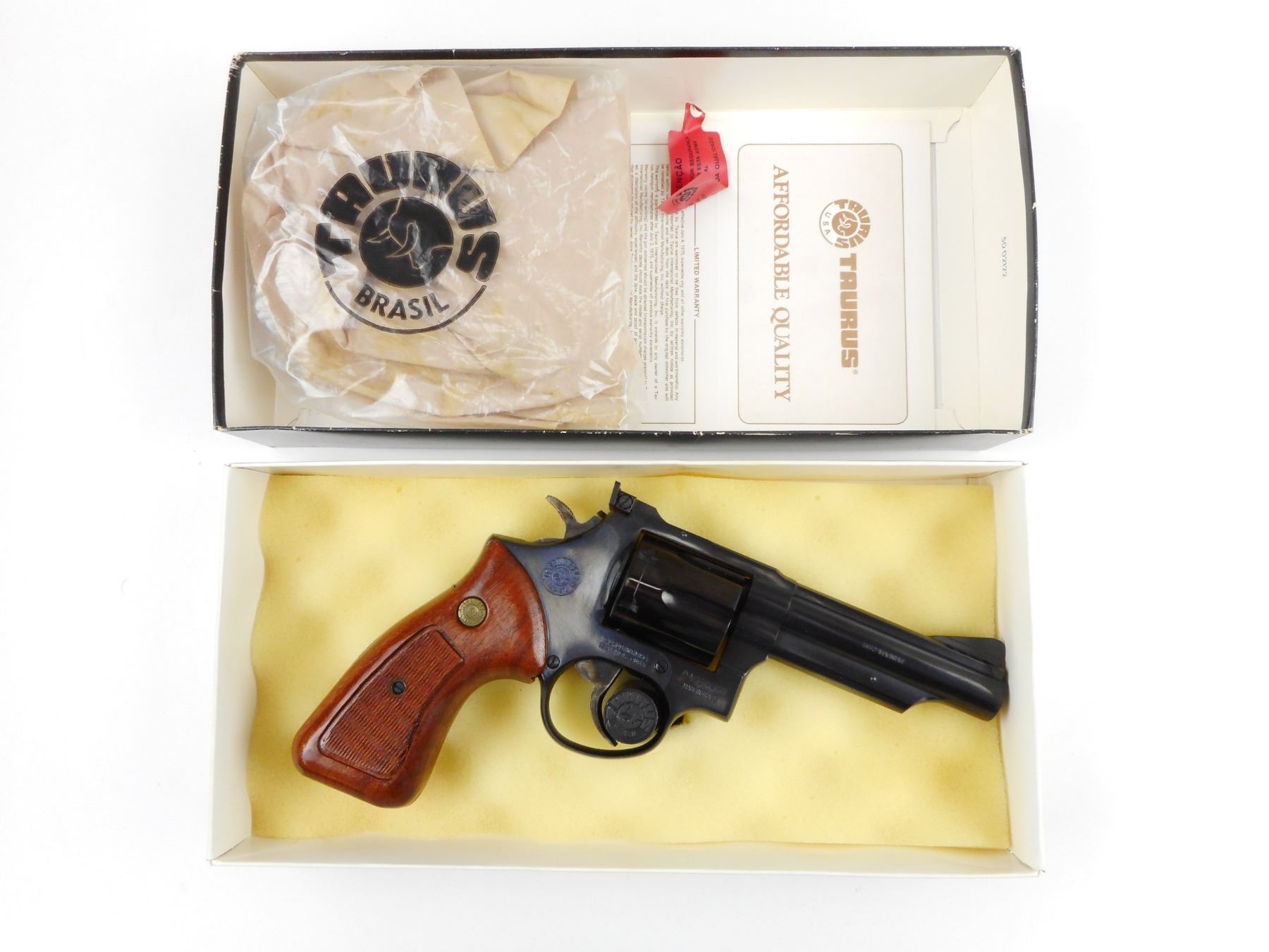 TAURUS, MODEL: 66, CALIBER: 357 MAGNUM , NEW IN BOX, 6 SHOT CAPACITY, BORE IS EXCELLENT, BLADE FRONT AND ADJUSTABLE REAR SIGHT, CHECKERED WOOD GRIP PANELS WITH TAURUS LOGO, NO HANDLING MARKS , ACTION: REVOLVER , BARREL LENGTH: 102MM , CONDITION: NEW IN BOX , STOCK # 2445 , SERIAL # MA729375 , CLASS: CANADIAN PROHIBITED CLASS