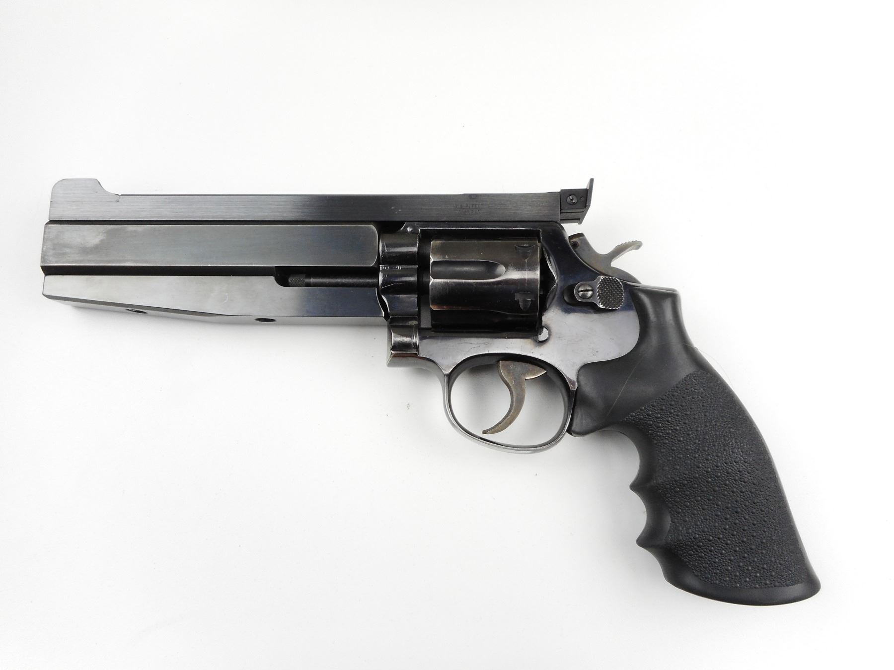 SMITH & WESSON , MODEL: 10-5, CALIBER: 38 SPECIAL , ARISTICRAT TARGET BARREL AND WEIGHT ASSEMBLY, BORE IS EXCELLENT, HOGUE MONO GRIP, HOLDS COCK, INDEXES WELL, ACTION IS TIGHT, SHOWS VERY LITTLE HANDLING MARKS, RAMP FRONT AND ADJUSTABLE REAR SIGHT, , ACTION: REVOLVER , BARREL LENGTH: 152MM , CONDITION: 7/10 , STOCK # 3081 , SERIAL # C720394 , CLASS: CANADIAN RESTRICTED CLASS