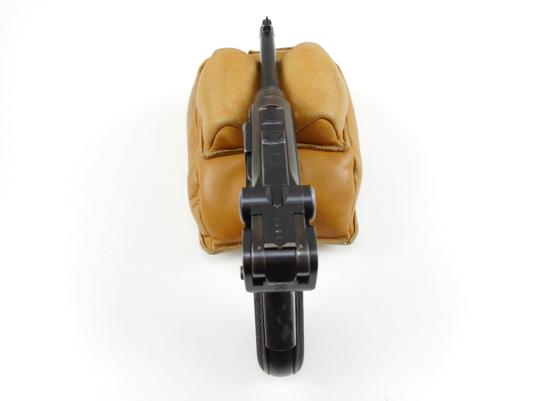 LUGER, MODEL: 1929 SWISS, CALIBER: 7.65 PARABELLUM , COMES WITH MAGAZINE THAT IS NOT NUMBERED, SERIAL #'S MATCH ON THE RECEIVER AND THE SIGHT, BORE IS EXCELLENT, CHECKERED PLASTIC GRIP PANELS, RAMP FRONT AND RAISED REAR SIGHTS, SHOWS SOME HOLSTER WEAR AT THE MUZZLE AND SIDE PLATE , ACTION: SEMI-AUTOMATIC HANDGUN , BARREL LENGTH: 121MM , CONDITION: 8/10 , STOCK # 4034 , SERIAL # 72411 , CLASS: CANADIAN RESTRICTED CLASS