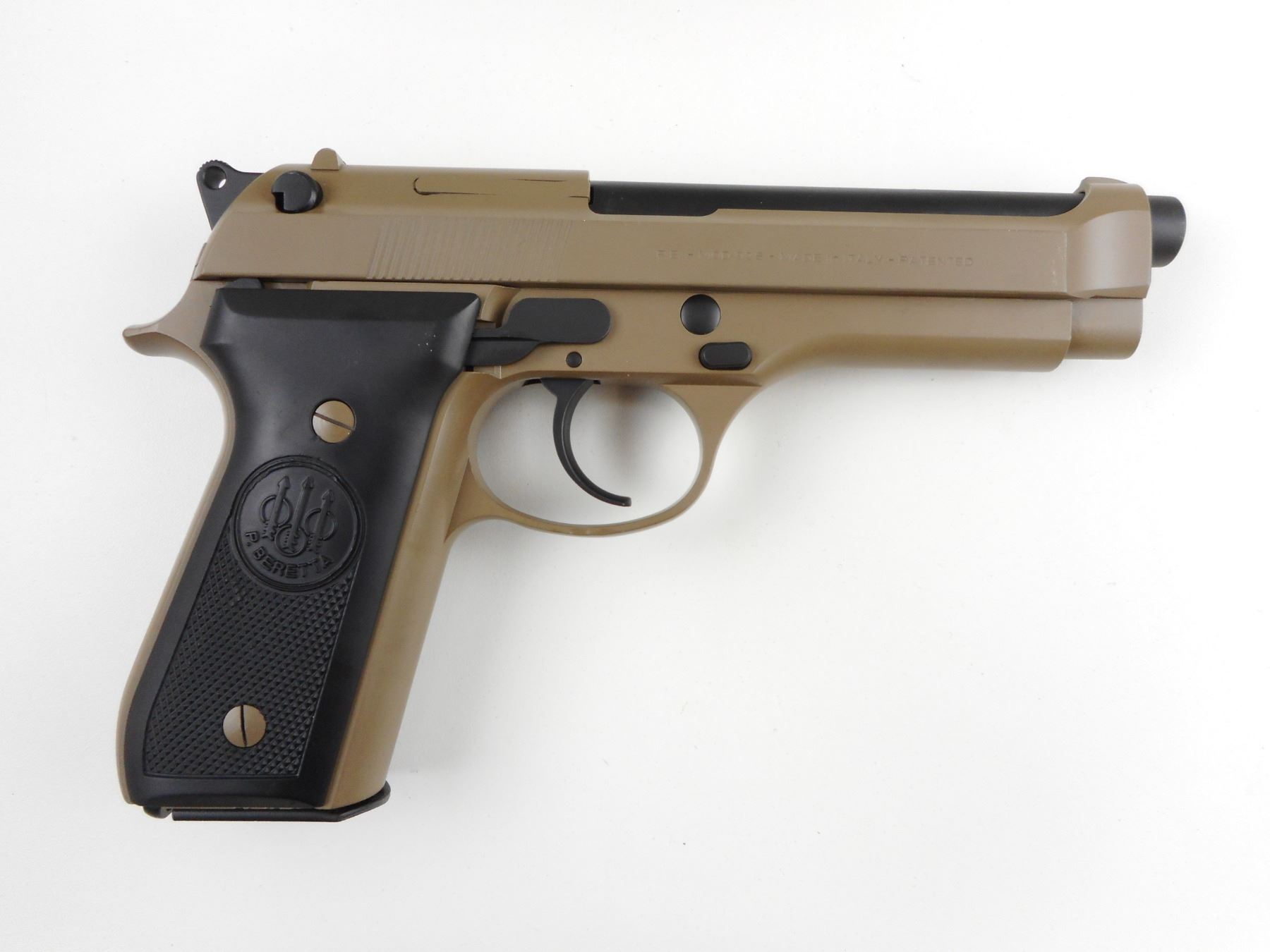 BERETTA, MODEL: 92S, CALIBER: 9MM PARABELLUM , COMES WITH SOFT CASE AND MAGAZINE, BLADE FRONT AND FIXED REAR SIGHTS, EXCELLENT BORE, DESERT FINISH, BLACK PLASTIC GRIP PANELS, SHOWS VERY LITTLE HANDLING MARKS, HEAL MAGAZINE RELEASE , ACTION: SEMI-AUTOMATIC HANDGUN , BARREL LENGTH: 124MM , CONDITION: 8/10 , STOCK # 4072 , SERIAL # U05831Z , CLASS: CANADIAN RESTRICTED CLASS