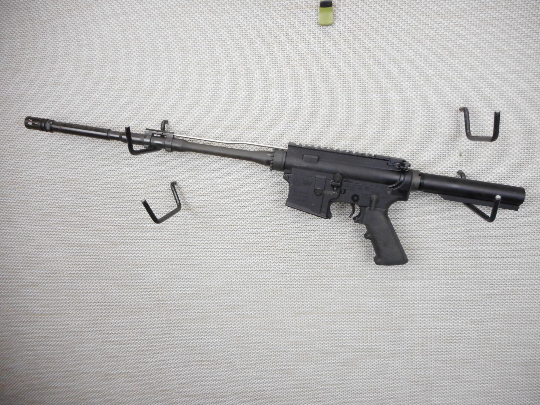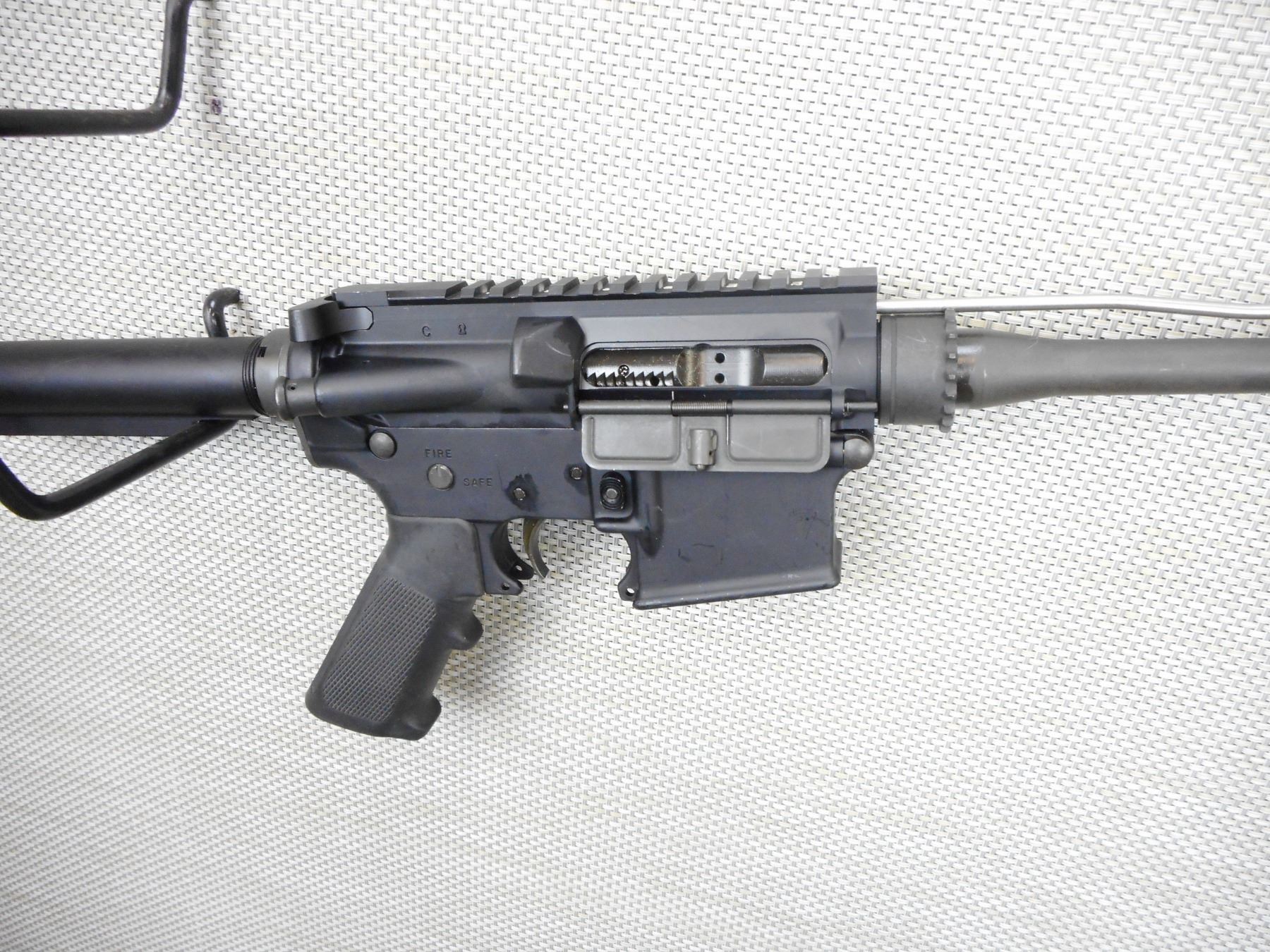 COLT, MODEL: M4 CARBINE , CALIBER: 5.56MM NATO , COMES WITH BOX, MANUAL AND LOCK, DOES NOT HAVE A MAGAZINE, MISSING THE FOREND AND BUTTSTOCK, AS WELL AS THE TRIGGER GUARD, THE BORE IS GOOD, BIRD CAGE FLASH HIDER, RETAINS FULL PISTOL GRIP, SHOWS SOME HANDLING MARKS , ACTION: SEMI-AUTOMATIC RIFLE , BARREL LENGTH: 420MM , CONDITION: 9/10 NOT COMPLETE , STOCK # 4082 , SERIAL # LE447590 , CLASS: CANADIAN RESTRICTED CLASS
