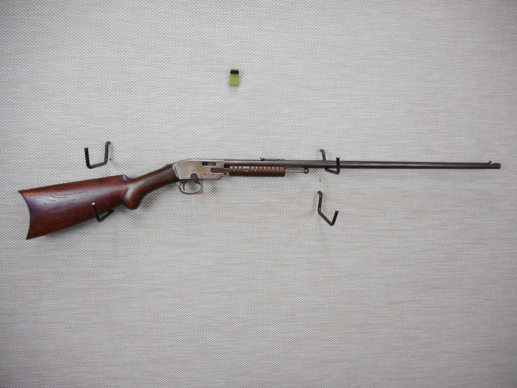 137389 SAVAGE 1909 PUMP ACTION RIFLE 22 CAL 26" DOES NOT COME WITH MAGAZINE, TAKEDOWN MODEL, CRESCENT METAL BUTT PLATE, GOOD WOOD, TANG SAFETY, ADJUSTABLE METAL SIGHTS, BORE SHOWS GOOD RIFLING, NOT CYCLING PROPERLY, CONDITION: PARTS GUN, CLASS: CANADIAN NON RESTRICTED CLASS