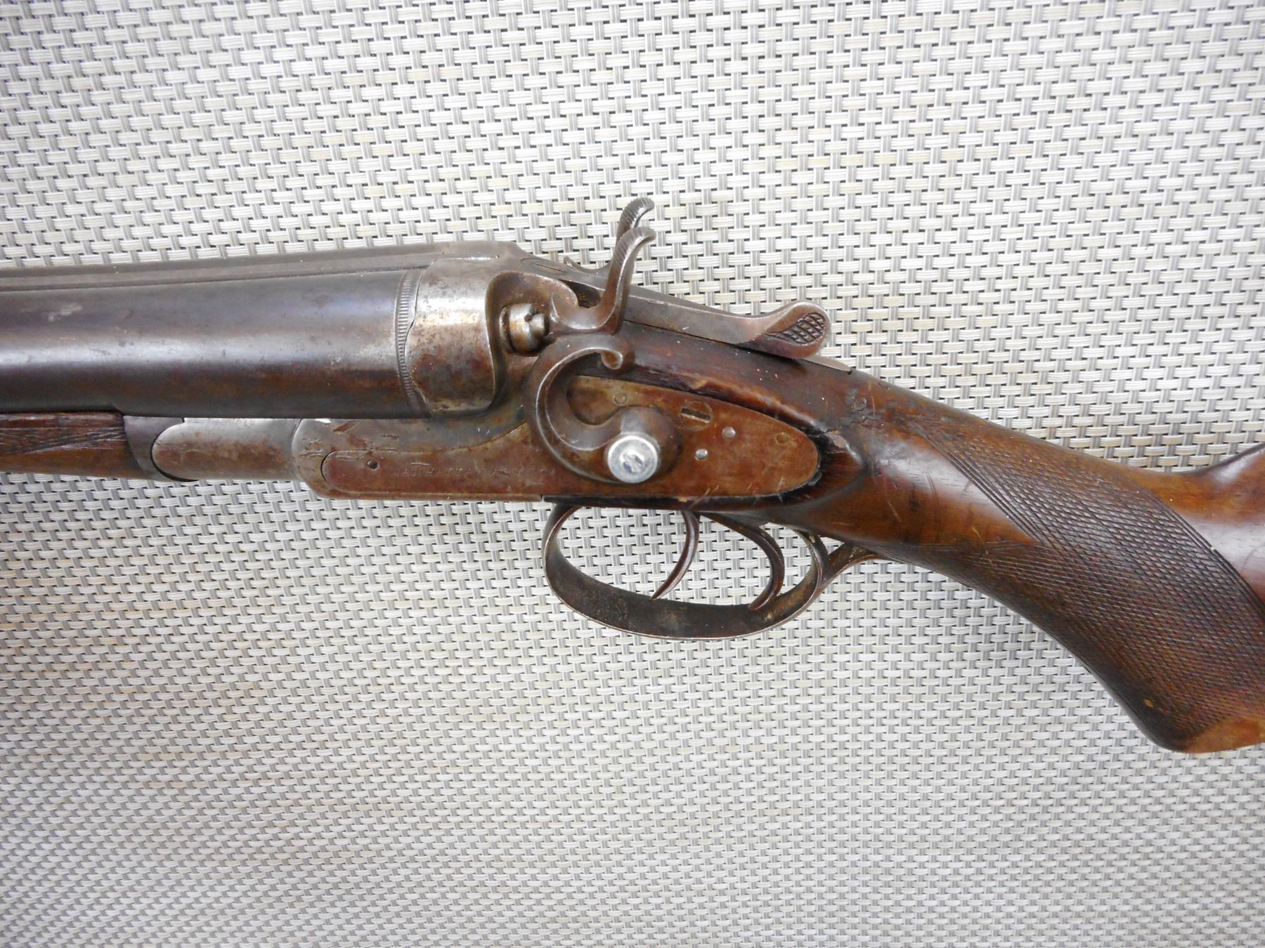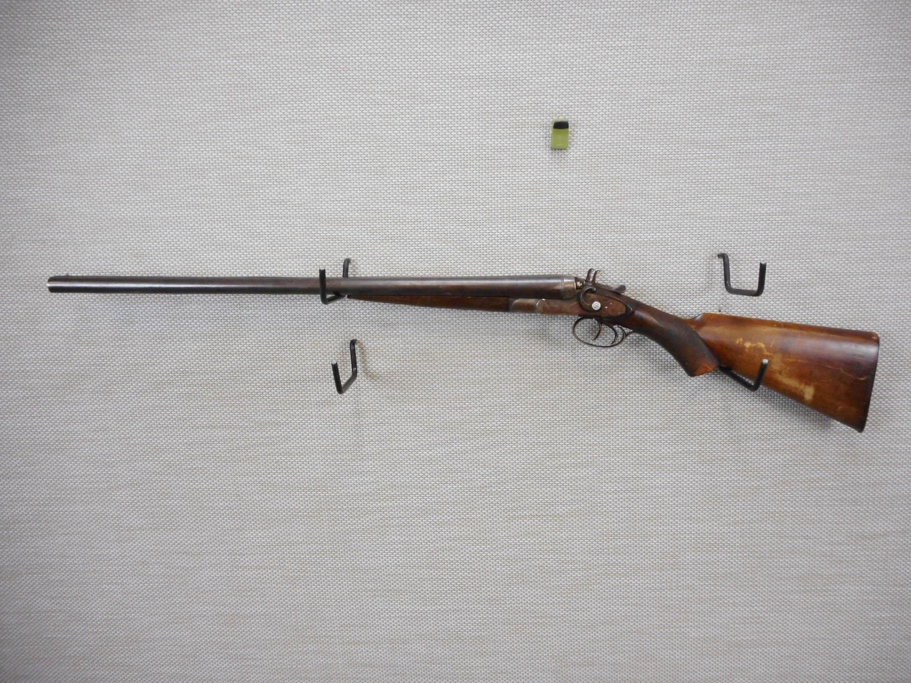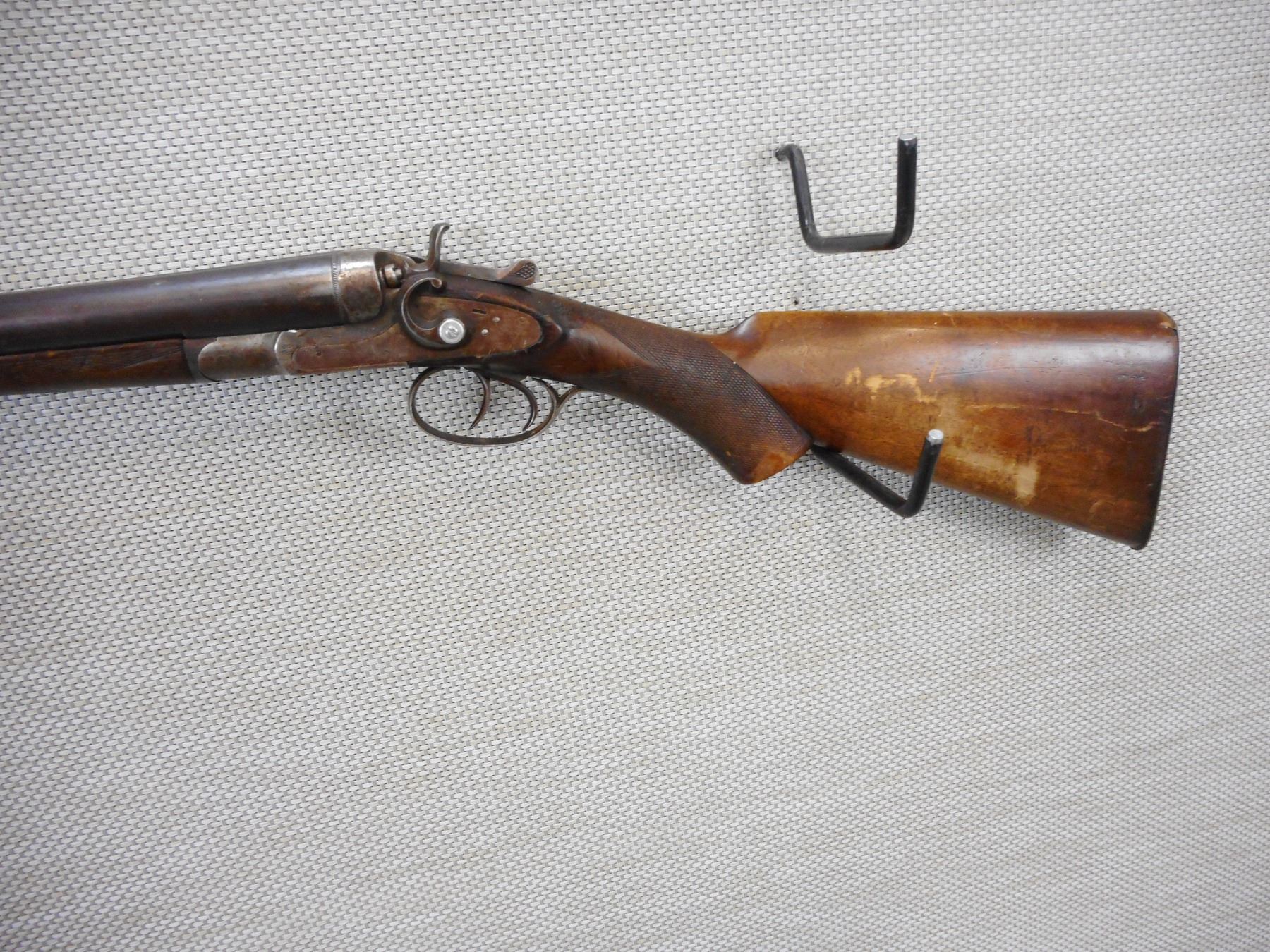 MANHATTAN ARMS , MODEL: SIDE BY SIDE , CALIBER: 12GA X 2 3/4" , BORES ARE GOOD, FIXED IMPROVED CYLINDER CHOKES, BARRELS ARE MARKED BELGIAN BEST WORLD STEEL AND APPEAR TO HAVE BEEN SHORTENED, BEAD FRONT SIGHT, METAL BUTT PLATE, CHECKERED PISTOL GRIP AND FORESTOCK, DOUBLE HAMMERS, DOUBLE TRIGGERS, SHOWS EXTENSIVE HANDLING MARKS ON THE WOOD , ACTION: BREAK ACTION DOUBLE HAMMER DOUBLE TRIGGER SHOTGUN , BARREL LENGTH: 25" , CONDITION: 4/10 , CLASS: CANADIAN NON RESTRICTED CLASS , STOCK # 9599 , SERIAL # 17734