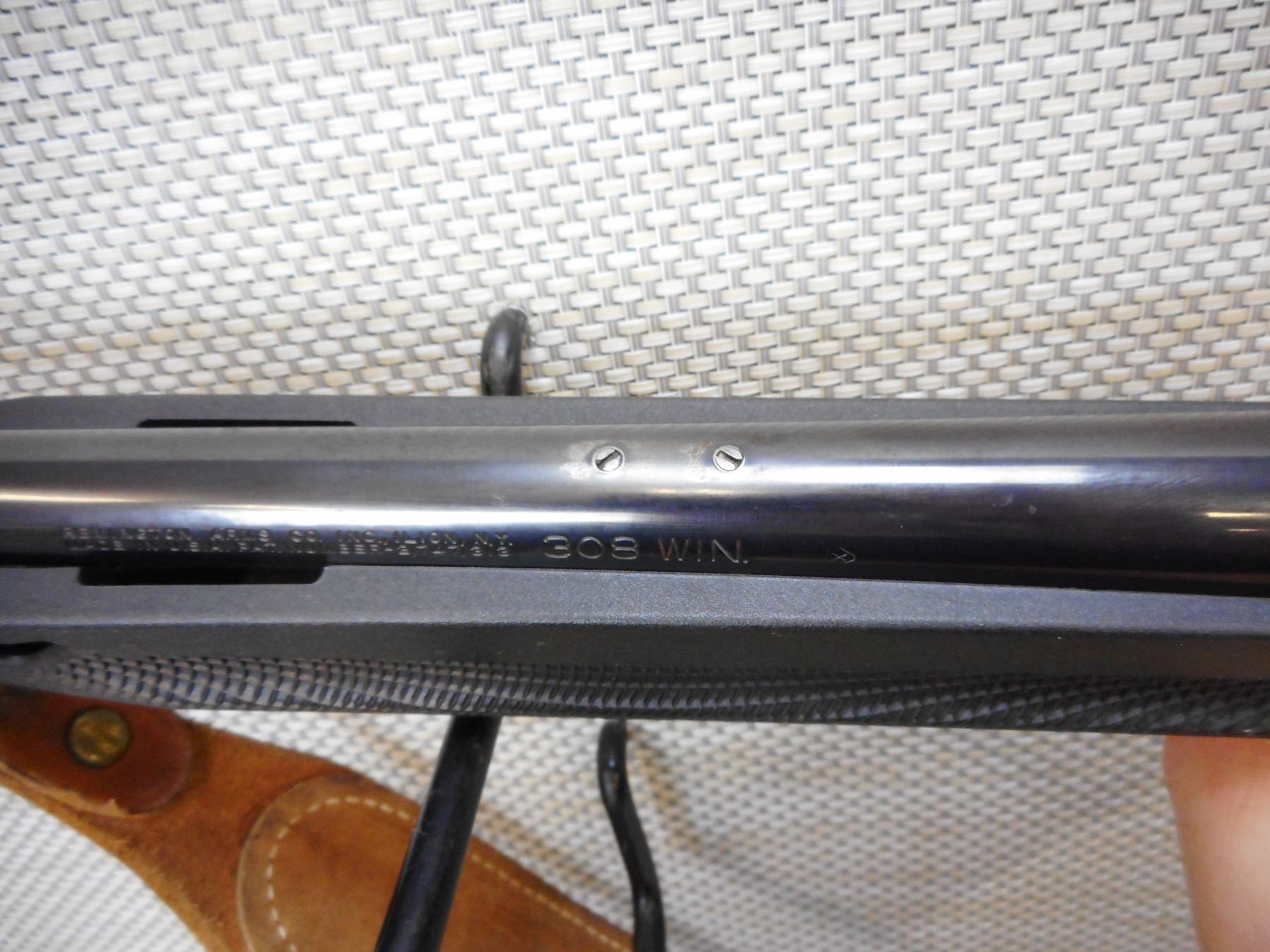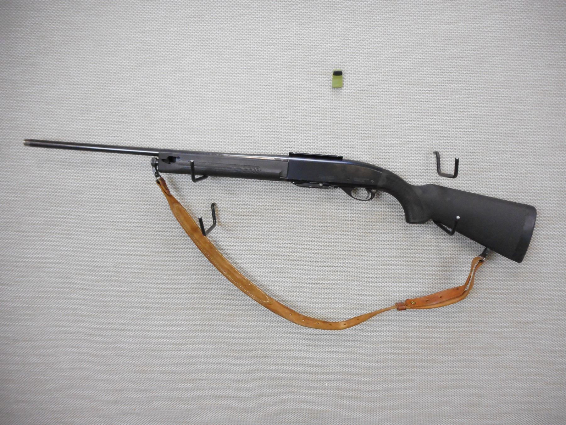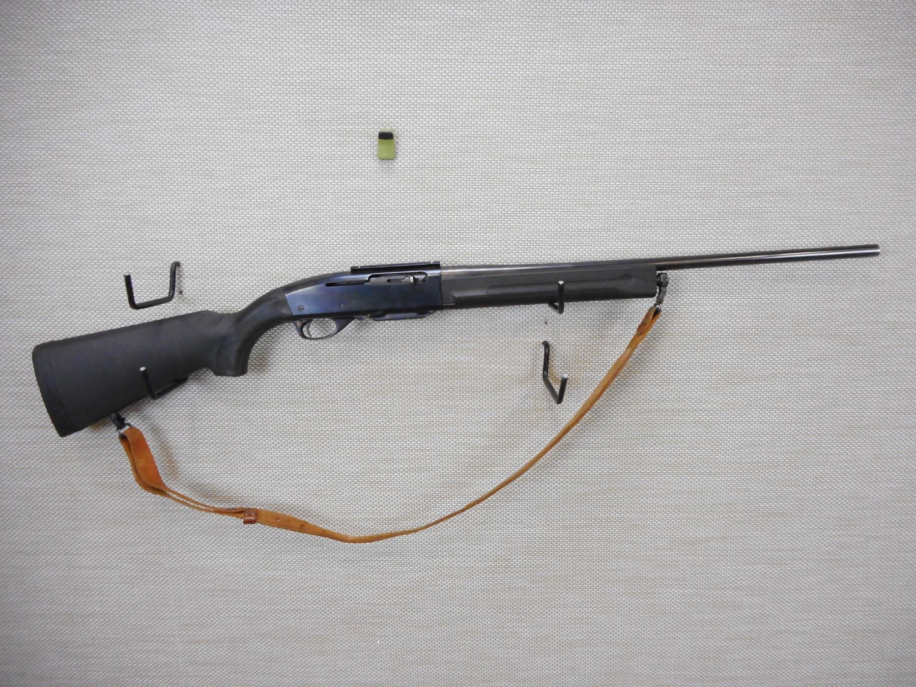 REMINGTON , MODEL: 742 WOODSMASTER , CALIBER: 308 WIN , COMES WITH MAGAZINE AS WELL AS ORIGINAL IRON SIGHTS AND SCOPE RINGS, HAS A DAMAGED FORESTOCK, BLACK SYNTHETIC STOCK WITH A RECOIL PAD, SLING LOOPS WITH LEATHER SLING, SCOPE MOUNT IS INSTALLED , BORE IS GOOD , ACTION: SEMI AUTOMATIC RIFLE , BARREL LENGTH: 22" , CONDITION: 6/10 , CLASS: CANADIAN NON RESTRICTED CLASS , STOCK # 9601 , SERIAL # A71212975