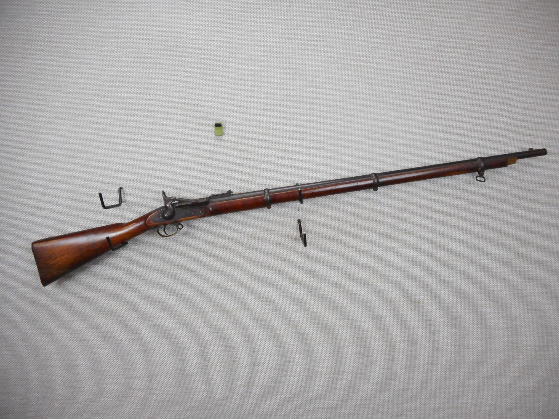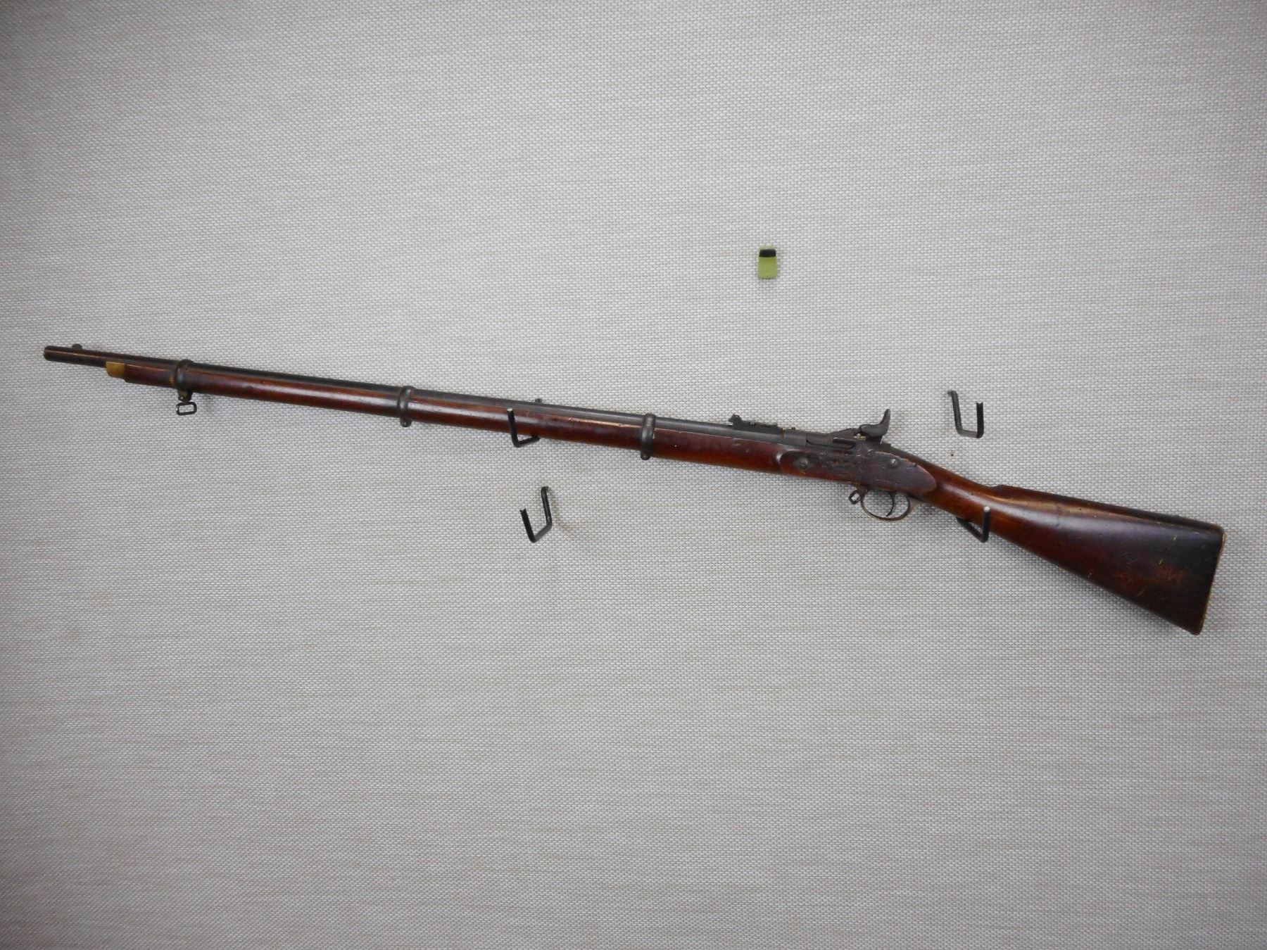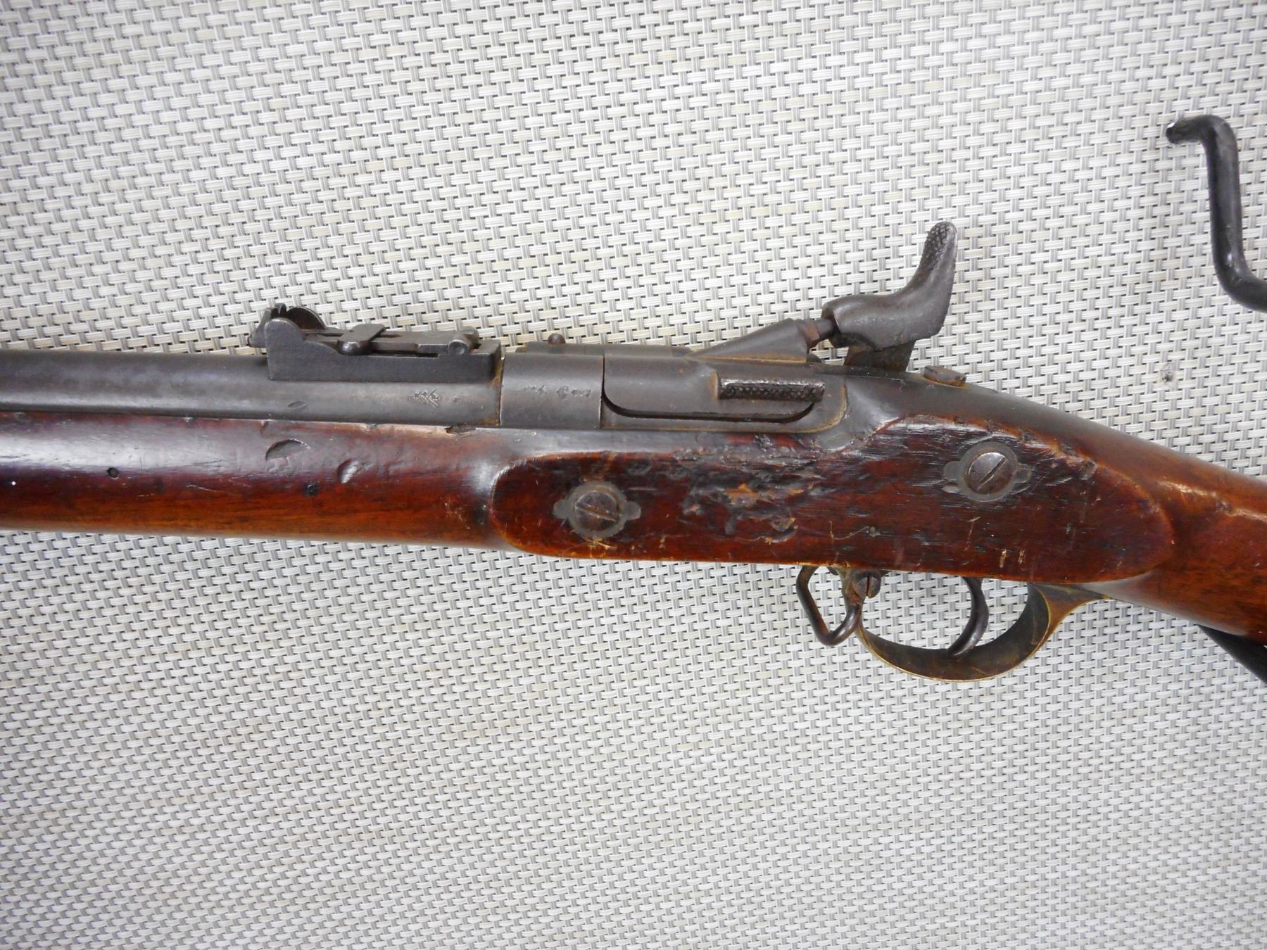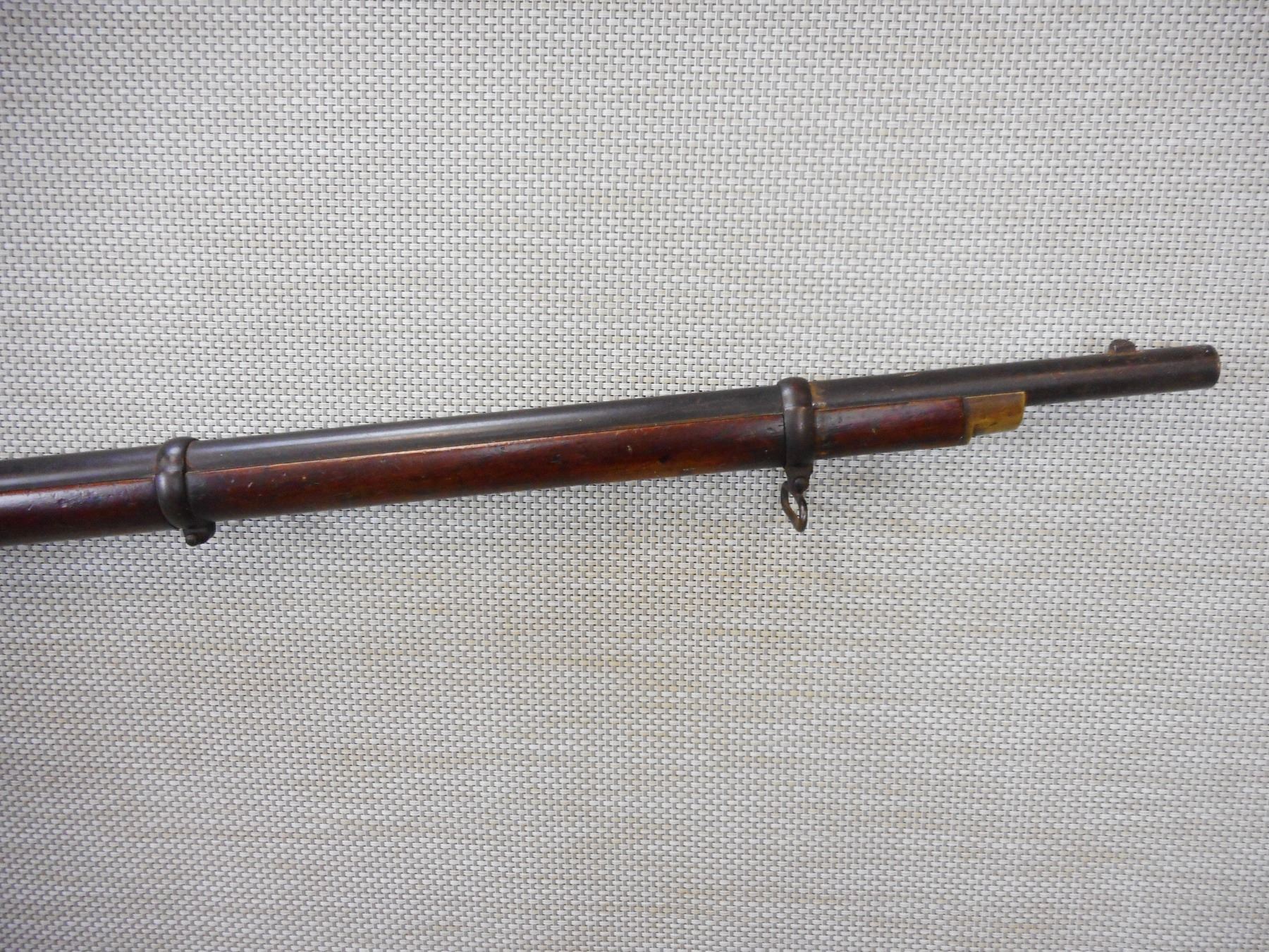 SNIDER ENFIELD , MODEL: III BAND INFANTRY MKI* , CALIBER: 577 SNIDER , ENFIELD MANUFACTURE, DC MARKED DATED 1861, FOLDING LADDER REAR SIGHT, FRONT BLADE SIGHT, BRASS TRIGGER GUARD AND BUTT STOCK, SLING LOOPS, FULL WOOD STOCK , ACTION: BREECH BLOCK , BARREL LENGTH: 36 1/2" , CONDITION: , CLASS: CANADIAN ANTIQUE CLASS , STOCK # , SERIAL # N/A