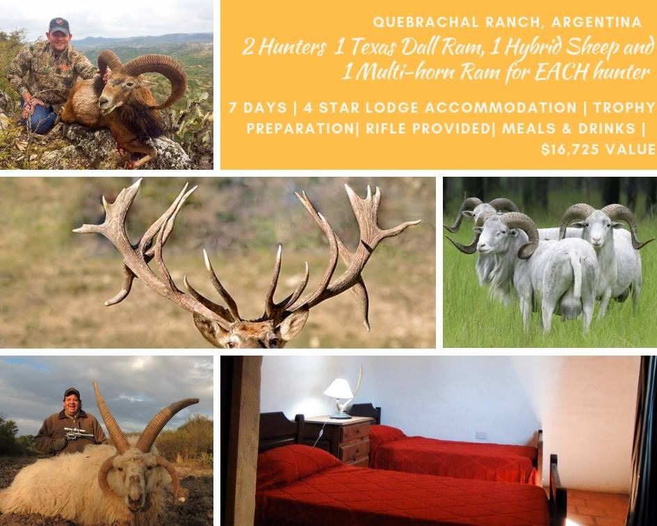 Lot 8 Argentina 1 Texas Dall Ram, 1 Hybrid Sheep, and 1 Multi Horn Ram each for 2 Hunters