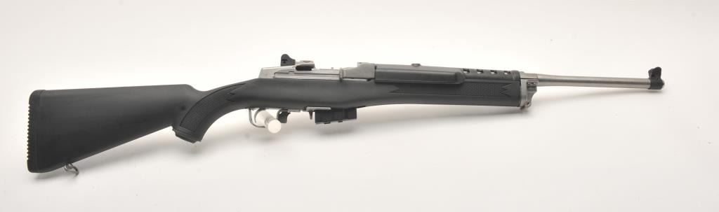Ruger Ranch Rifle Model semi-automatic rifle, 5.56 NATO caliber, 18.5” barrel, stainless steel, checkered synthetic stock, S/N 583-00584; near new condition. (Modern). Est.: $400-$800.