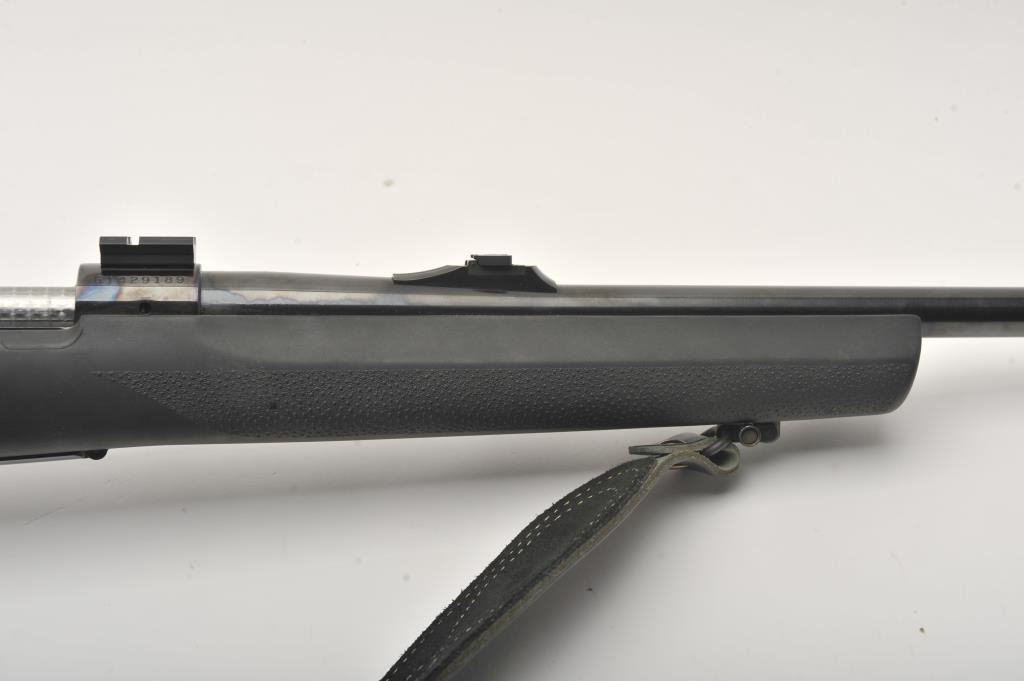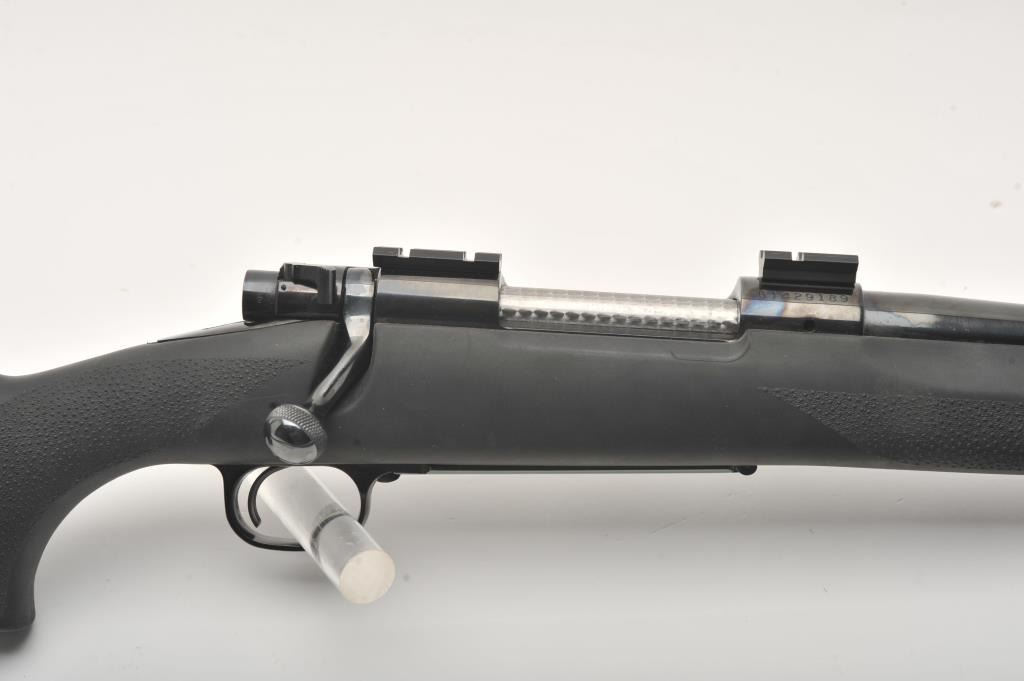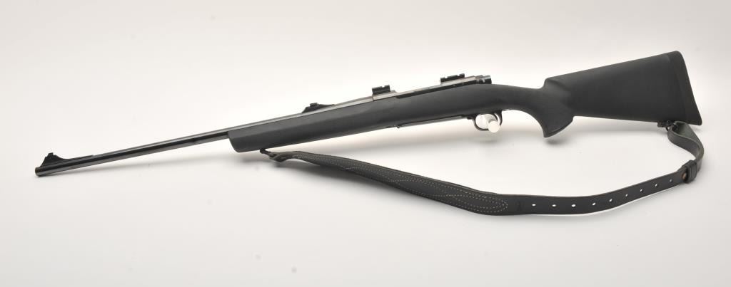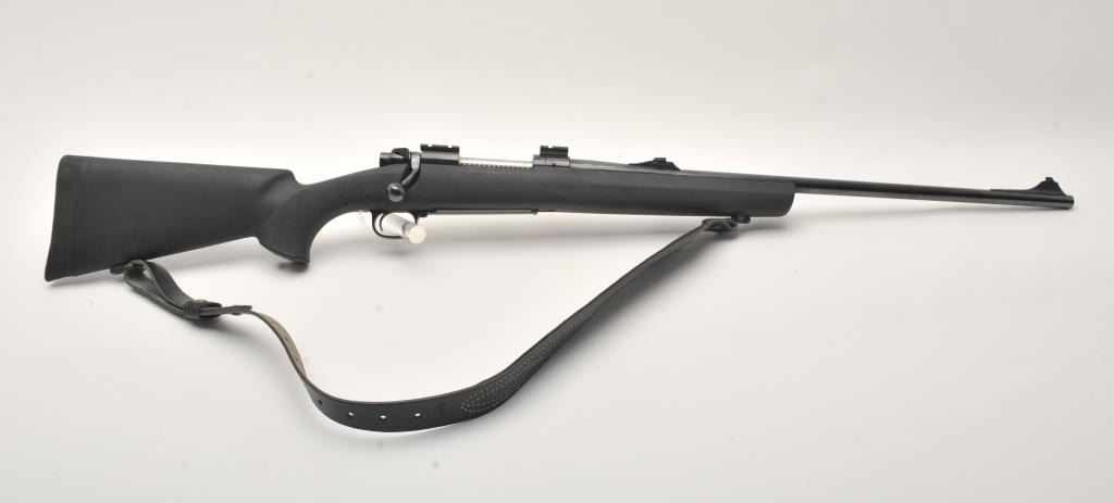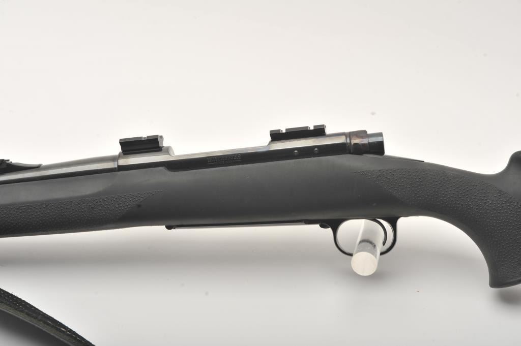 Winchester Model 70 XTR bolt action rifle, 7mm Remington Magnum caliber, Serial #1429189. The rifle is in fine overall condition with a 24” barrel with a ramped blade front and folding rear sights. The metal surfaces retain nearly all of their blue finish with light handling marks. Weaver scope bases have been added during the period of use and the bolt is engine turned. The stock is a Hogue rubber “Over Molded” in very good condition providing a 13 ¾” LOP. The bore is good, the action is crisp and markings are sharp. The lot includes a leather Hunter brand rifle sling and sling swivels. Est.: $350-$700. (Modern).