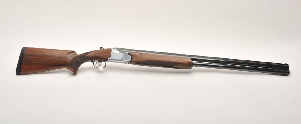 Armi O/U Montreal Model shotgun by Gamba, 12 gauge, 29” ventilated rib barrels, blued finish, single trigger, auto ejectors, bright receiver, checkered wood stock with hard rubber butt pad, S/N 77593; overall fine condition with majority of original blued finish remaining on barrels, bores, bores should clean to fine, crisp action, sharp markings, fine wood stocks. (Modern). Est.: $350-$700.