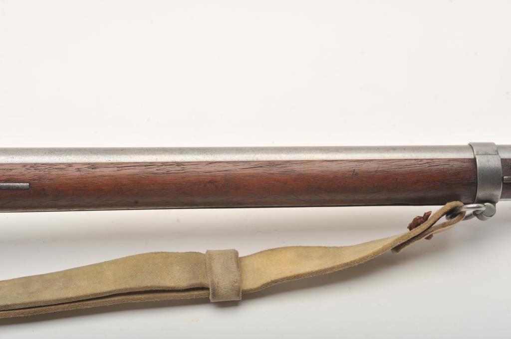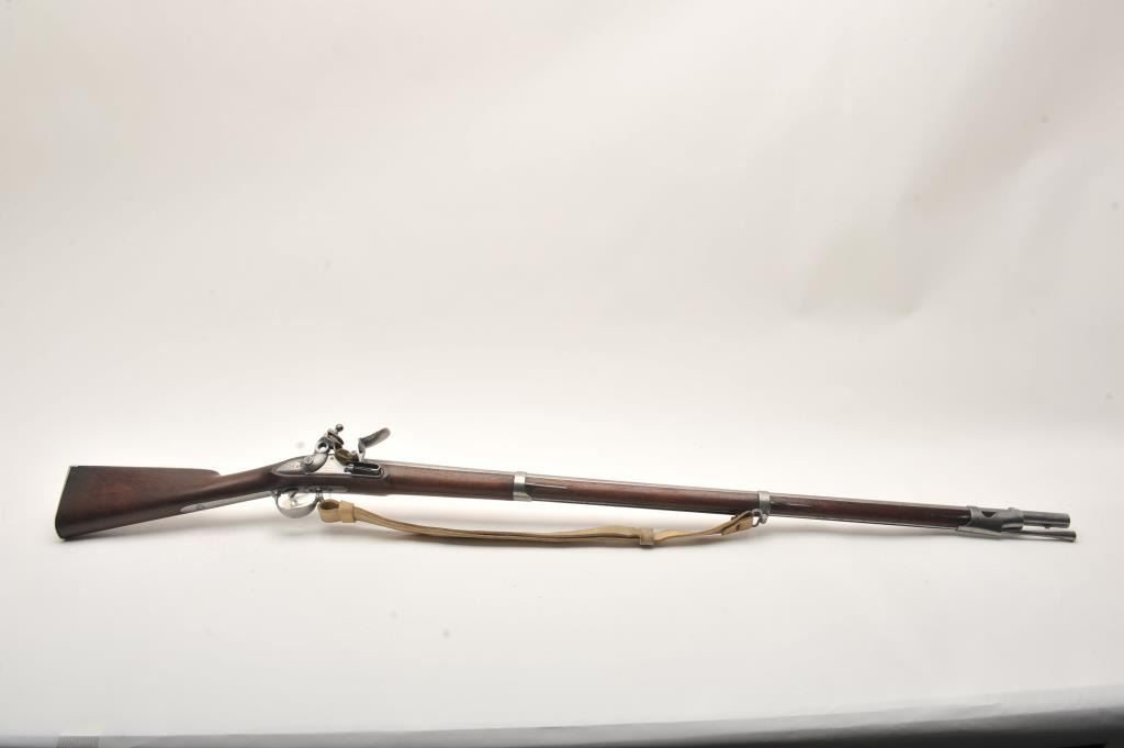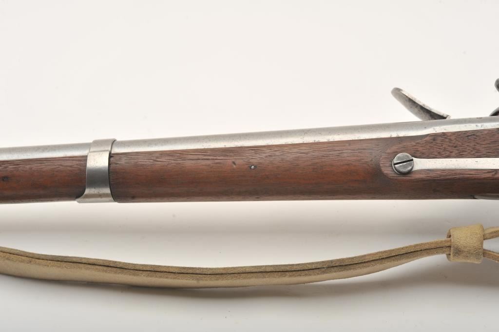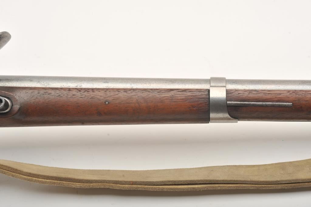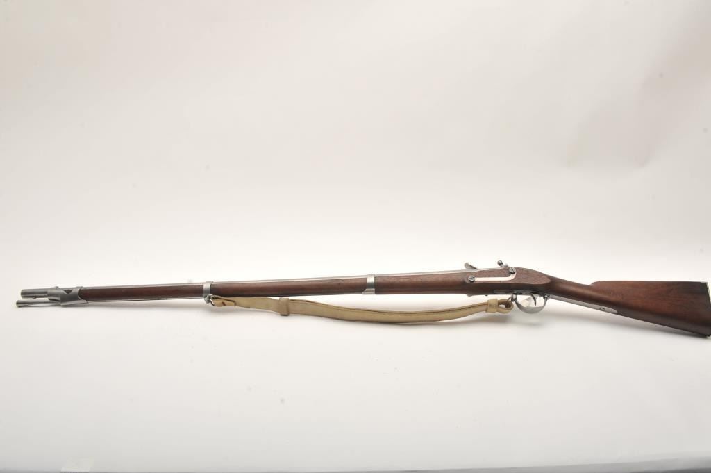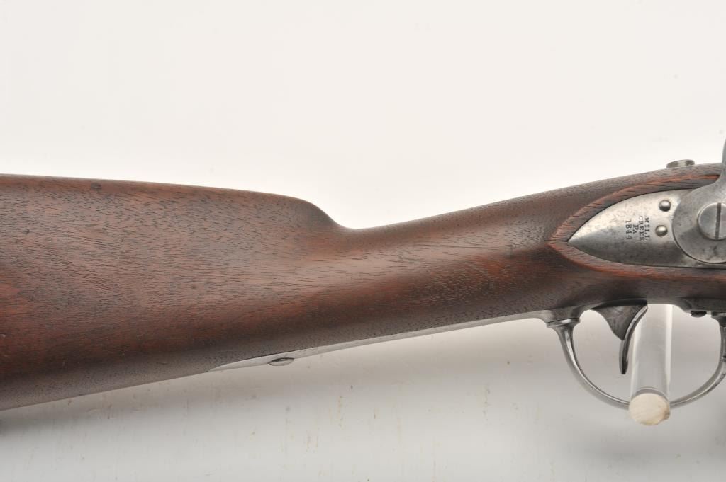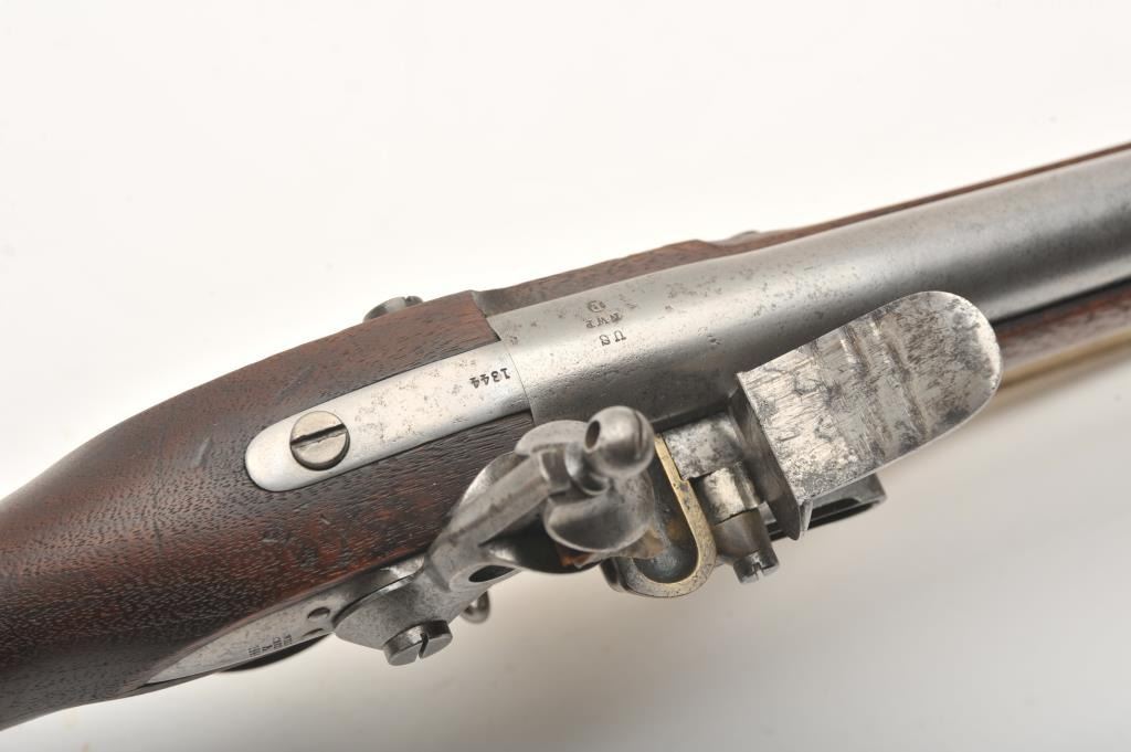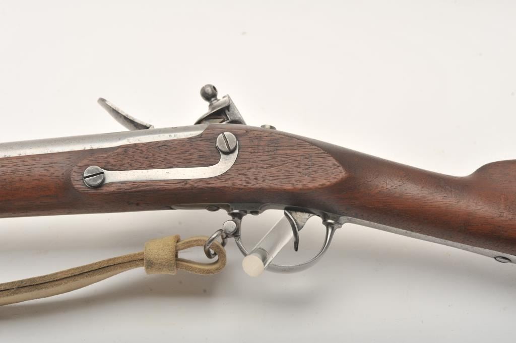 U.S. flintlock musket by D. Nippes dated 1844, .69 caliber, 42” barrel, grey patina, three barrel bands, full wood stock, buff leather sling; overall good to very good condition with pleasing patina to metal surfaces, crisp action, strong markings and very good wood stock displaying “W.A. T.” and “S.W.P.” inspector cartouches on left side of stock above the trigger. (Antique). Est.: $1,500-$3,000.