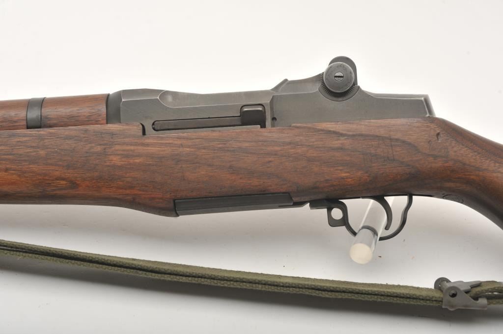 U.S. Springfield Armory M1 Garand semi-automatic rifle, .30 caliber, 24” SA barrel, dated 2-45; military finish, wood stock, olive green woven sling, S/N 3500000; overall very good to fine condition with majority of military finish remaining, fine bore, crisp action, sharp markings and very good + wood displaying circle P proof and SA/NIR inspector’s cartouche. (C&R). Est.: $1,500-$3,000.