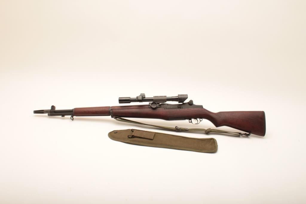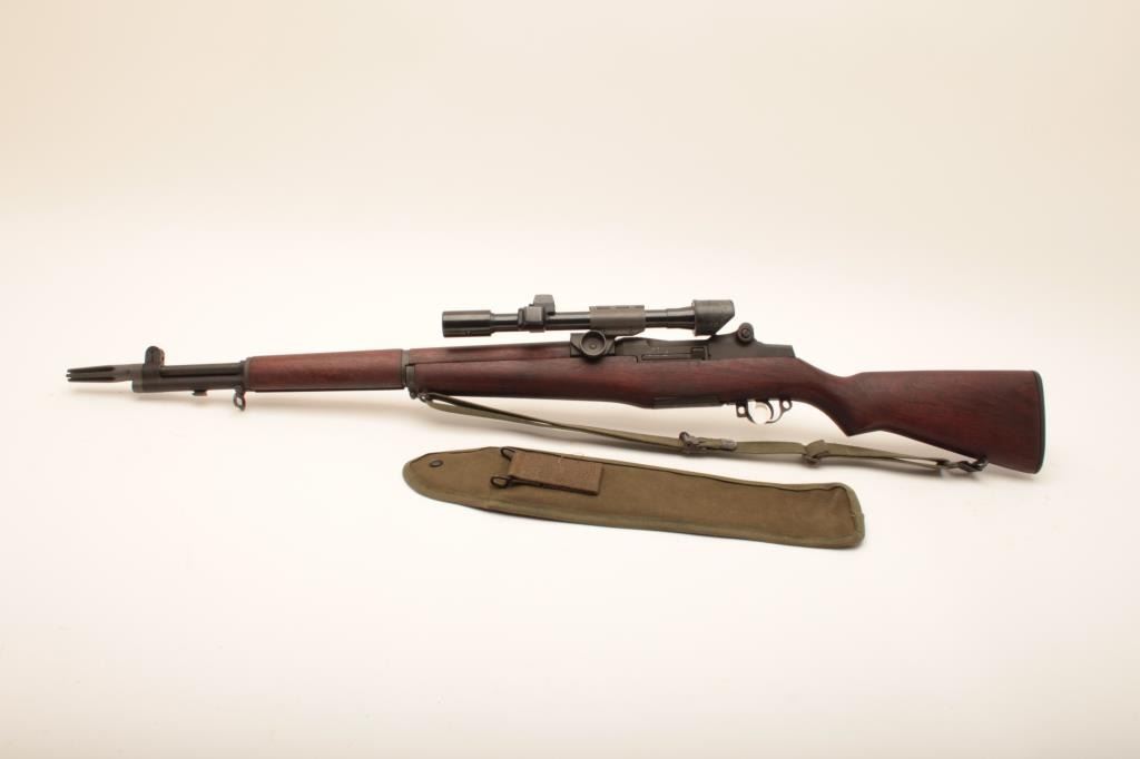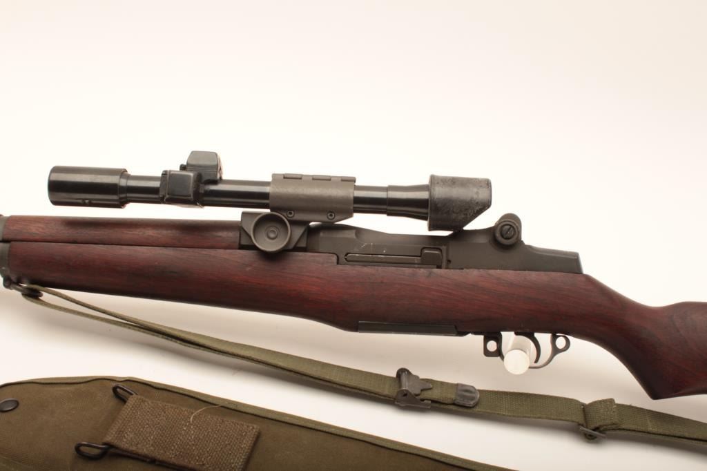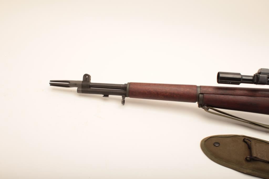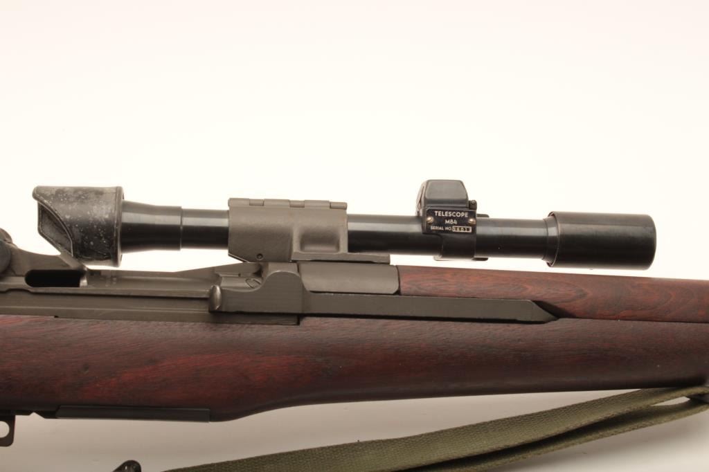U.S. Springfield Armory M1D Sniper semi-automatic rifle, .30 caliber, 24” barrel dated SA 10-52; S/N 1718320; bore is good, action is crisp and markings are good; military finish is very good throughout showing lightest wear, stock is in very good condition showing the SA and RA rebuild marks with circle P proof; rifle has an M84 scope, S/N 36013 displaying excellent optics and in very good condition with rubber eye piece; rifle also equipped with the prong flash hider and comes with scope case and green canvas sling. (C&R). Est.: $1,500-$3,000.