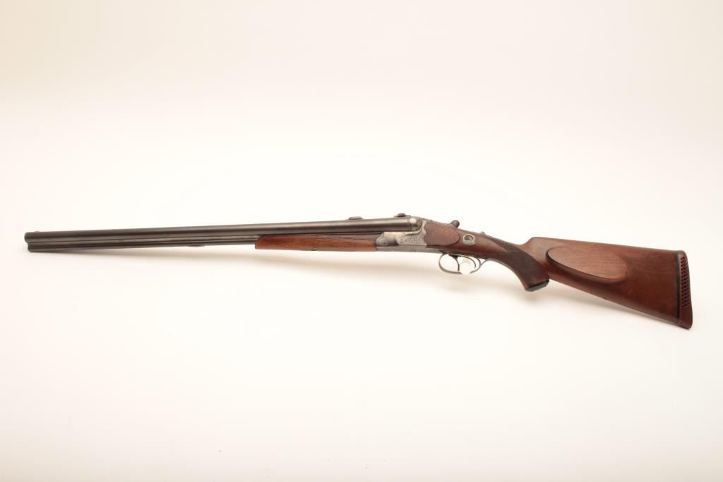 Sempert & Krieghoff of Suhl drilling, 16 gauge x 9mm, Serial #13390. The drilling is in good overall condition with 26” Krupp marked barrels. The barrels retain a significant amount of their muted blue finish with a full-length hand filed rib and claw mounts for a scope. The rear sight has been removed during the period of use. The receiver is lightly engraved with both a tang mounted, Greener cross bolt, cocking indicators and side stalking safeties. The checkered wood stock is in good condition showing moderate wear and use with mars and compressions. The butt stock features a beaded cheek piece and ends with a ventilated rubber recoil pad providing a 15 ¼” LOP. The bores are fair, the action is crisp and markings are sharp on this desirable drilling from Sempert & Krieghoff. Est.: $2,500-$5,000. (C+R).