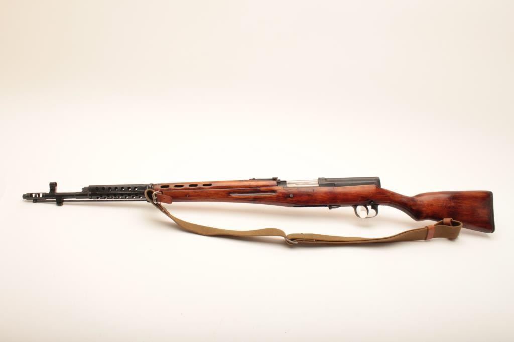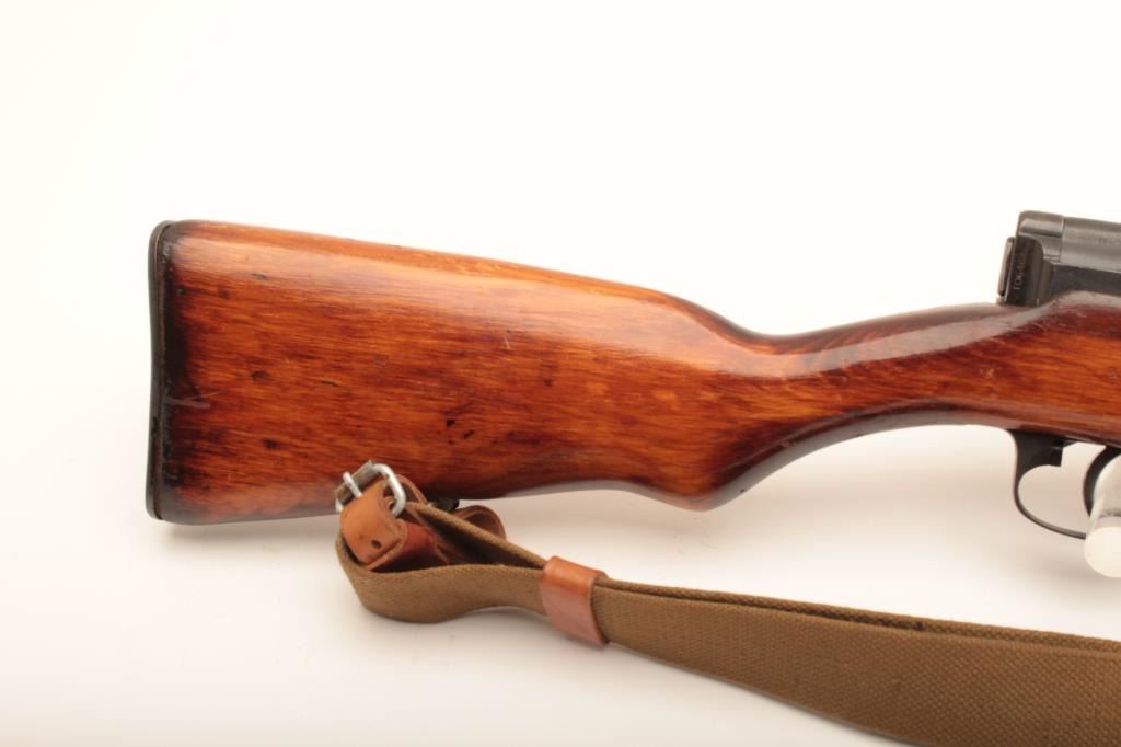 Russian Model 1940 Tokarev semi-automatic rifle, no magazine, 7.62 x 54Rmm caliber, 26.5” barrel, top of receiver dated 1942, military finish, import-marked, wood stock, olive green woven sling, S/N 463950; overall good to very good condition with a good bore, crisp action, majority of military finish remaining and very good wood stock. (C&R). Est.: $800-$1,600.
