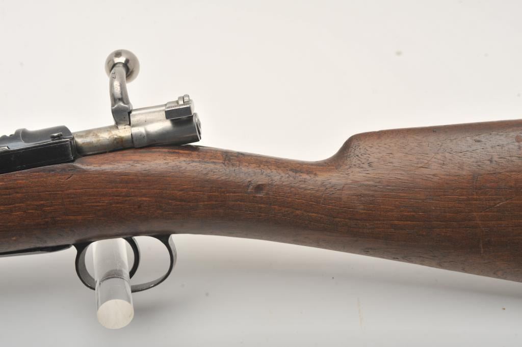 Spanish Mauser bolt action rifle, 7mm caliber, .22” barrel, military finish, import-marked, wood stock, S/N 227462; overall good condition with a good bore, crisp action, good markings and overall good wood. (C&R). Est.: $125-$250.