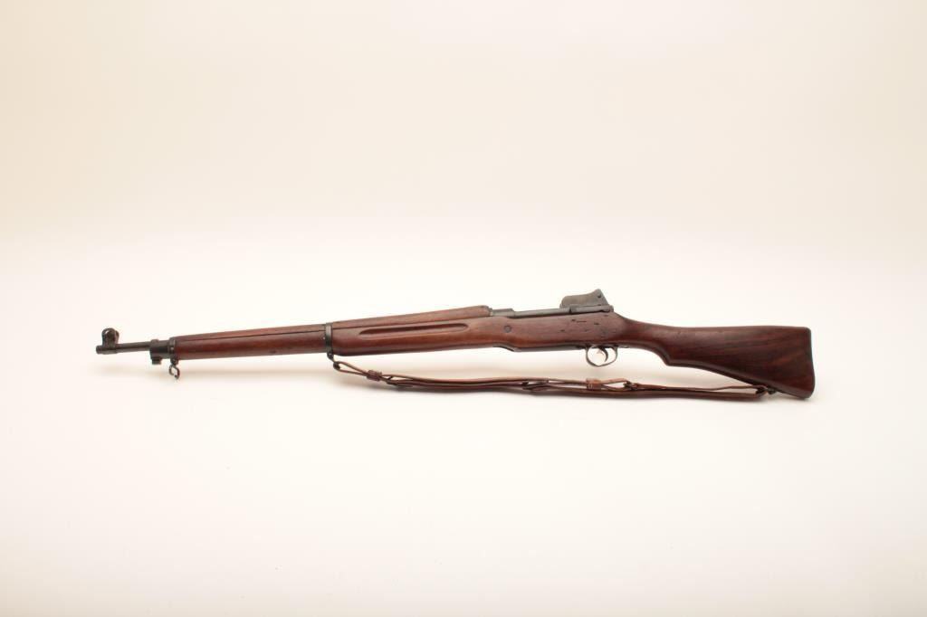 U.S. Model 1917 bolt action rifle by Eddystone, .30-06 caliber, 26” Eddystone barrel dated 9-17, military blued finish, wood stock, leather sling, S/N 54994; overall very good to near fine condition with a very good bore, crisp action, sharp markings and very good + wood stock displaying “3GM-K” inspector’s cartouche on left side of stock. (C&R). Est.: $500-$1,000.