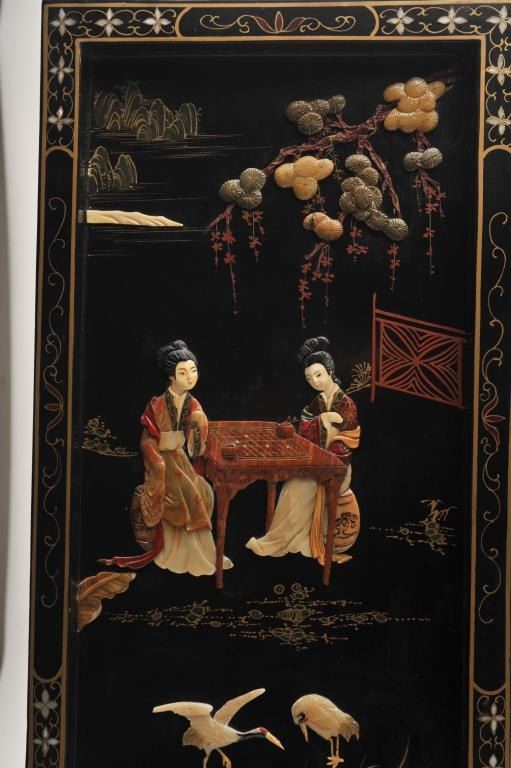 Lot 955 19CS-1 FOUR PANEL INLAID CHINESE SCREEN