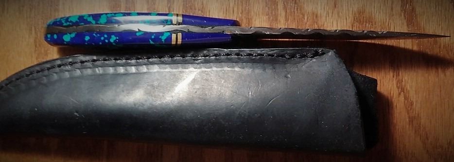Donation: Medium sized Damascus Hunter with a full File-worked spine, semi-precious stone handle materials and mosaic pins.
