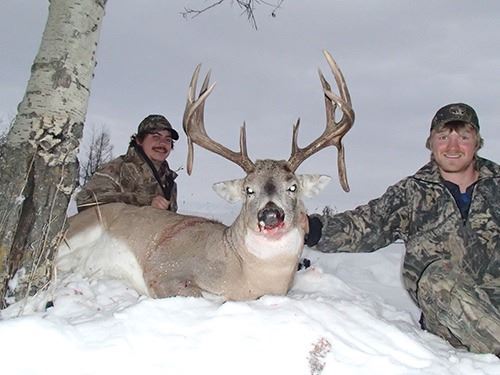 This is a Mule Deer/ Whitetail Combo Hunt in an area in which we have had a 100% success rate over the past 8 years. You can expect to see several mature bucks on your hunt scoring between 160-180”. You will be staying in cabins with wood stoves, eating home cooked meals prepared by our cook. You may be the only hunter in camp or there could be 1 or 2 others at the same time. The hunt must be taken this fall (2019) during the rut which is from Nov 8-24. Our camp is situated on land that we own in the middle of our whitetail zone and many times we see big whitetail bucks right from our lodge’s window. Bring a hockey bag to take your antlers and cape back with you. Not included are hunting licenses and hotels before or after the hunt.