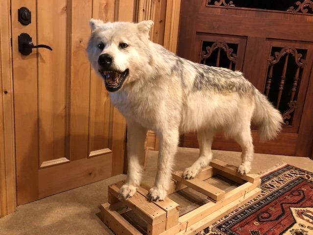 Longtime supporters of the Wild Sheep Foundation Oscar and Val Carlson have generously donated a full body mount wolf that will surly add to your trophy room!