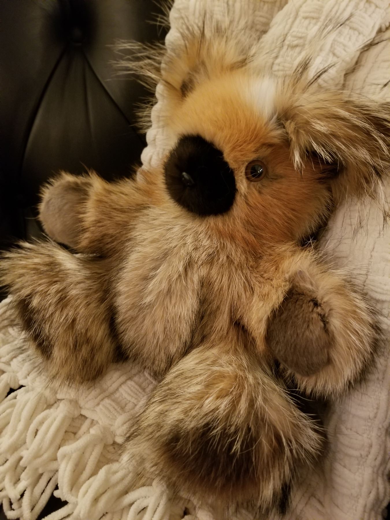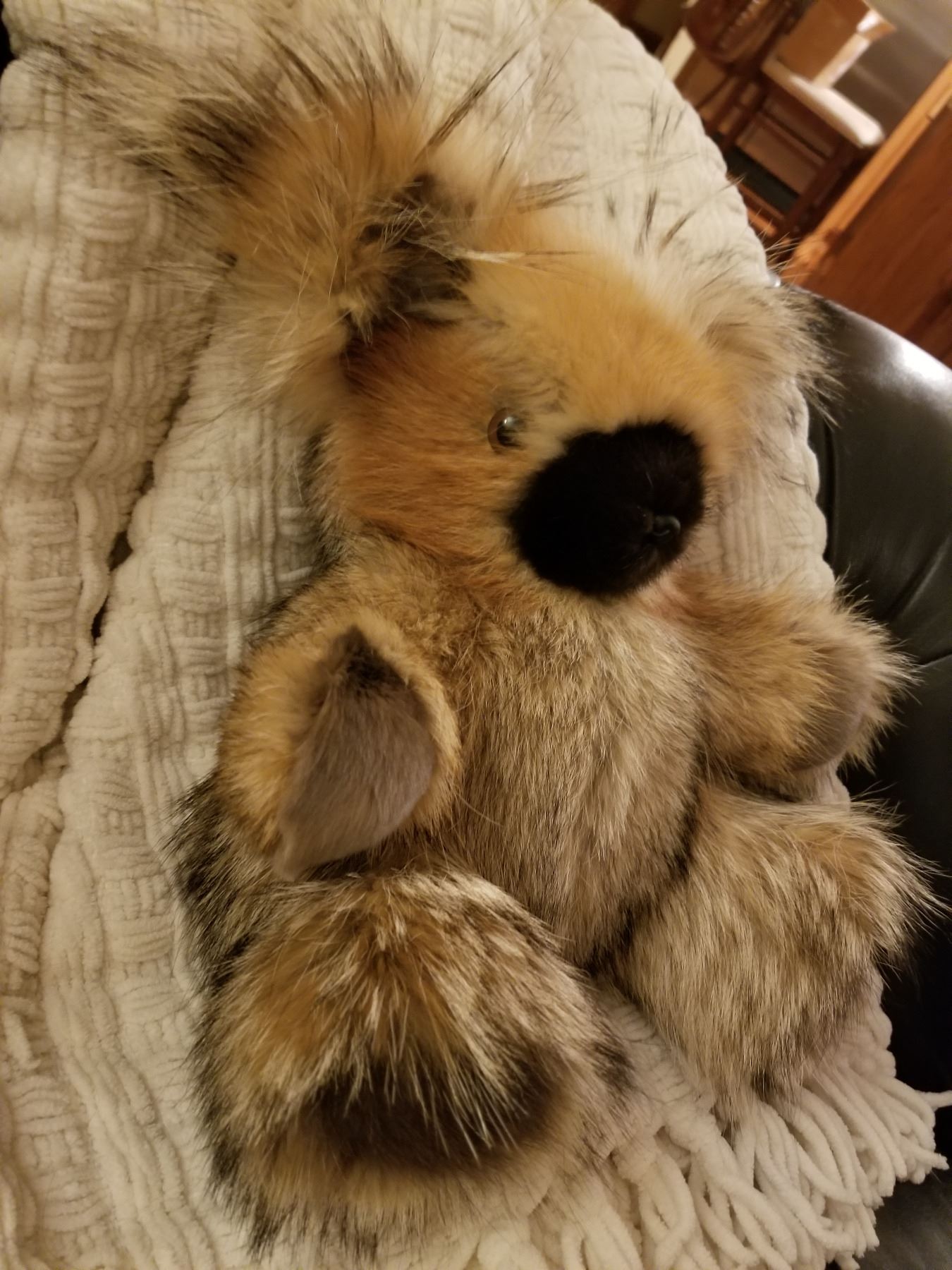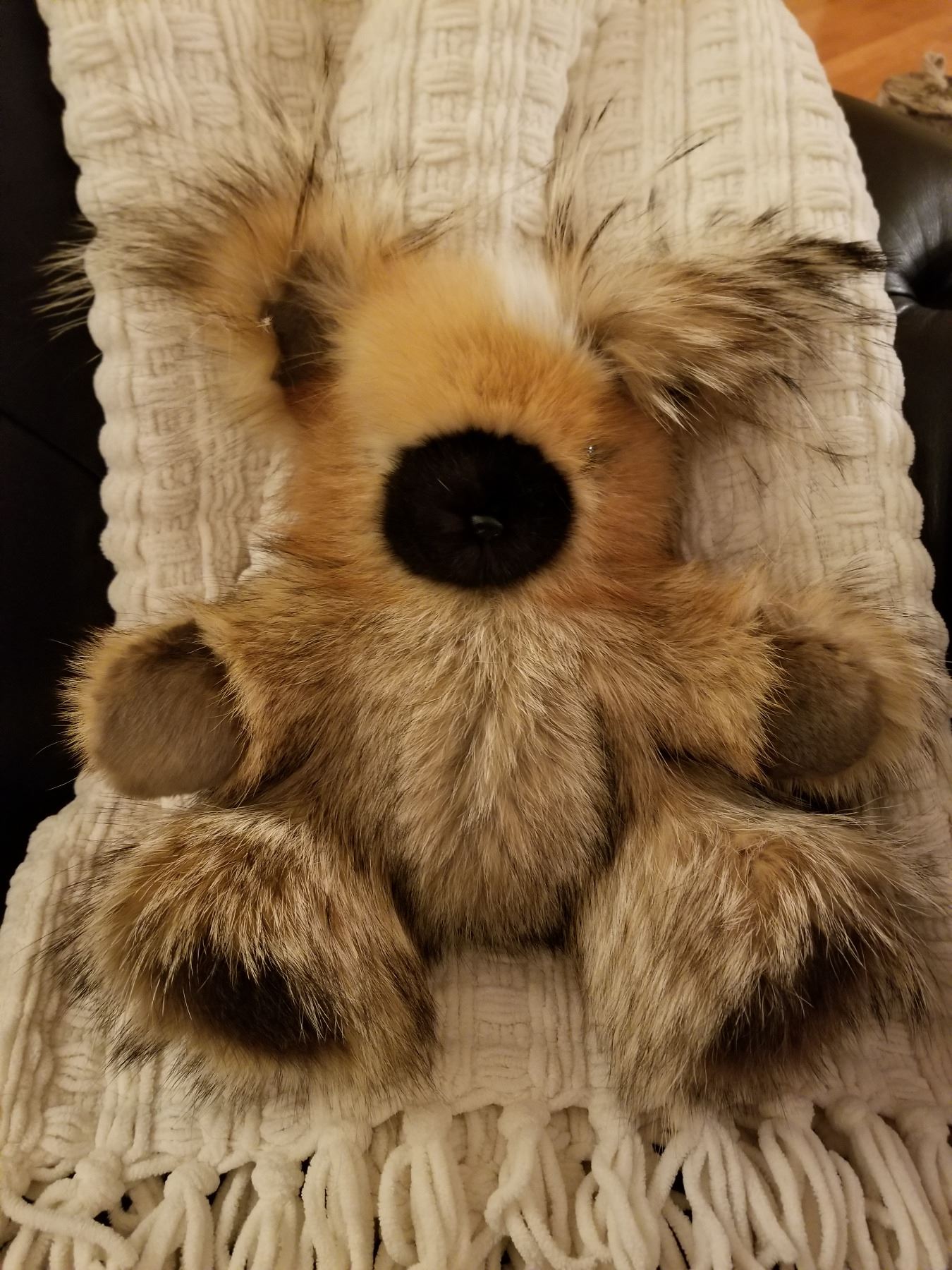 Dusty Hough's Fur Shed is a complete trapping and snaring supply company. As experienced trappers, they understand the importance of quality and professionalism. This is a one of a kind teddy bear that was handmade from real fur.