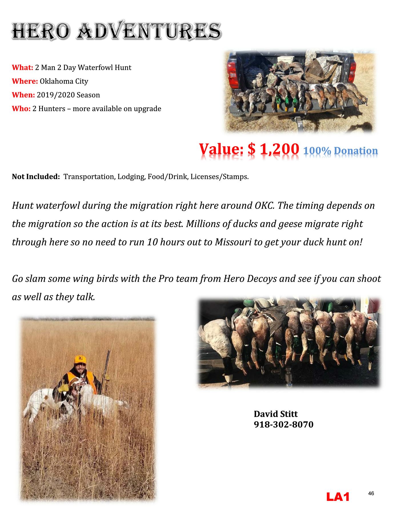 Your invoice is your donation document. We are not tax lawyers and do not make any statement to the usage of your donation. All Hunts Include Lodging and Food unless otherwise stated in our Not Included Section.