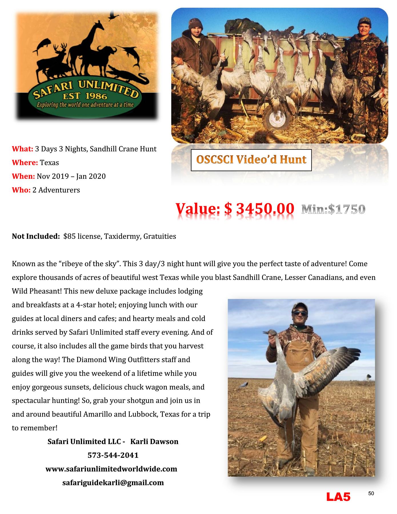 Your invoice is your donation document. We are not tax lawyers and do not make any statement to the usage of your donation. All Hunts Include Lodging and Food unless otherwise stated in our Not Included Section.