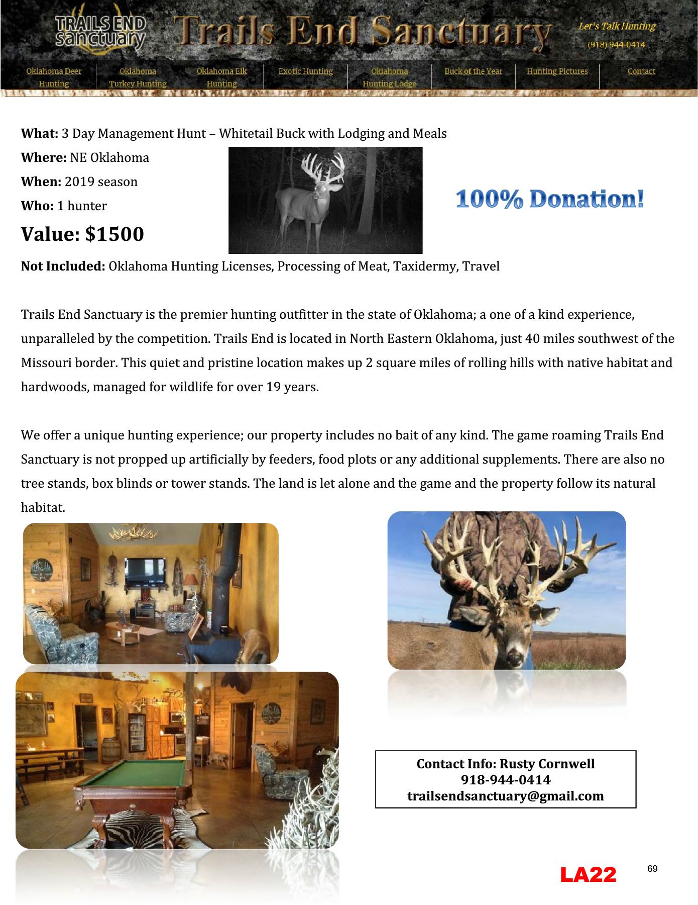 Your invoice is your donation document. We are not tax lawyers and do not make any statement to the usage of your donation. All Hunts Include Lodging and Food unless otherwise stated in our Not Included Section.
