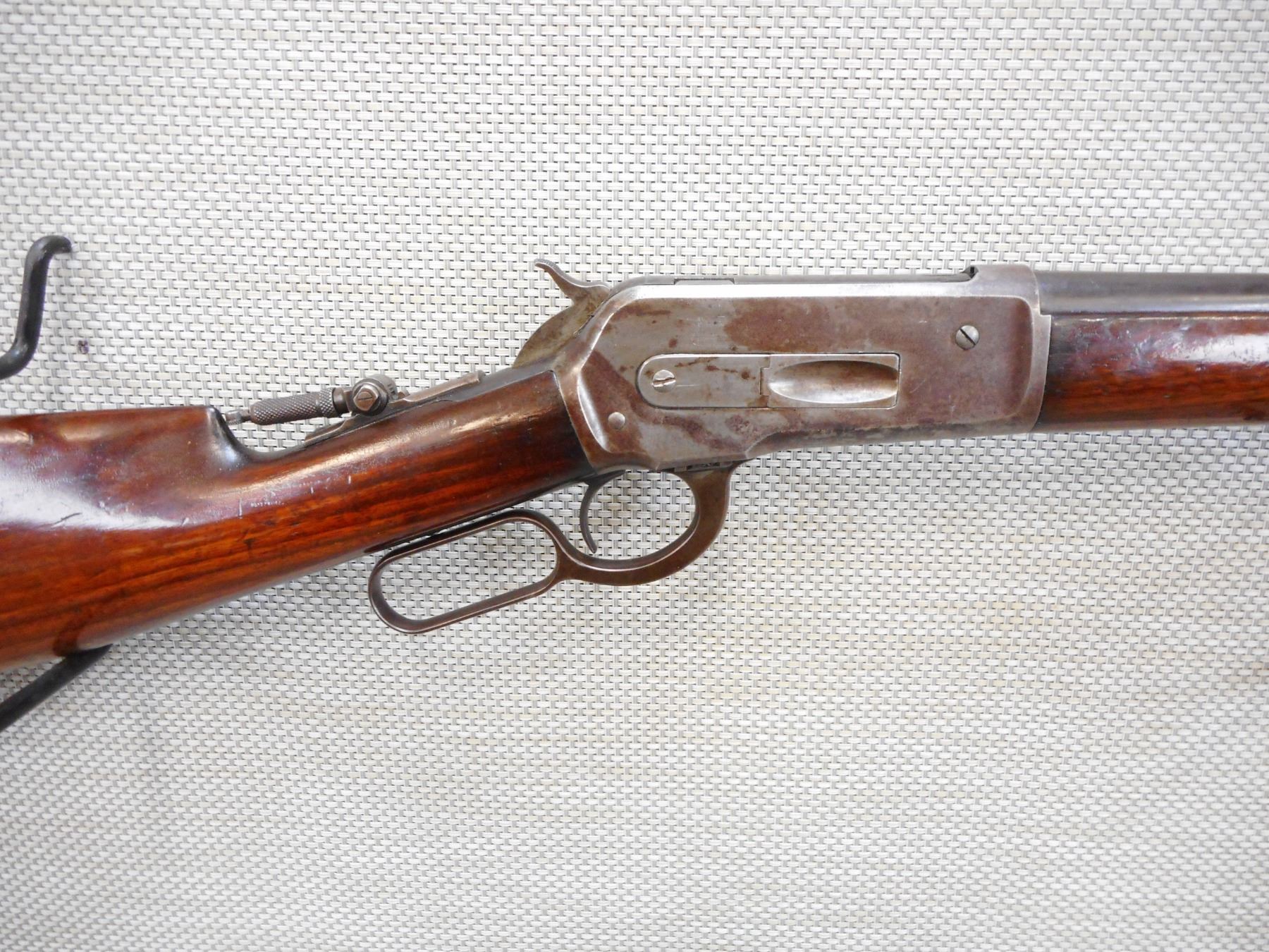 VERY DESIRABLE CALIBER, WINCHESTER , MODEL: 86 , CALIBER: 45-90 , MANUFACTURED IN 1904, VERY GOOD BORE, BLADE FRONT AND FLIP ADJUSTABLE REAR SIGHTS, FEATURES A TANG MOUNTED PEEP REAR SIGHT, PLASTIC BUTT PLATE WHICH IS CRACKED, SHOWS SOME HANDLING MARKS , STOCK # 9660 , SERIAL # 135977A , ACTION: LEVER ACTION RIFLE , BARREL LENGTH: 22" , CONDITION: 6/10 , CLASS: CLASS: CANADIAN NON RESTRICTED CLASS