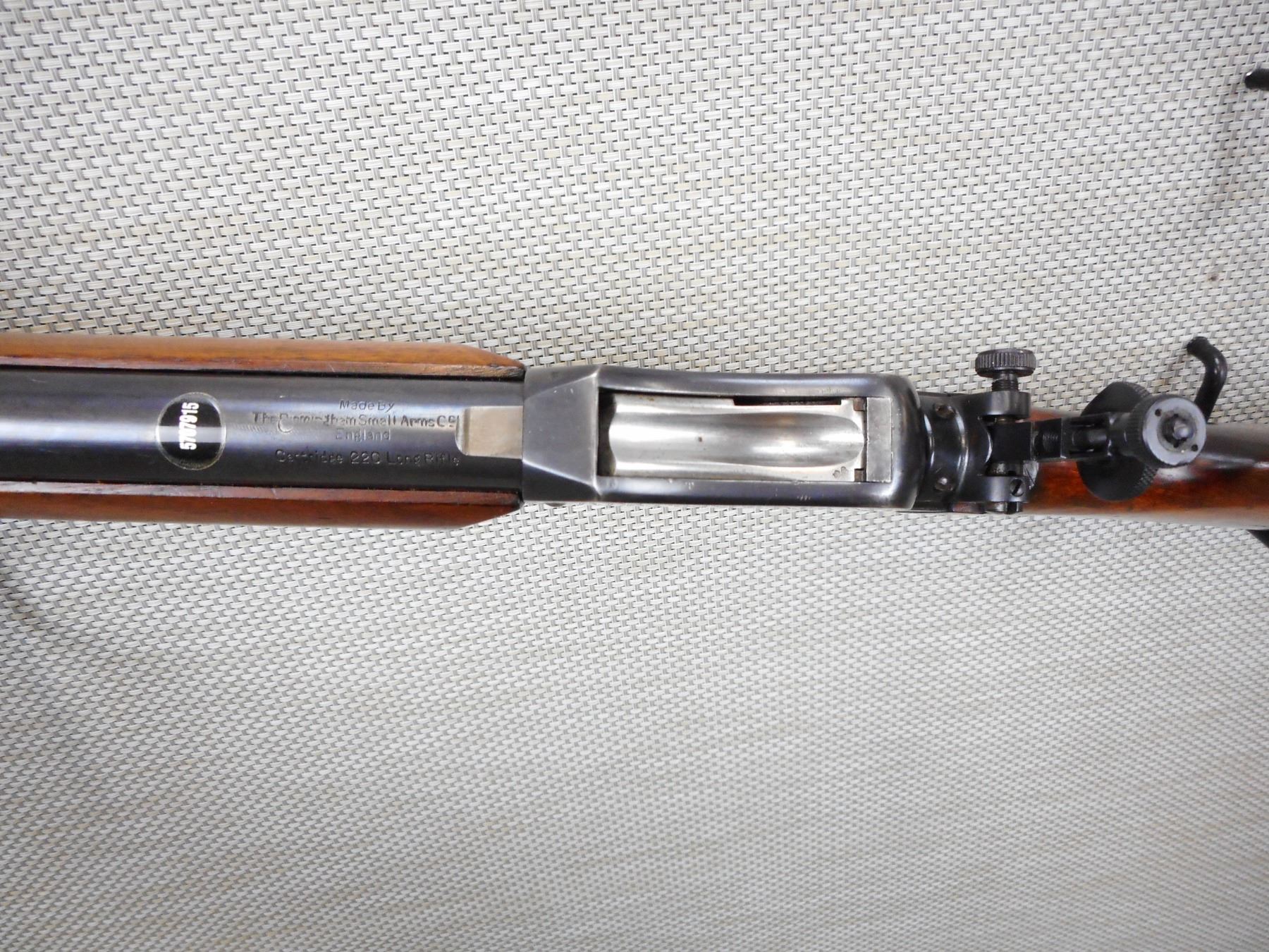 BSA , MODEL: WILDCAT , CALIBER: 22"K" HORNET WILDCAT , CND BRD ARROW MARK ON THE RIGHT SIDE OF THE BUTT STOCK IN FRONT OF THE BRASS DISK, BARREL IS MARKED 22 LR, VERY GOOD BORE, HOODED FRONT AND FLIP UP PEEP REAR SIGHT, TWO PIECE HARDWOOD STOCK MISSING THE REAR SLING SWIVEL, PLASTIC BUTT PLATE, RECEIVER IS DRILLED FORE SCOPE MOUNTS, SHOWS SOME HANLDING MARKS , STOCK # 9679 , SERIAL # N/A , ACTION: MARTINI ACTION SINGLE SHOT FALLING BLOCK , BARREL LENGTH: 27" , CONDITION: 6/10 , CLASS: CLASS: CANADIAN NON RESTRICTED CLASS