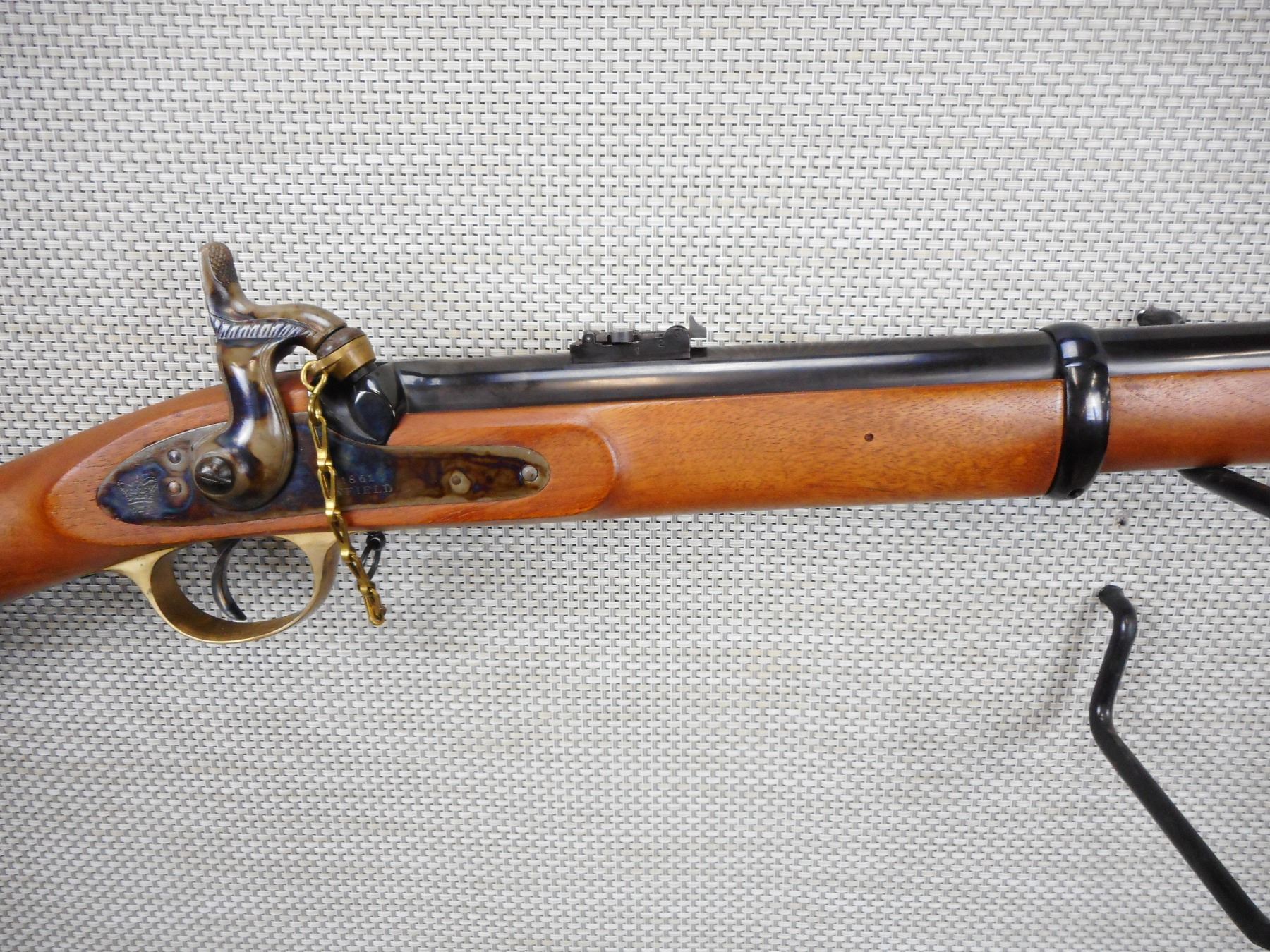 PARKER HALE , MODEL: ENFIELD PATTERN 1861 CARBINE REPRODUCTION , CALIBER: 577 PERCUSSION , LOCK IS DATED 1861 ENFIELD, VERY GOOD BORE, BLADE FRONT AND ADJUSTABLE REAR SIGHTS, BRASS FURNITURE, CASE HARDENED LOCK AND HAMMER, SLING SWIVEL LOOPS, SHOWS VERY LITTLE HANDLING MARKS , STOCK # 9688 , SERIAL # 4419 , ACTION: SINGLE SHOT PERCUSSION , BARREL LENGTH: 24" , CONDITION: 8/10 , CLASS: CLASS: CANADIAN NON RESTRICTED CLASS
